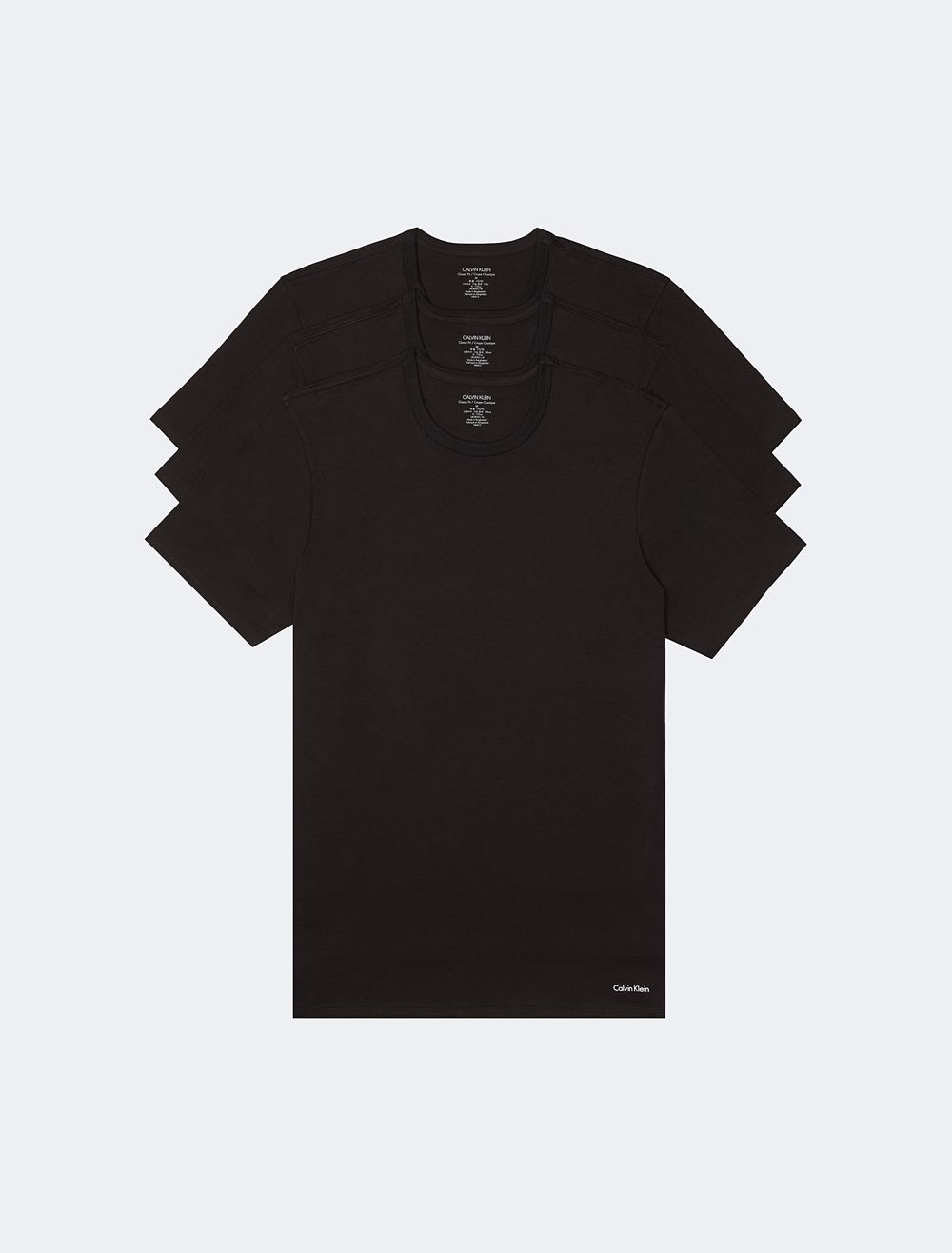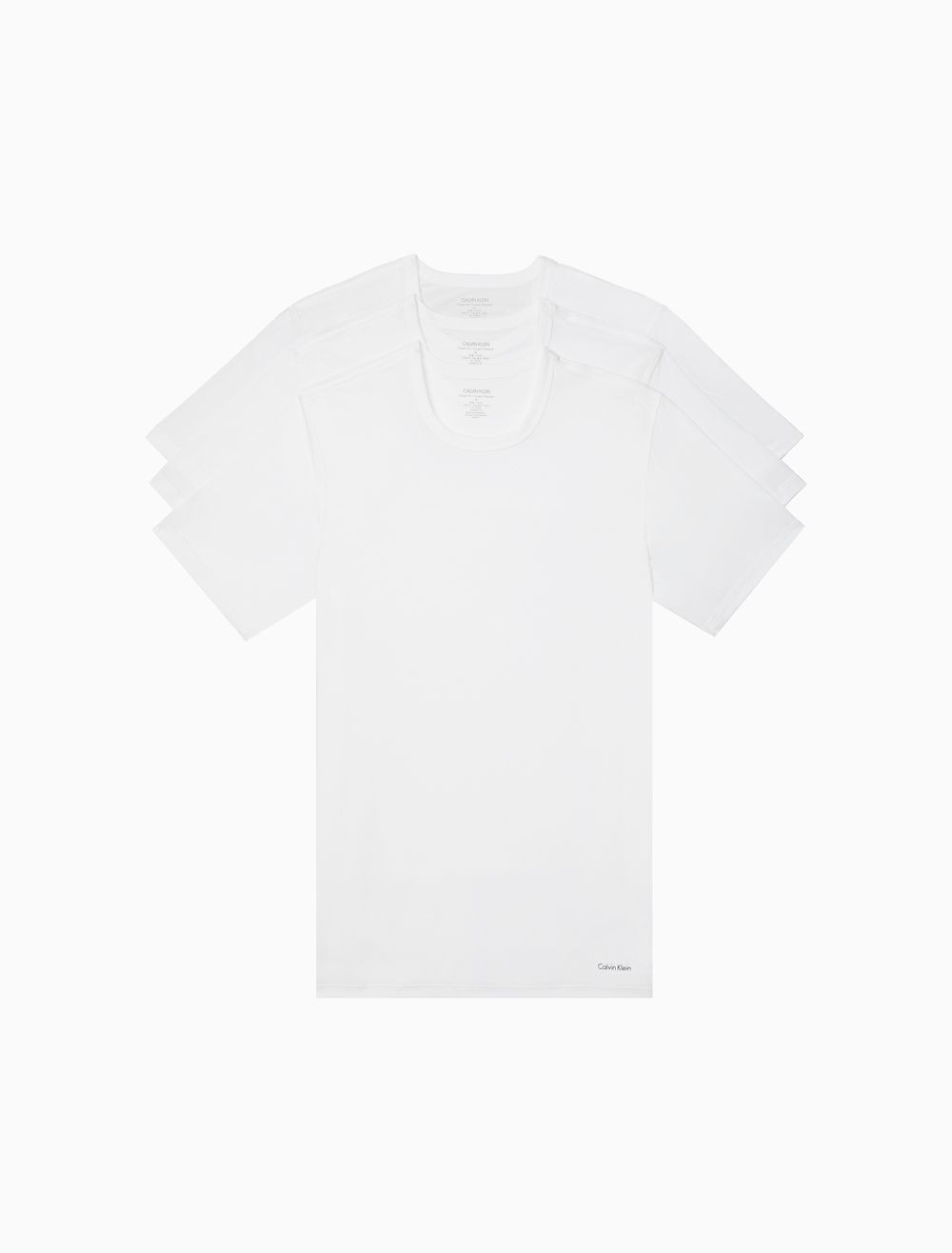 A signature classic, this essential t-shirt comes in a 3-pack and features a Calvin Klein Underwear logo at the hem with solid fabric. Designed with pure cotton for a soft hand and breathable comfort, finished with a crewneck and seaming details for an ideal layering undershirt. Comes in a flattering slim fit silhouette.- Calvin Klein Underwear logo for a classic, signature touch