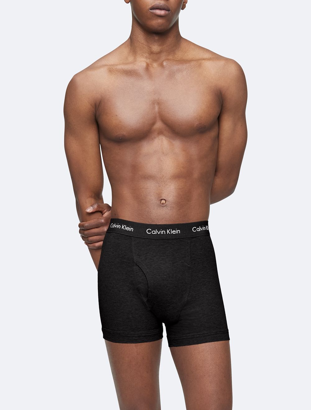 A CK icon. The essential designer trunk reinvented in extra-soft cotton stretch. Made with wicking to keep you cool and dry. Designed with the original CK logo waistband, this is a sporty look that feels sexy everyday. With a functional fly, supportive pouch and more coverage than our hip brief, this style is easy under anything.- Waistband sits below hip. Leg line sits high on thigh.
