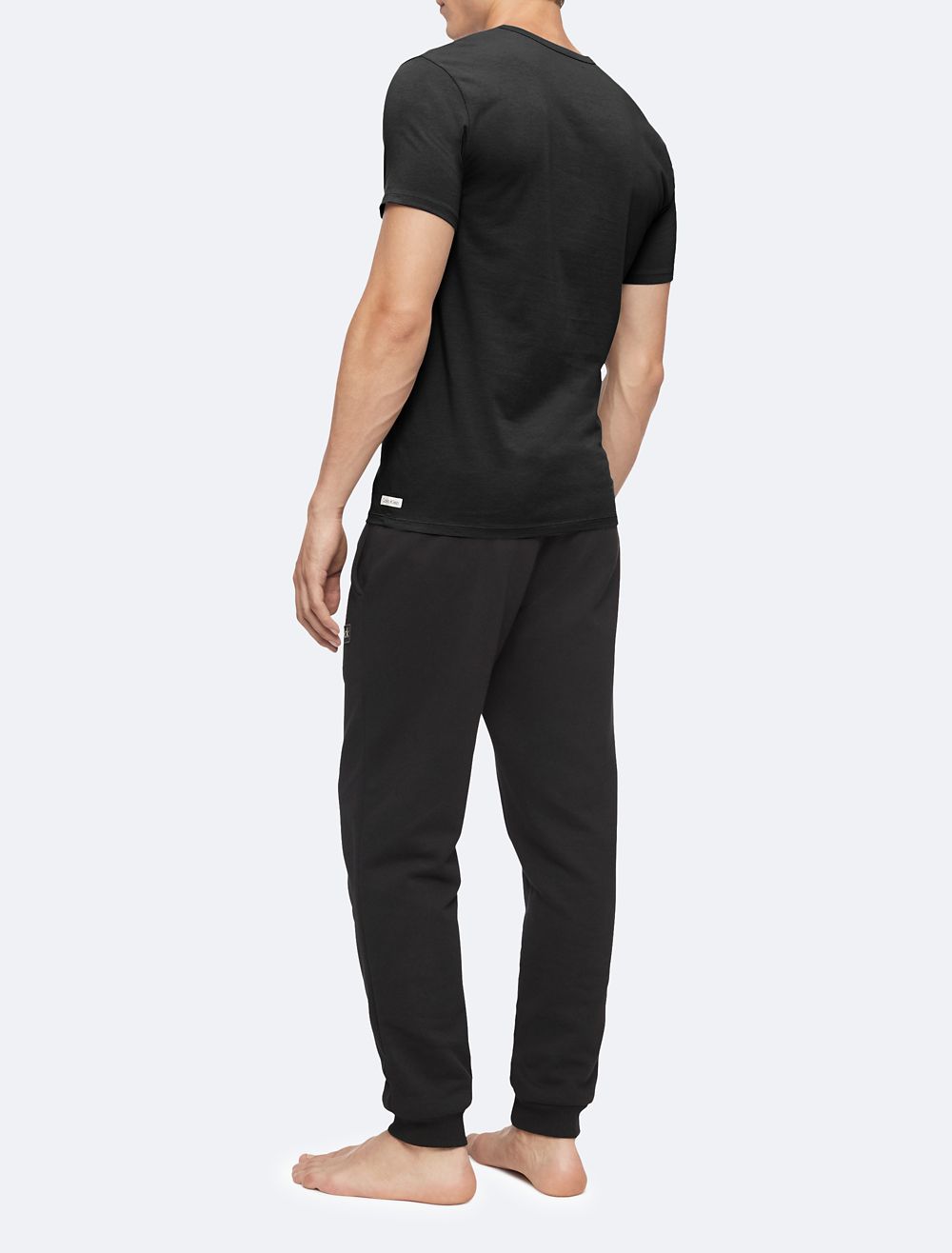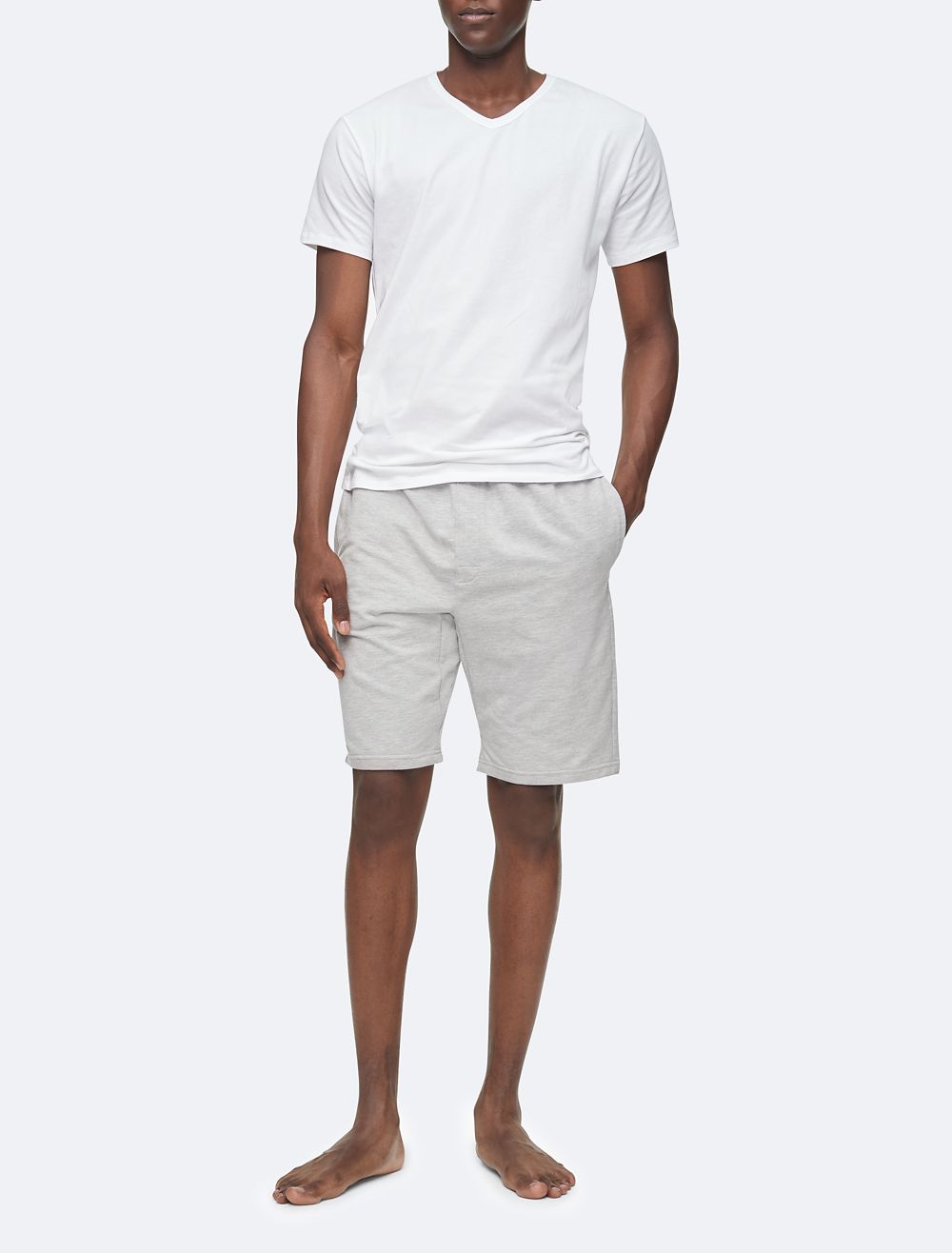 Crafted with an extra soft cotton stretch blend and wicking fabric technology to keep you cool, this sleek t-shirt comes in a 3-pack. Designed with a Calvin Klein Underwear logo at the hem with solid fabric, a v-neckline and seaming details for an ideal layering undershirt.- Calvin Klein Underwear logo for a classic, signature design