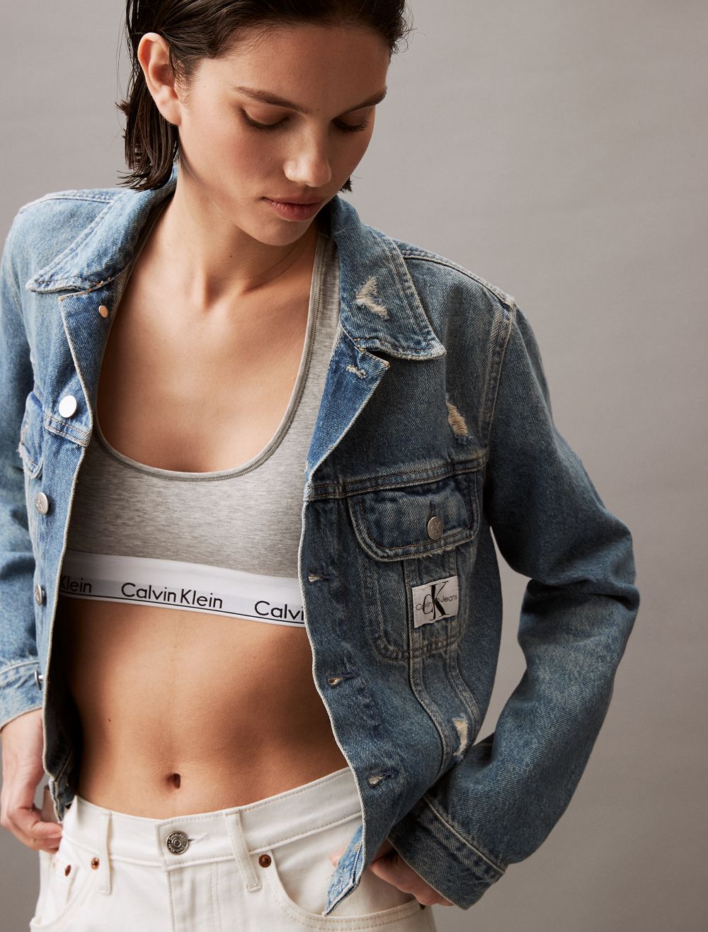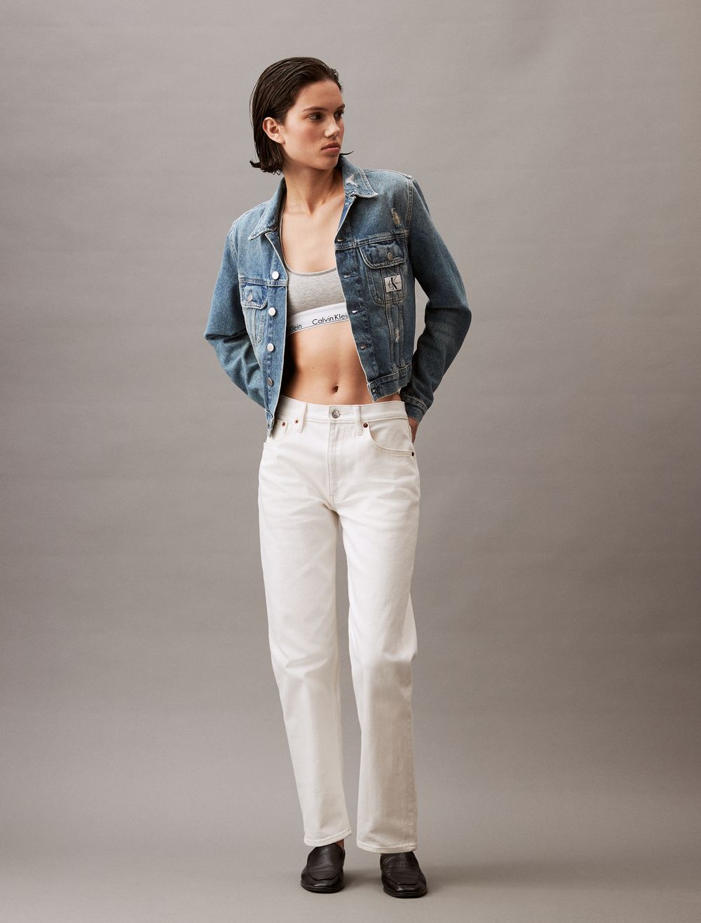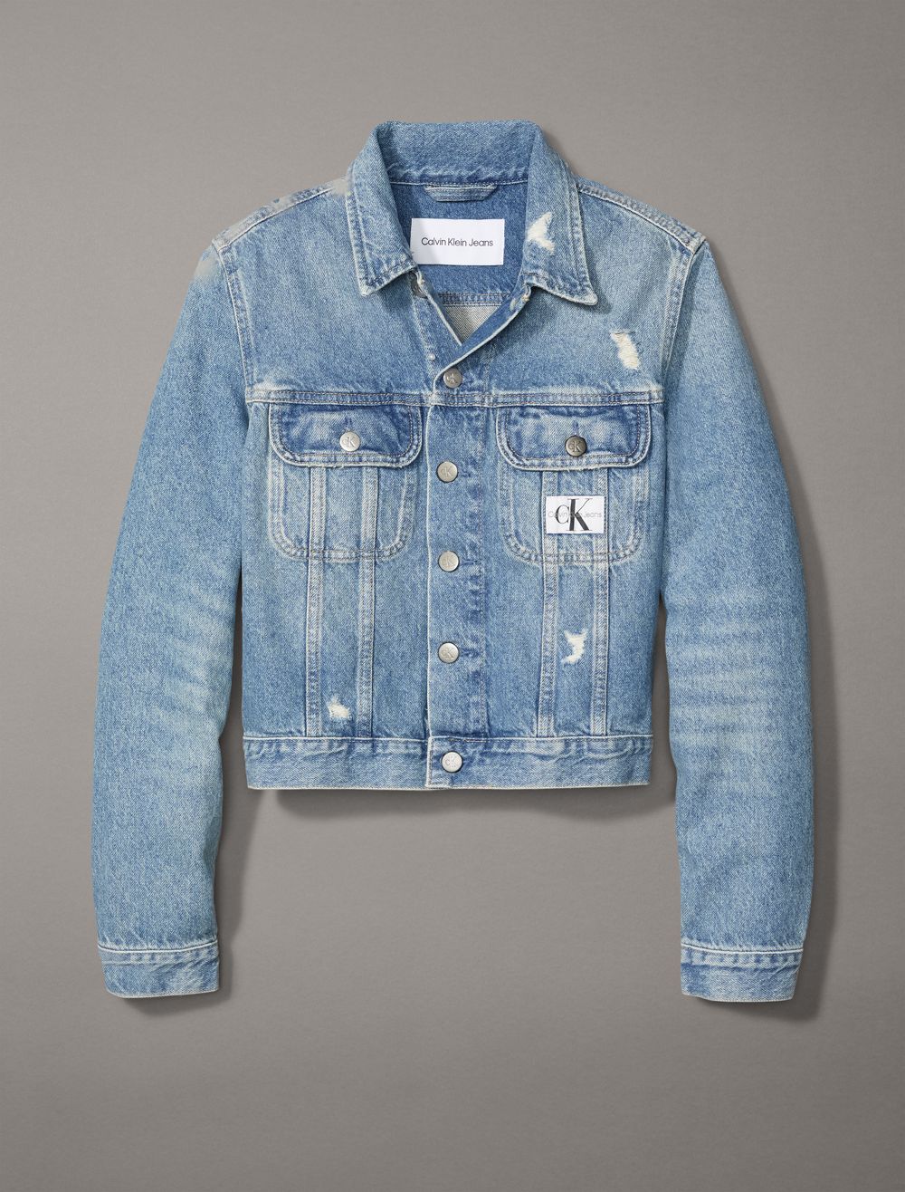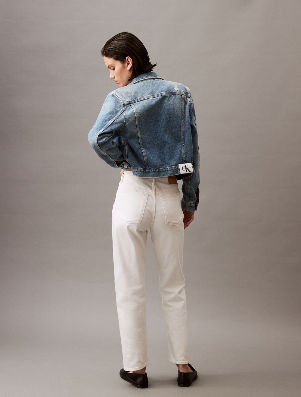 Cut in a cropped length, this denim jacket features a 90's-inspired silhouette. Made with long sleeves and a point collar with dual chest pockets. Crafted from recycled cotton for reduced environmental impact. Designed with button closures along the front and finished with topstitching details.- Cropped length