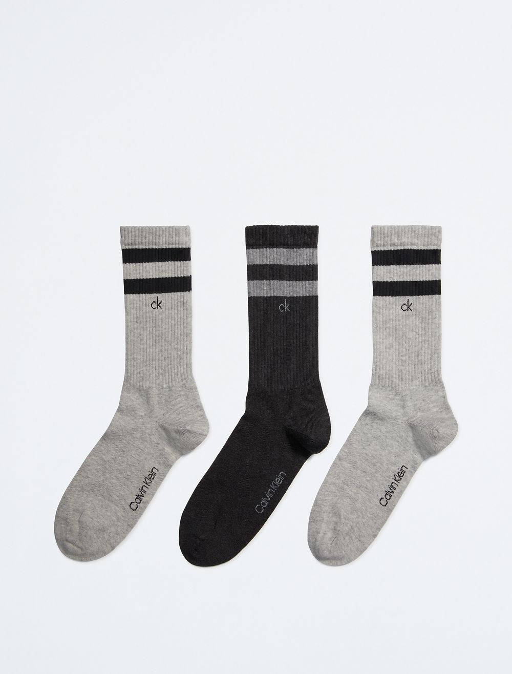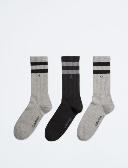 Made with a cotton stretch blend, this 3-pack sock set features double stripe styling and classic CK logo printing.- Extra soft cotton stretch blend