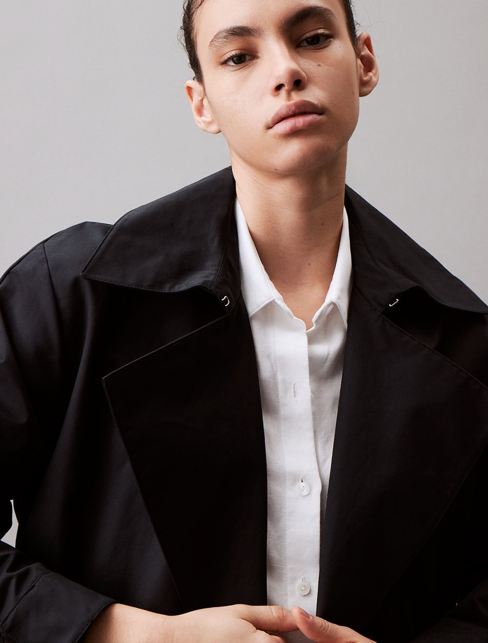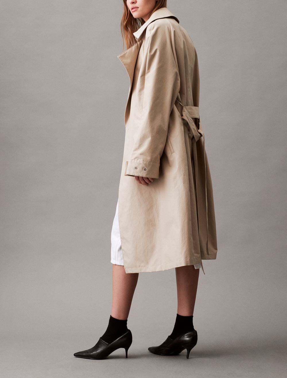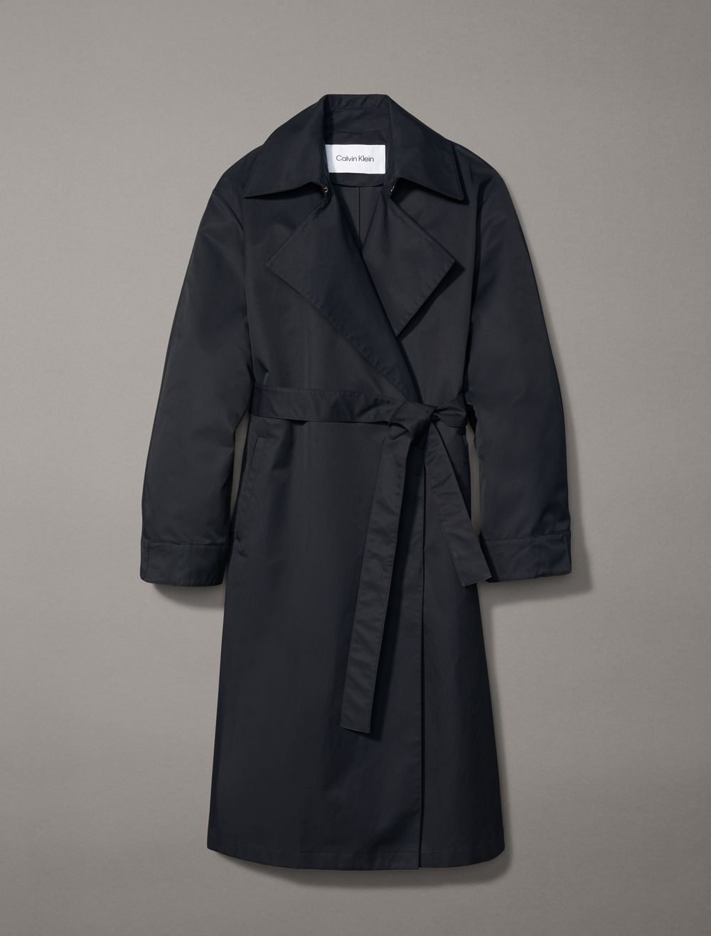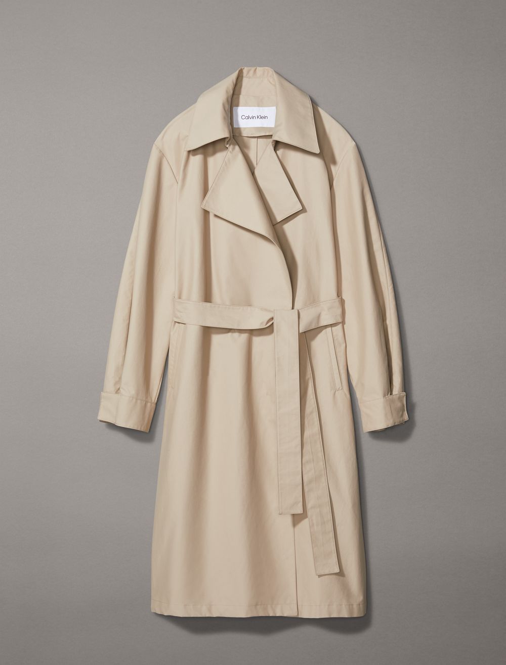 Created with an exaggerated collar, this trench coat is an updated rendition of a timeless wardrobe classic. Styled in a relaxed fit for effortless layering. Detailed with buttons along the front, slip pockets at both sides, and a self-tie belt at the waist.- Long sleeves + exaggerated notch lapels