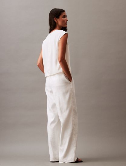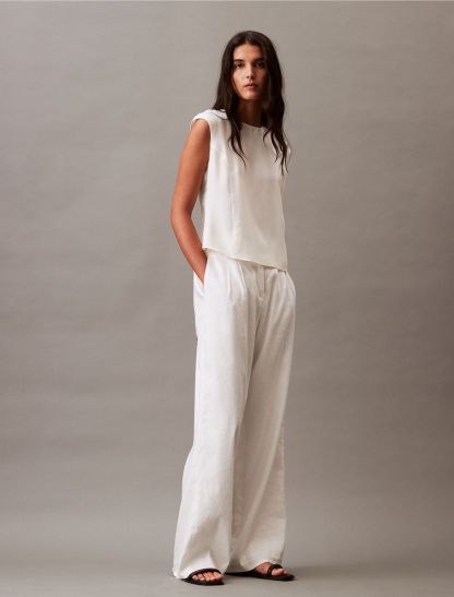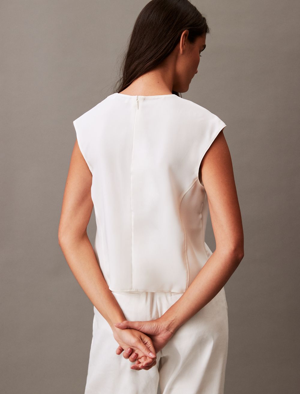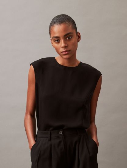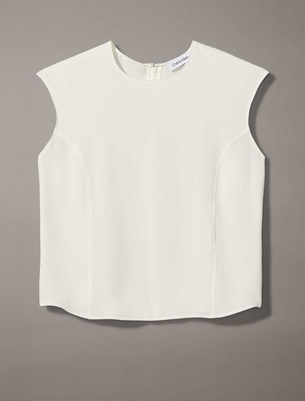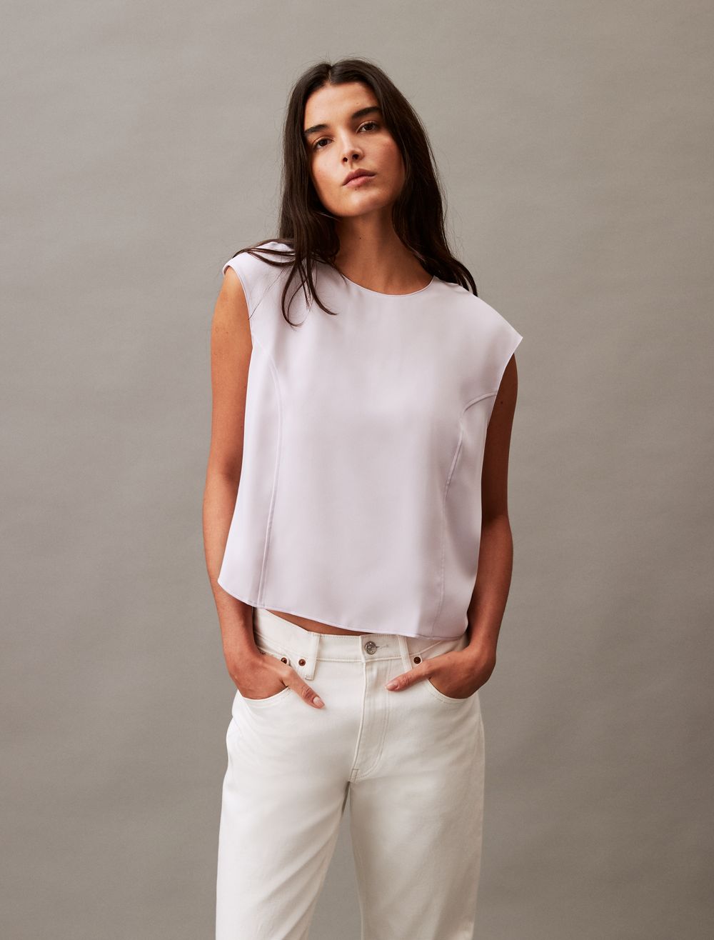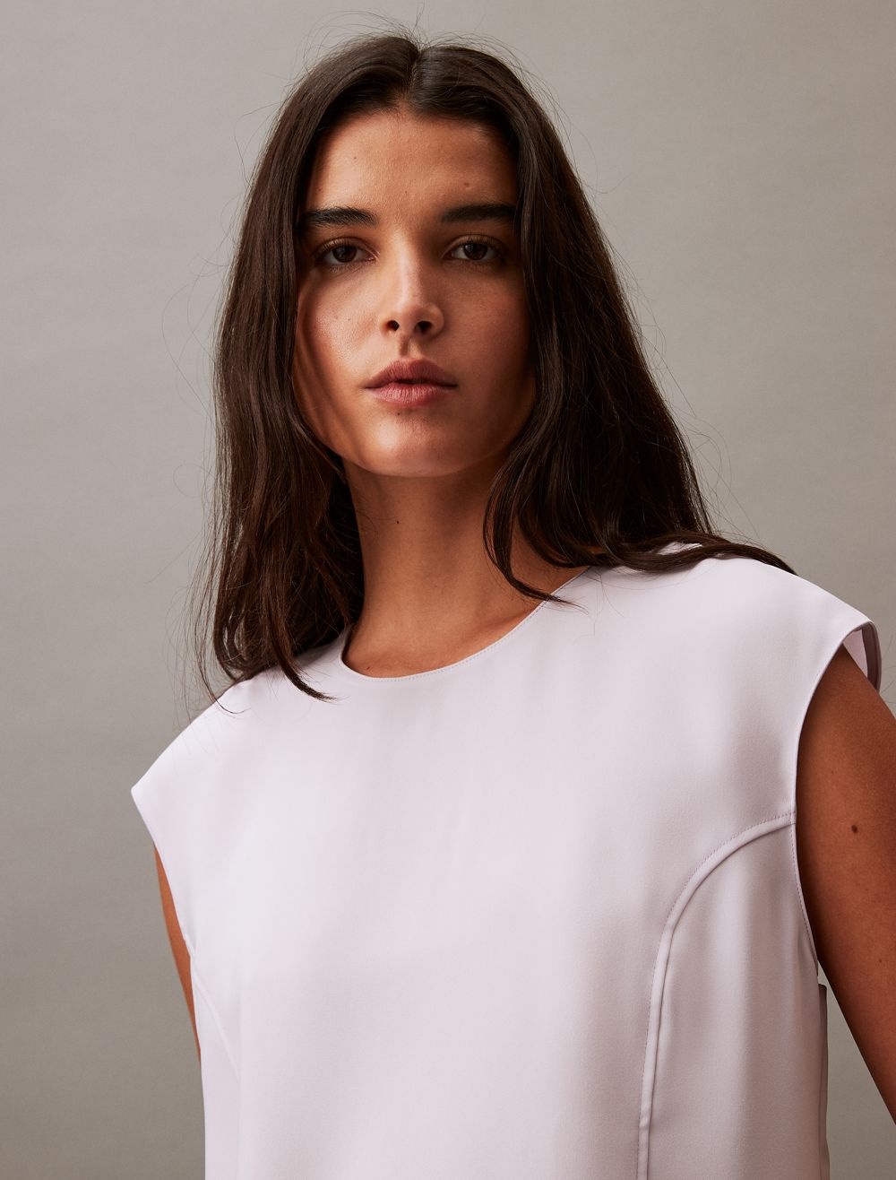 Cut in a relaxed fit, this top has a sleeveless silhouette that appears effortlessly chic when styled with a pair of pleated shorts. Defined with seaming lines along the front. Crafted from a recycled polyester blend for reduced environmental impact.- Sleeveless silhouette + crewneck