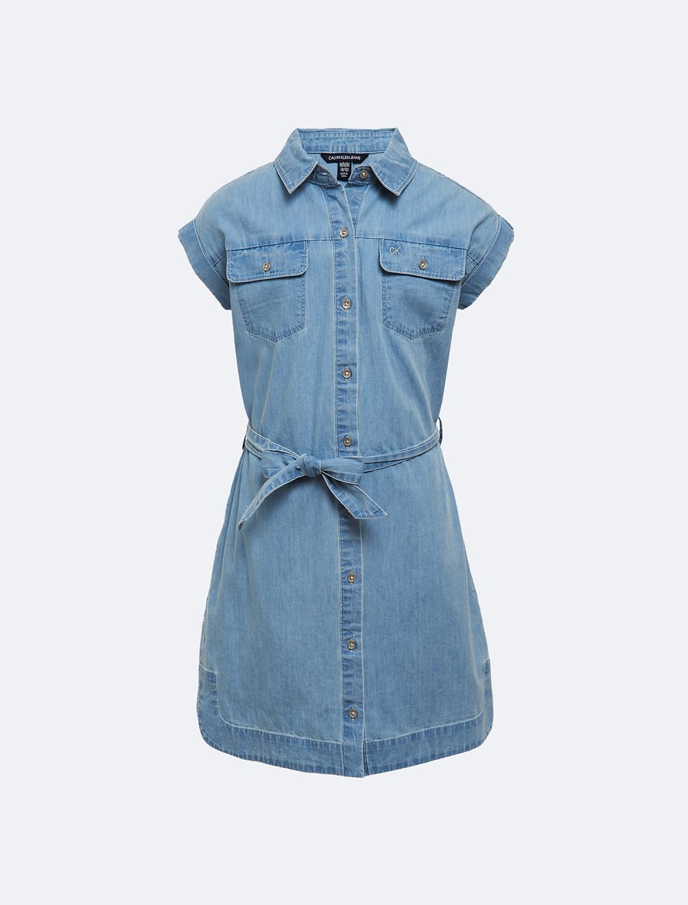 Lightweight in soft chambray, this girls shirt dress is an easy-to-wear summer favorite. Designed with button-front closures and a tie belt at the waist, dual chest flap pockets and contrast topstitching.- Point collar + cuffed short sleeves