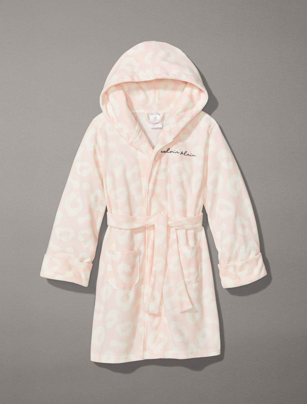Ultra soft with a plush hand, this robe is a cozy piece for lounging at home. Designed with a hood, a self-tie belt at the waist, and patch pockets at both sides. Features CK logo styling at the upper chest and back.- Long sleeves