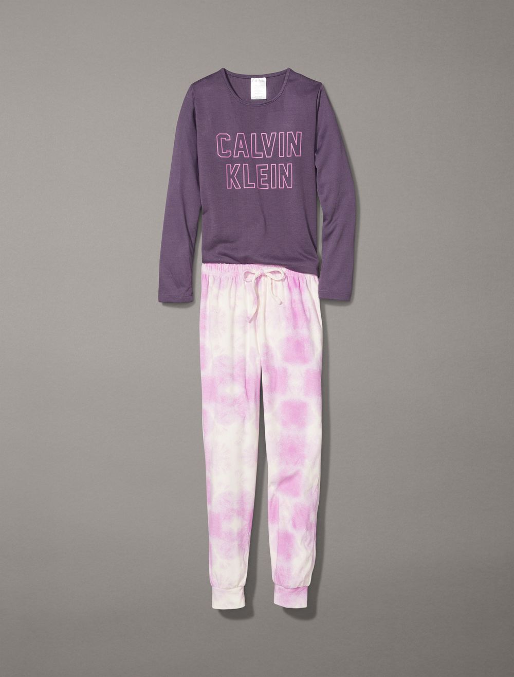 Crafted from soft velour, this 2-piece pajama set features a crewneck tee and a pair of joggers. Made with CK logo styling combined with an allover print design. Created with a focus on comfort, the joggers have an elastic waist for a flexible, effortless fit.- Soft velour fabric