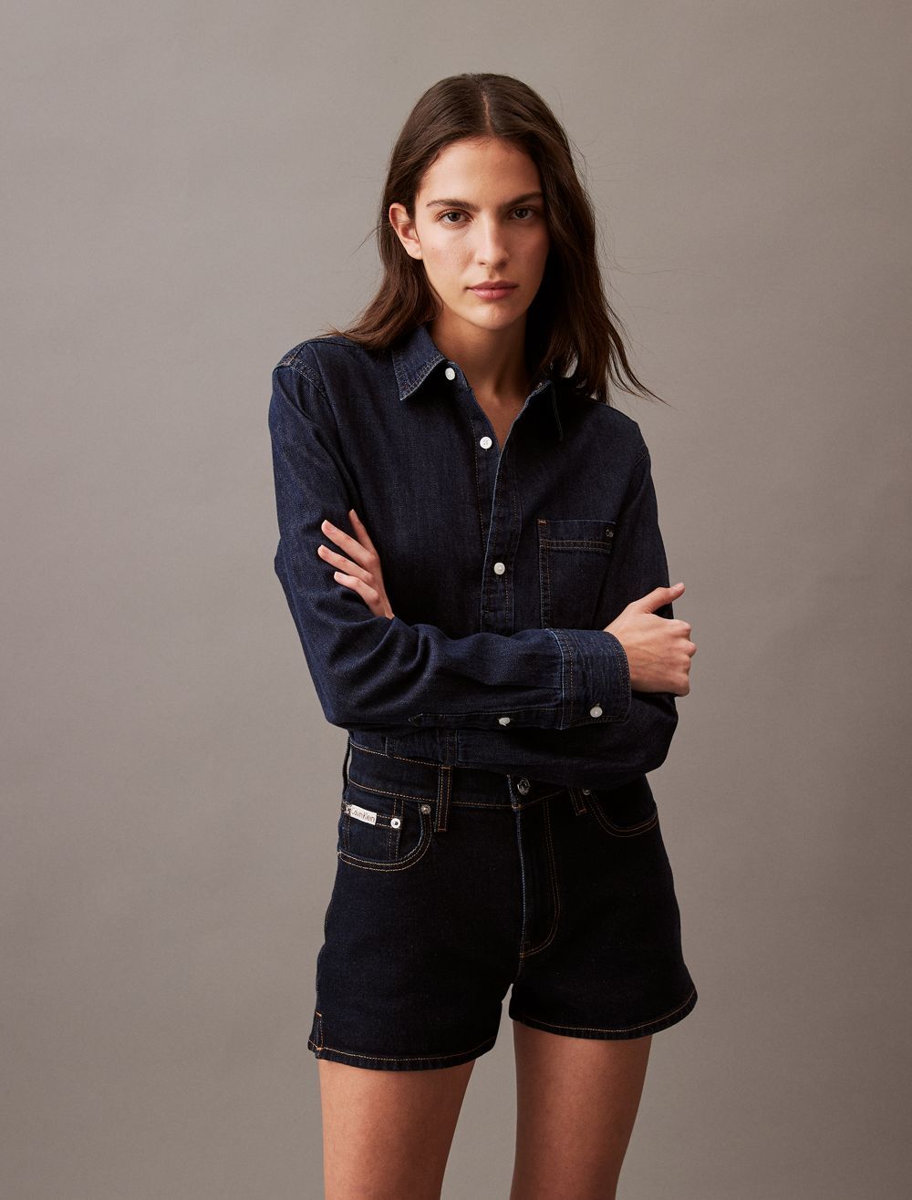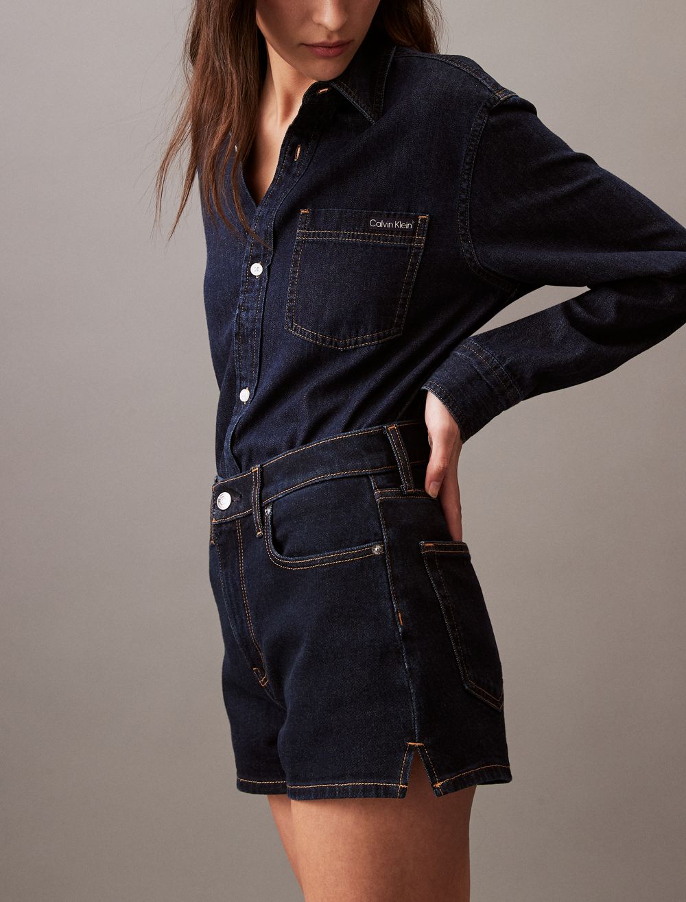 Your next go-to short, this signature style is made with a high rise waist and a mini silhouette. Crafted from cotton stretch denim for a flexible feel with heritage-inspired logo accents, side vents at the hem and dyed-to-match tonal topstitching.- Extra soft cotton stretch denim for a flexible feel with all-day comfort