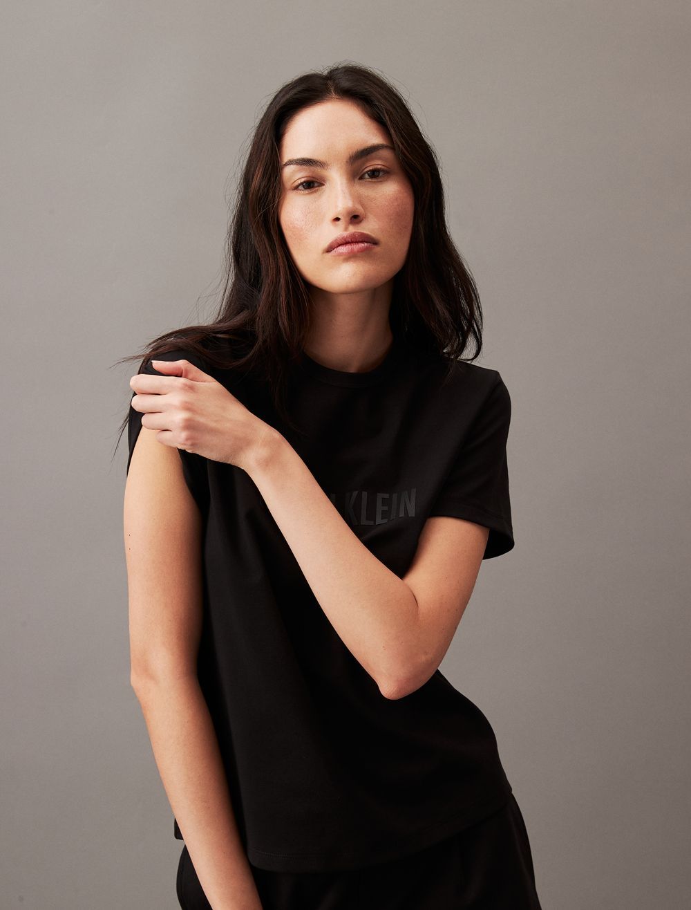 A bold iteration of our iconic logo. Maximum comfort and enhanced movement. This CK t-shirt and shorts sleep set is crafted from a lightweight cotton stretch blend made with cooling properties. Features a crewneck tee with a heat sealed logo and pull-on shorts with an A-line drape, a logo patch elasticated waistband and side slip pockets.- Lightweight cotton stretch blend with cooling properties