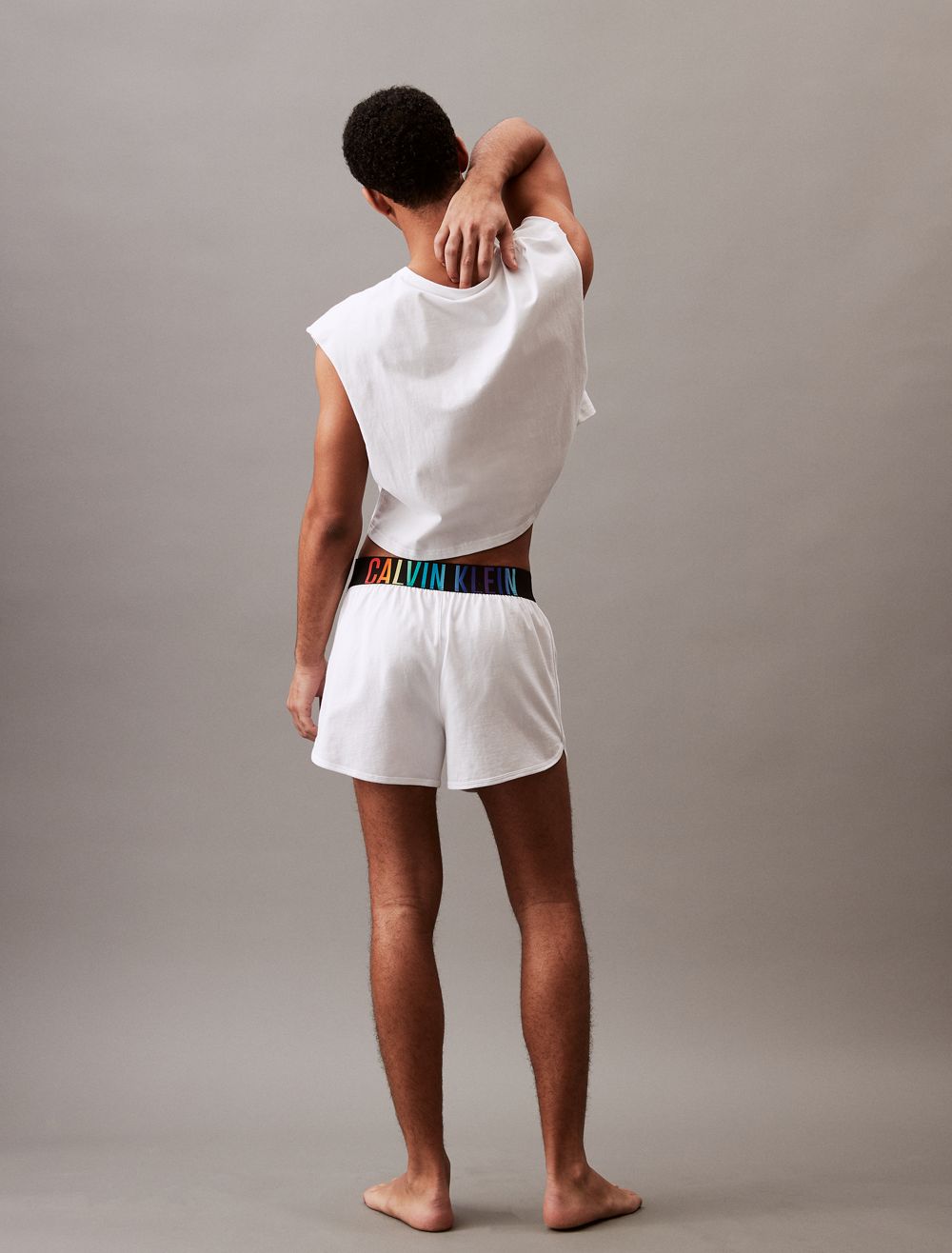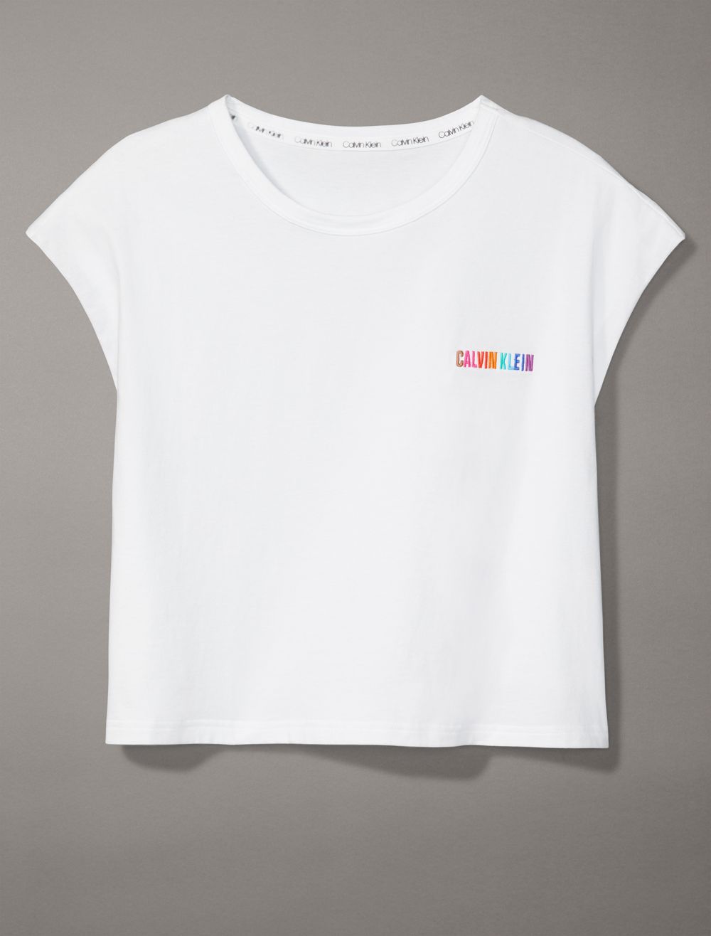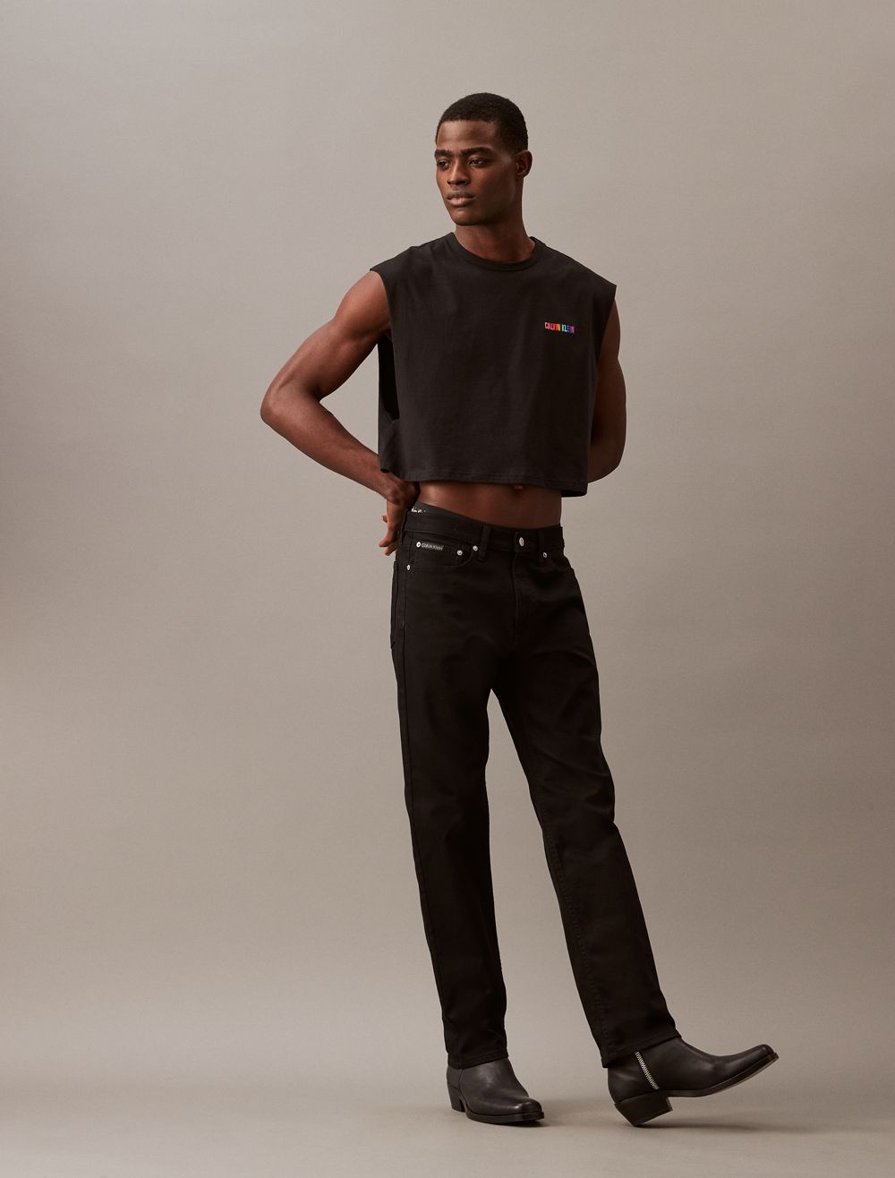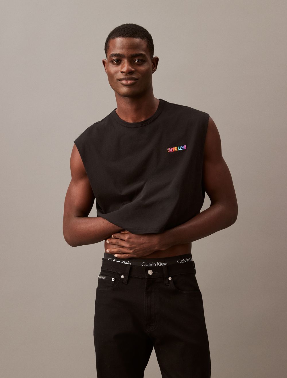 Wear it with Pride. A bold iteration of our iconic logo with maximum comfort and enhanced movement. This Calvin Klein tank is made completely from soft organic cotton and cut in a cropped length.- Pride styling in a limited edition rainbow color palette