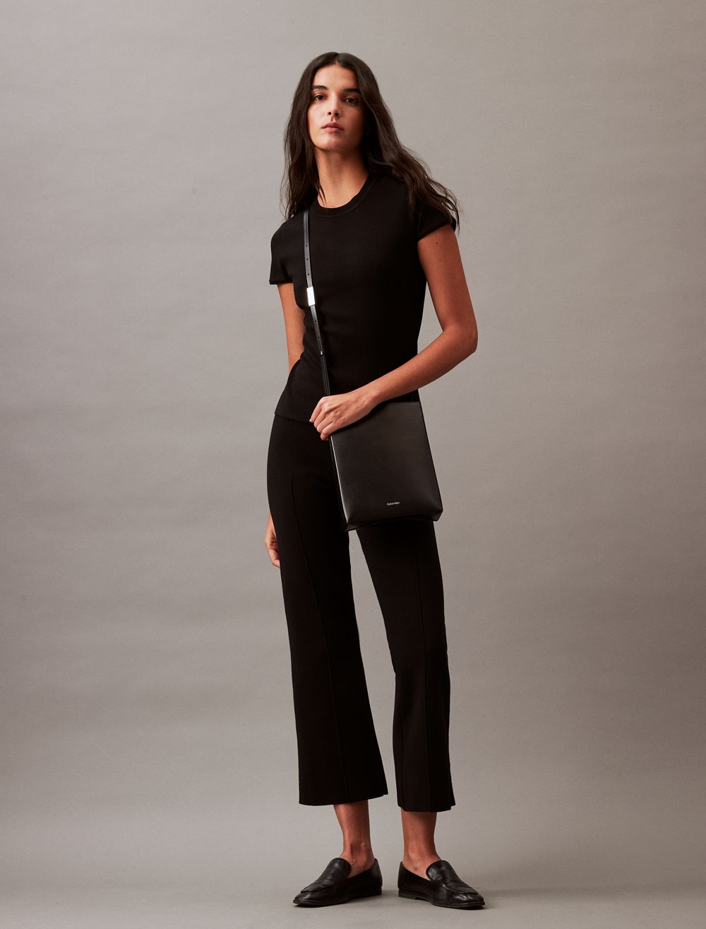 Elegance on-the-go, this crossbody bag is a compact, travel essential. Crafted from supple leather with minimalist styling and refined logo accents. Finished with a magnetic closure and an adjustable crossbody strap for functional, versatile wear.- Supple leather with a minimalist design