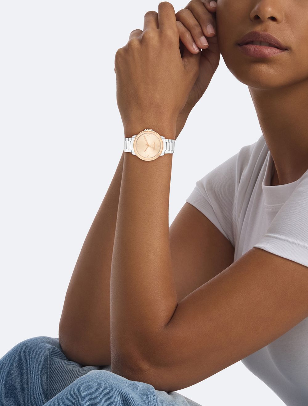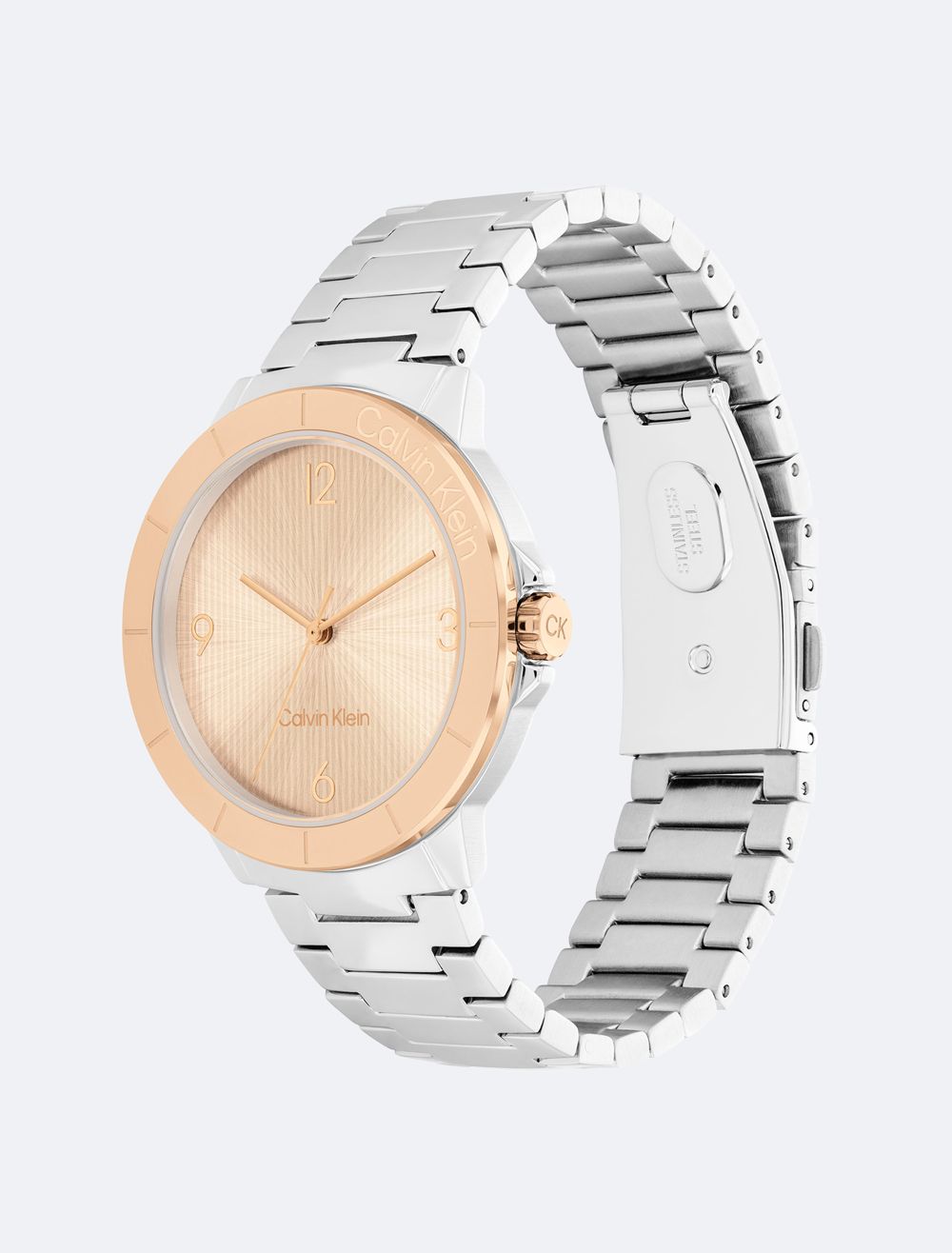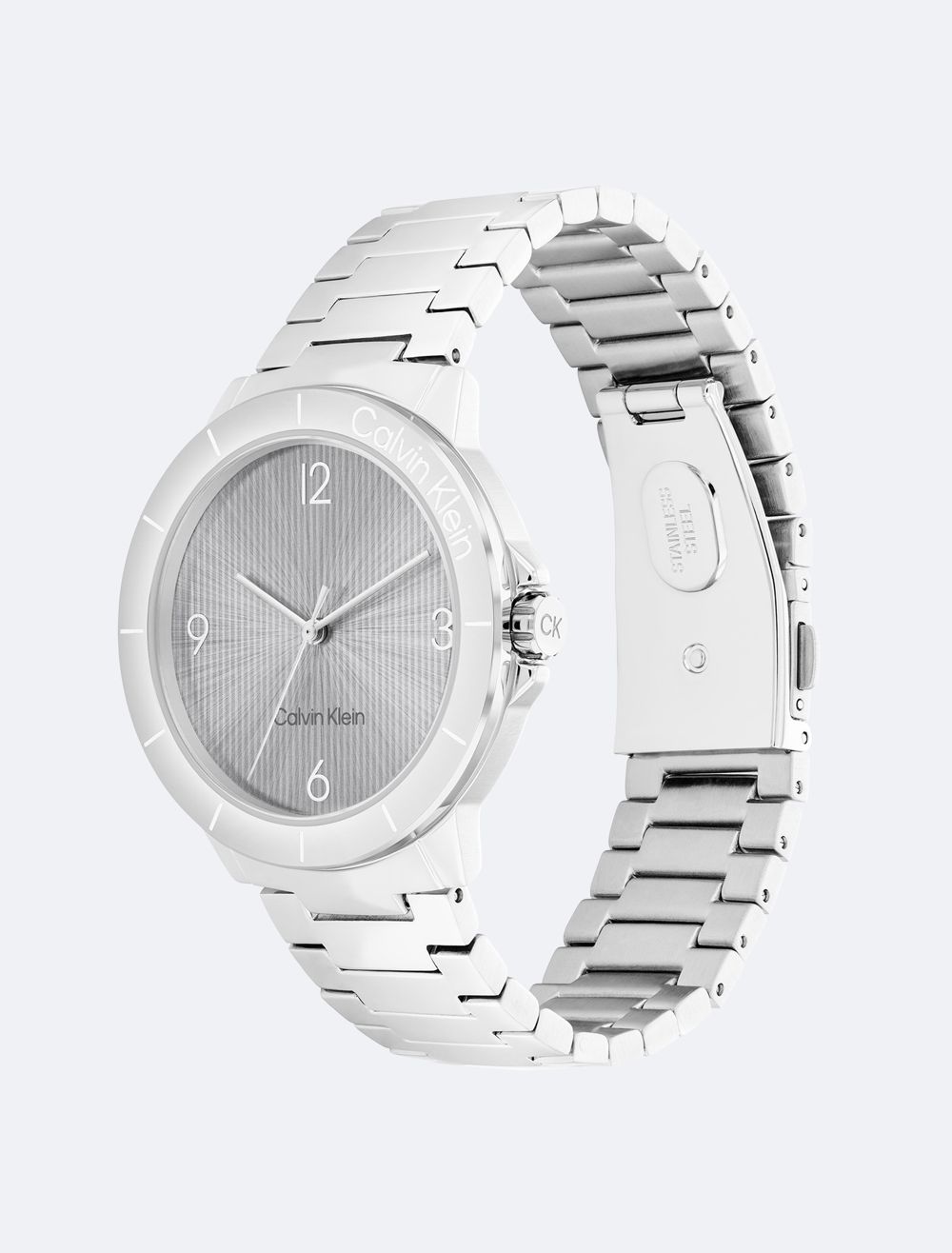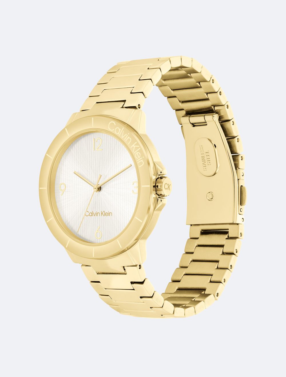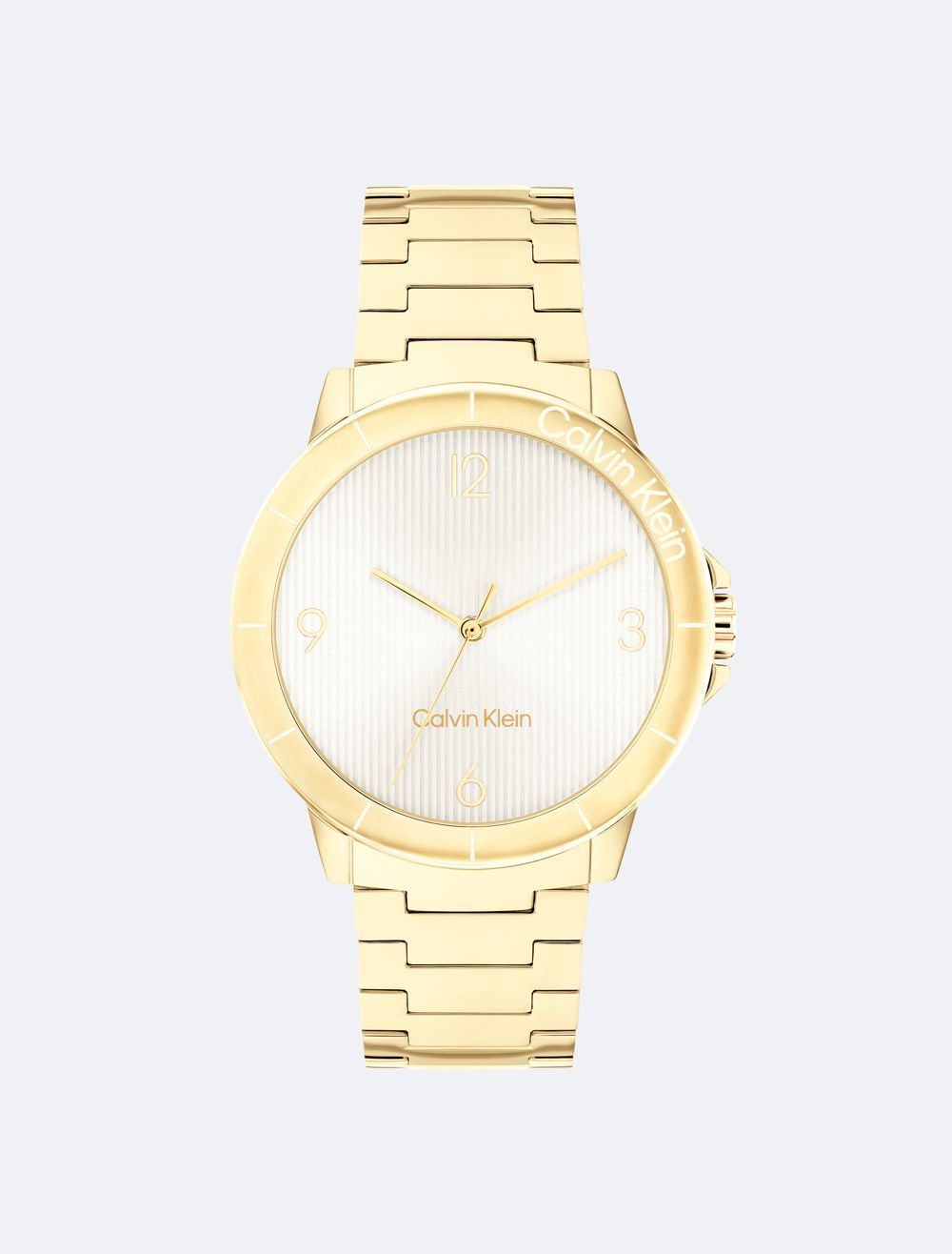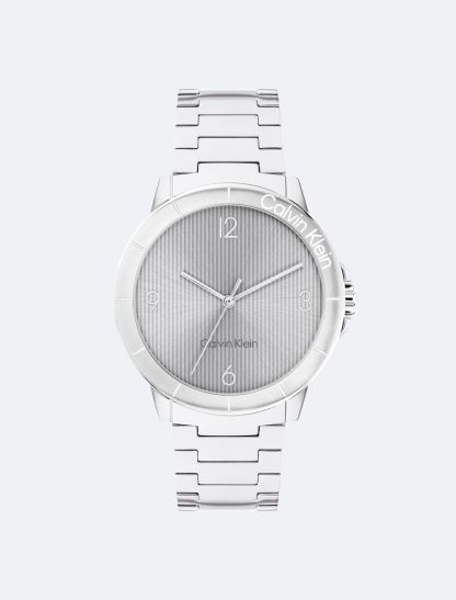 A sporty watch featuring a branded bezel and case with subtle crown protection on a uni-link bracelet. Repeated linear texture adds an interesting dimension to this timepiece's dial.- 36mm stainless steel, two-tone, or gold-plated case