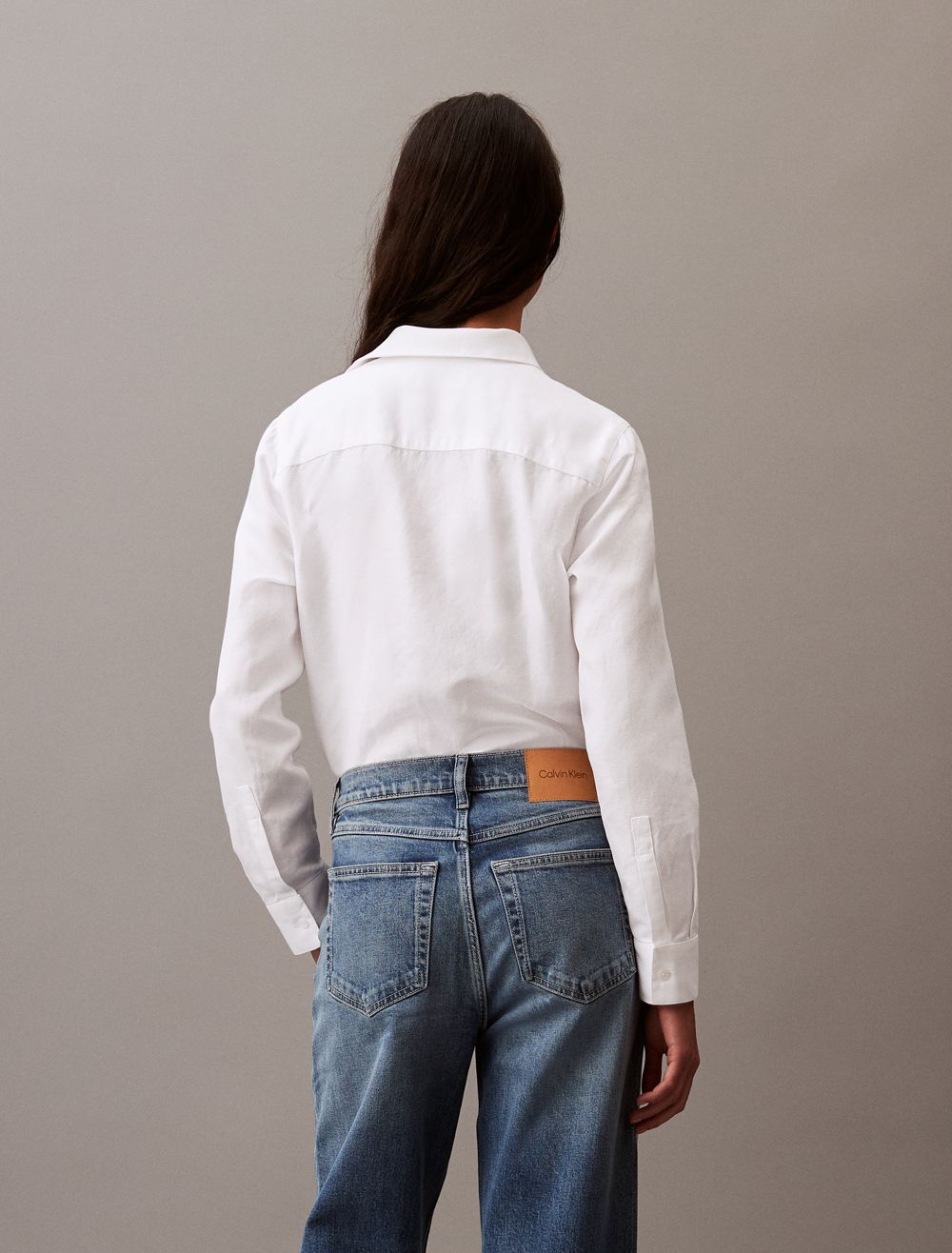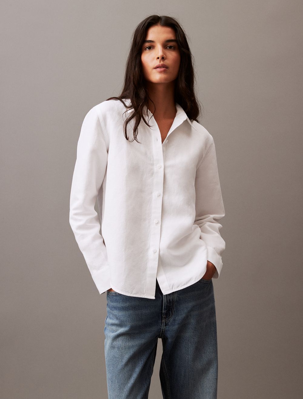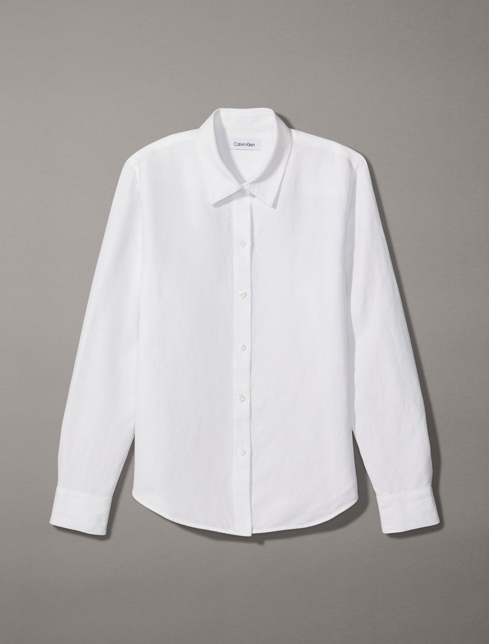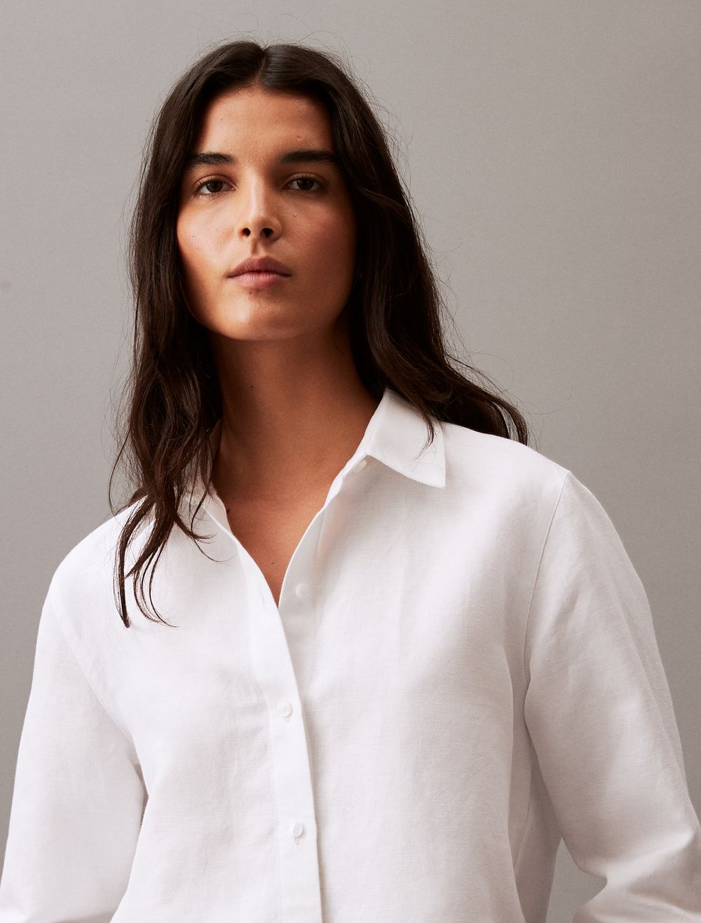 Breathable and lightweight, this linen button-down shirt is a versatile staple that can be styled fully buttoned up with a pair of jeans or left unbuttoned above a ribbed tank. Made with long sleeves and a point collar. Cut in a classic fit and finished with barrel cuffs at the sleeve openings.- Long sleeves + point collar