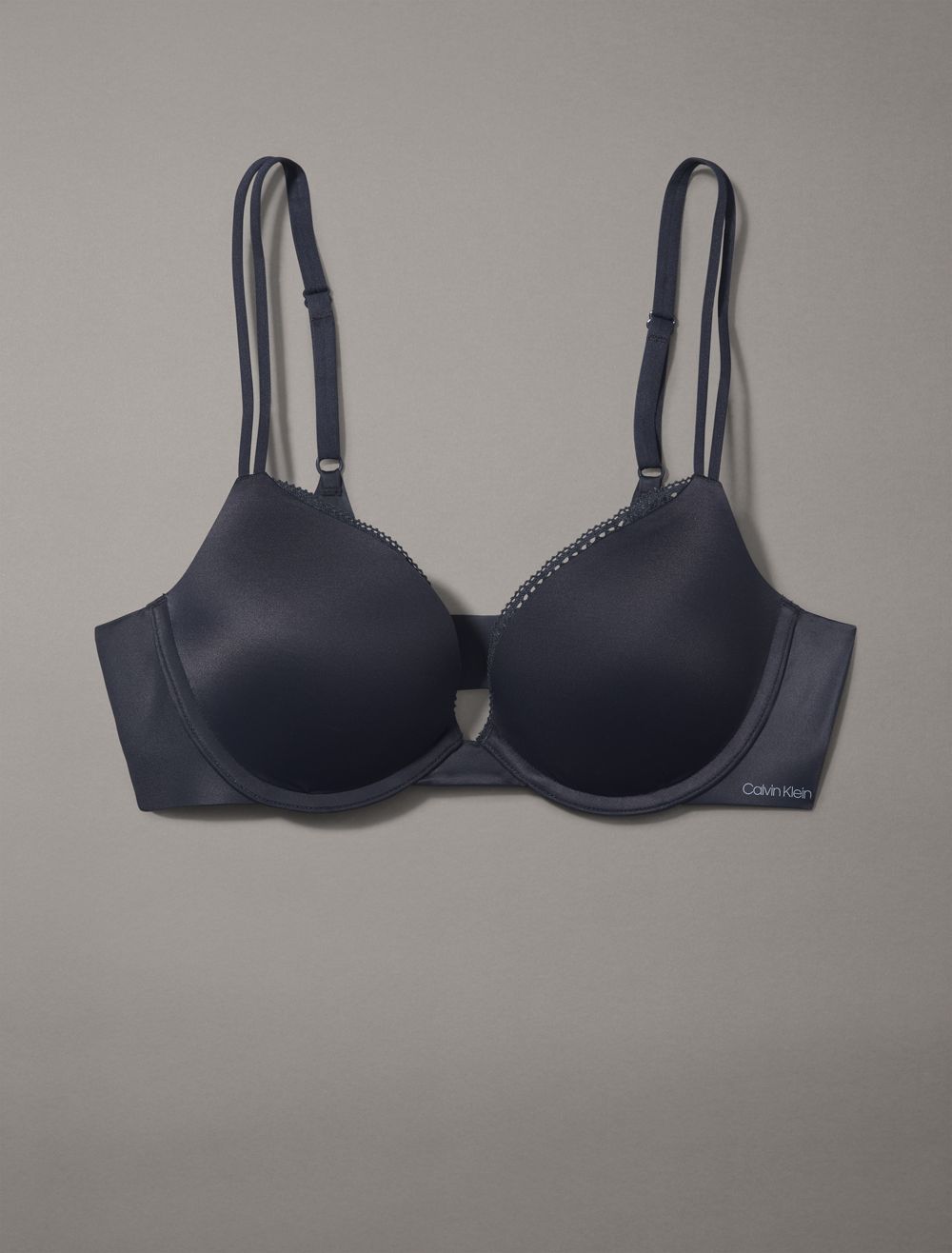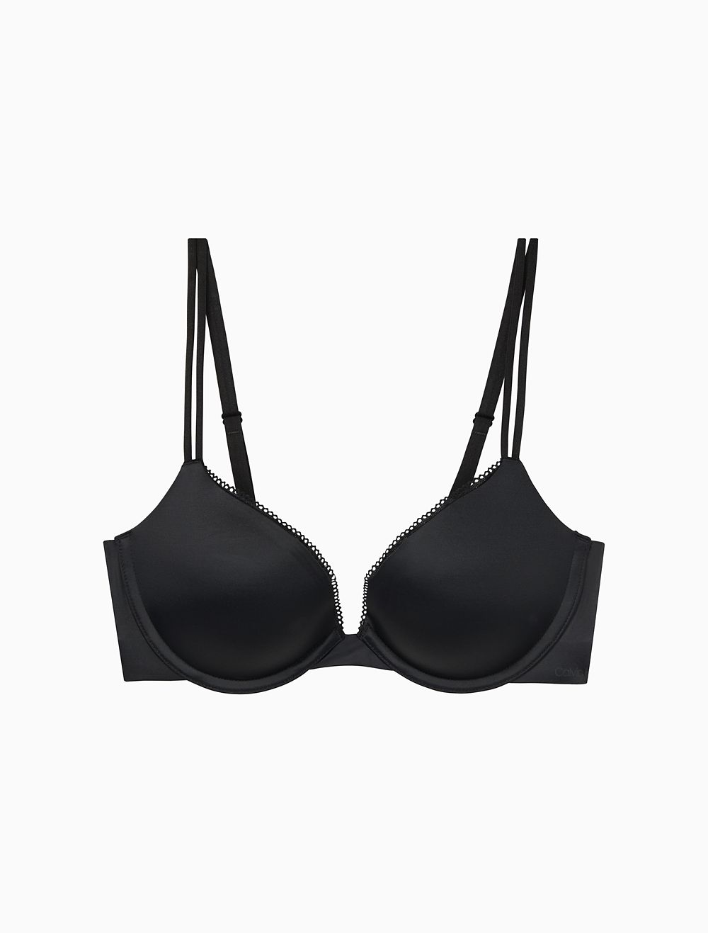 Featuring a signature CK liquid touch design for an ultra cool and lightweight feel, this sleek push-up plunge bra is made from luxurious microfiber with silky, soft comfort. Detailed with a liquid silicone wing, fit flexible cups with added lift, modern lace trim, fully adjustable double rouleau straps and a heat seal logo for a must-have, underwear essential.- Our signature Liquid Touch fabric with an ultra cool, lightweight feel