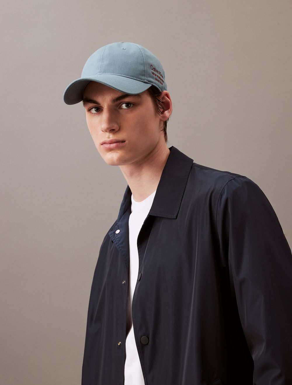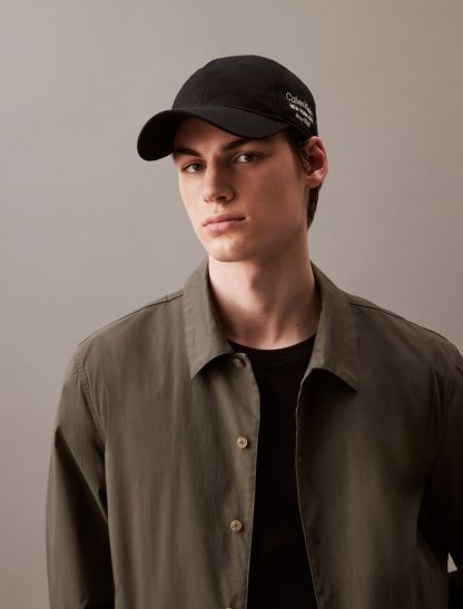 Made completely from brushed cotton twill, this baseball cap features a logo graphic at one side. Designed with an adjustable back for a personalized fit. Created with a curved brim and finished with topstitching accents.- Calvin Klein logo graphic at one side
