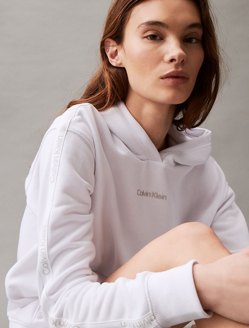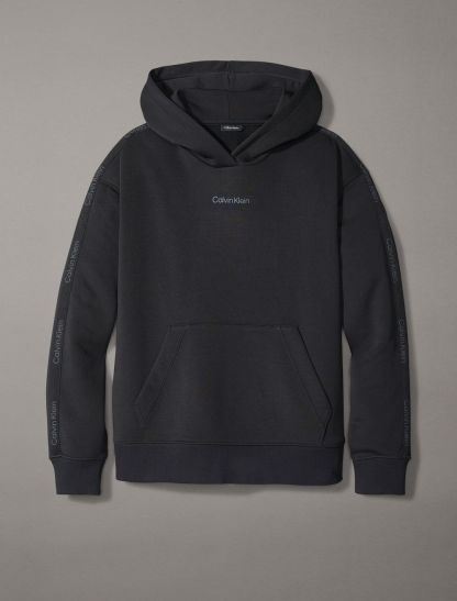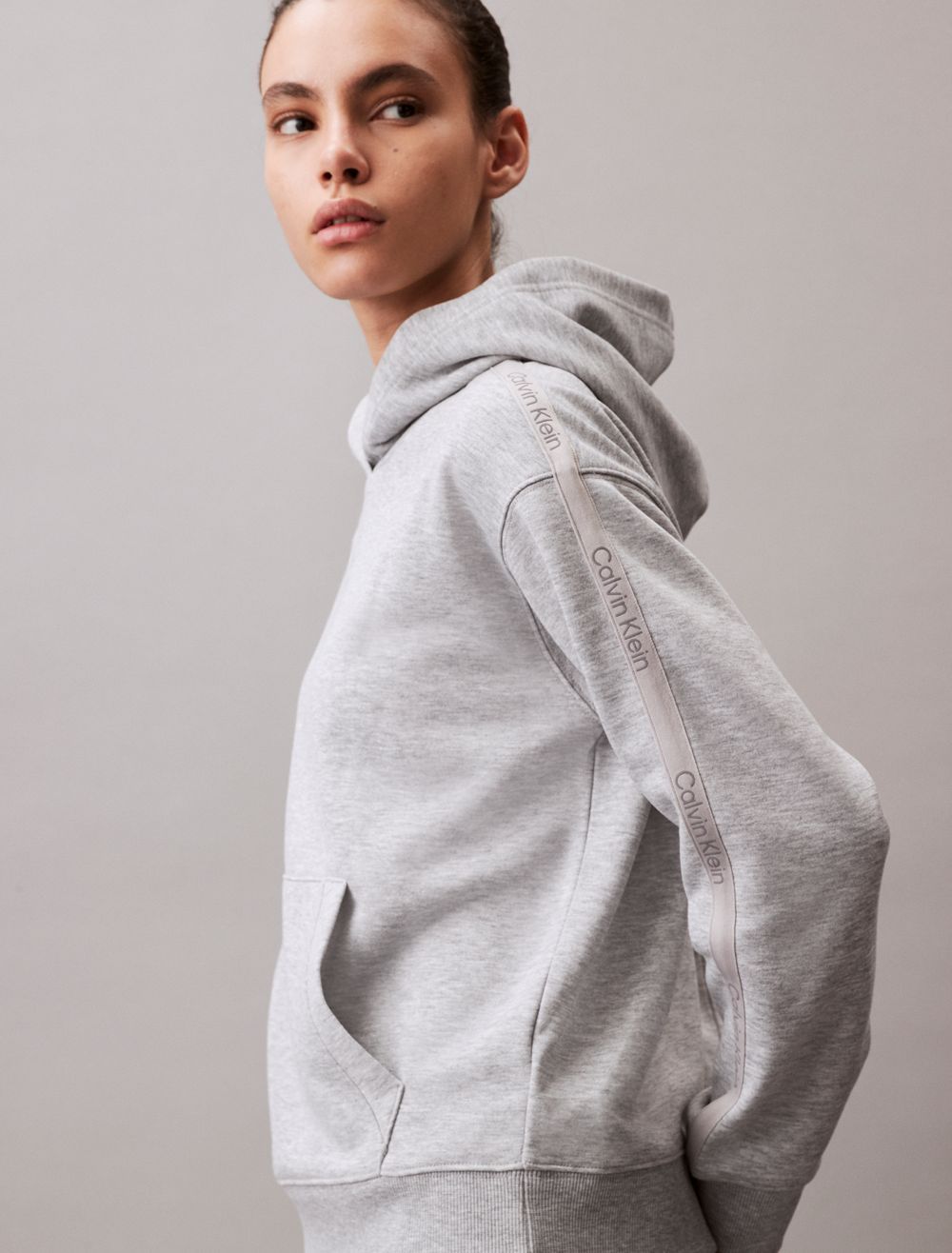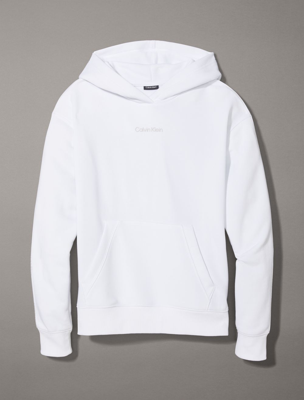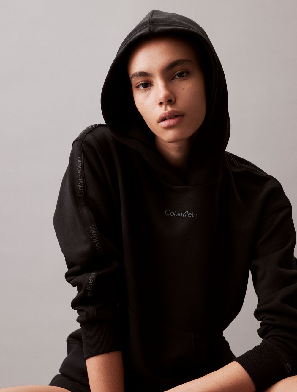 An athletic essential, this hoodie is detailed with signature logo tape along the sleeves and logo styling at the chest. Drop shoulders make for a relaxed fit at the shoulders while banded cuffs deliver a snug fit at the sleeve openings. Crafted completely from recycled polyester, this piece is made with reduced environmental impact.- Long sleeves + crossover hood