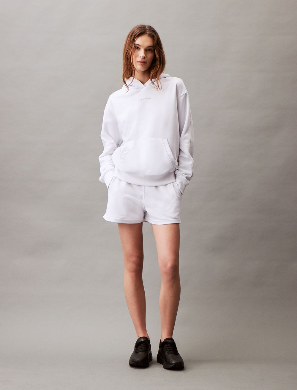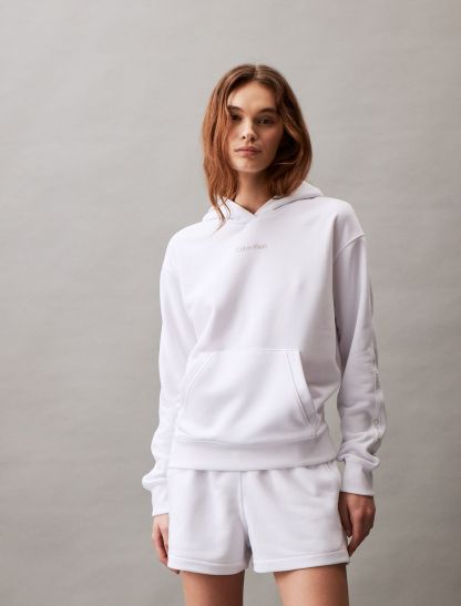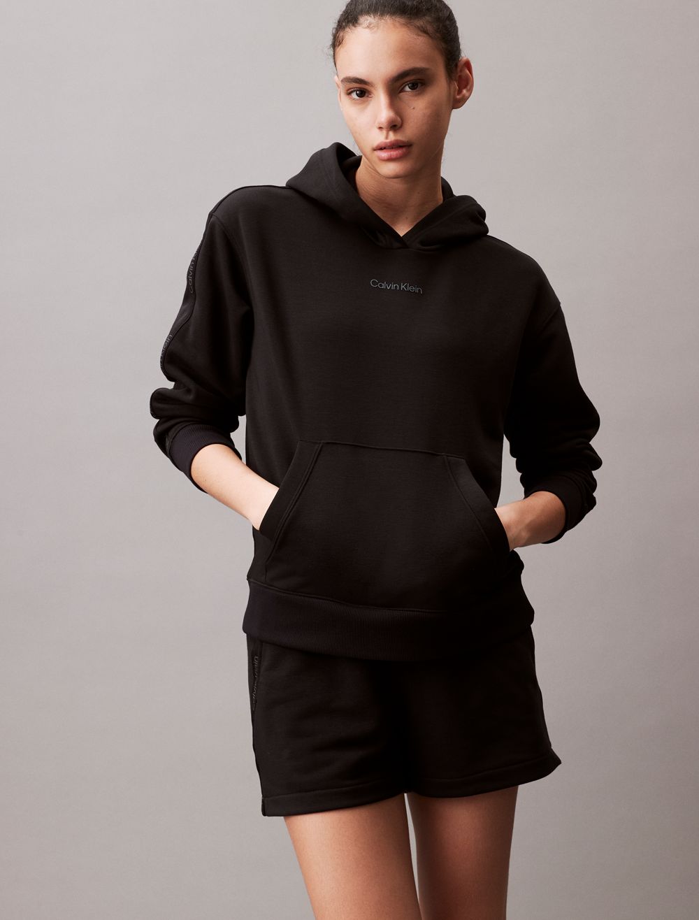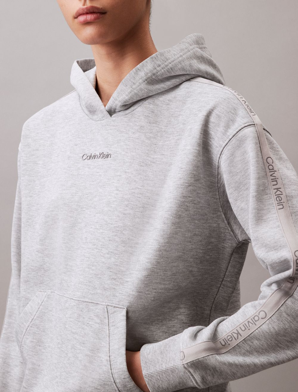 An athletic essential, this hoodie is detailed with signature logo tape along the sleeves and logo styling at the chest. Drop shoulders make for a relaxed fit at the shoulders while banded cuffs deliver a snug fit at the sleeve openings. Crafted completely from recycled polyester, this piece is made with reduced environmental impact.- Long sleeves + crossover hood