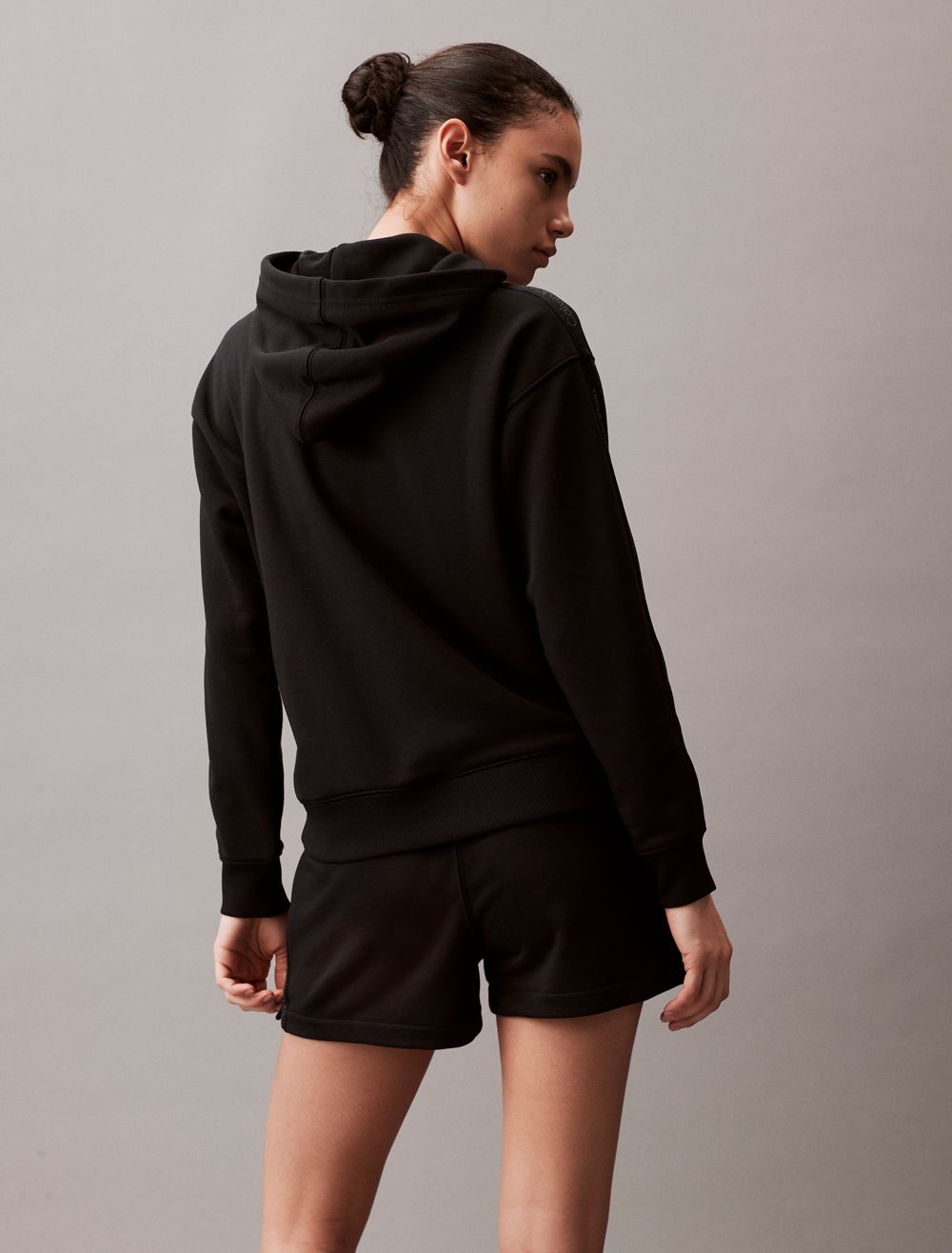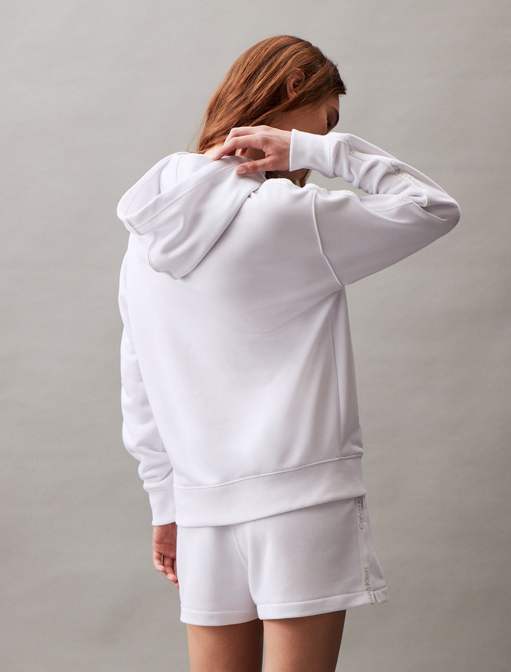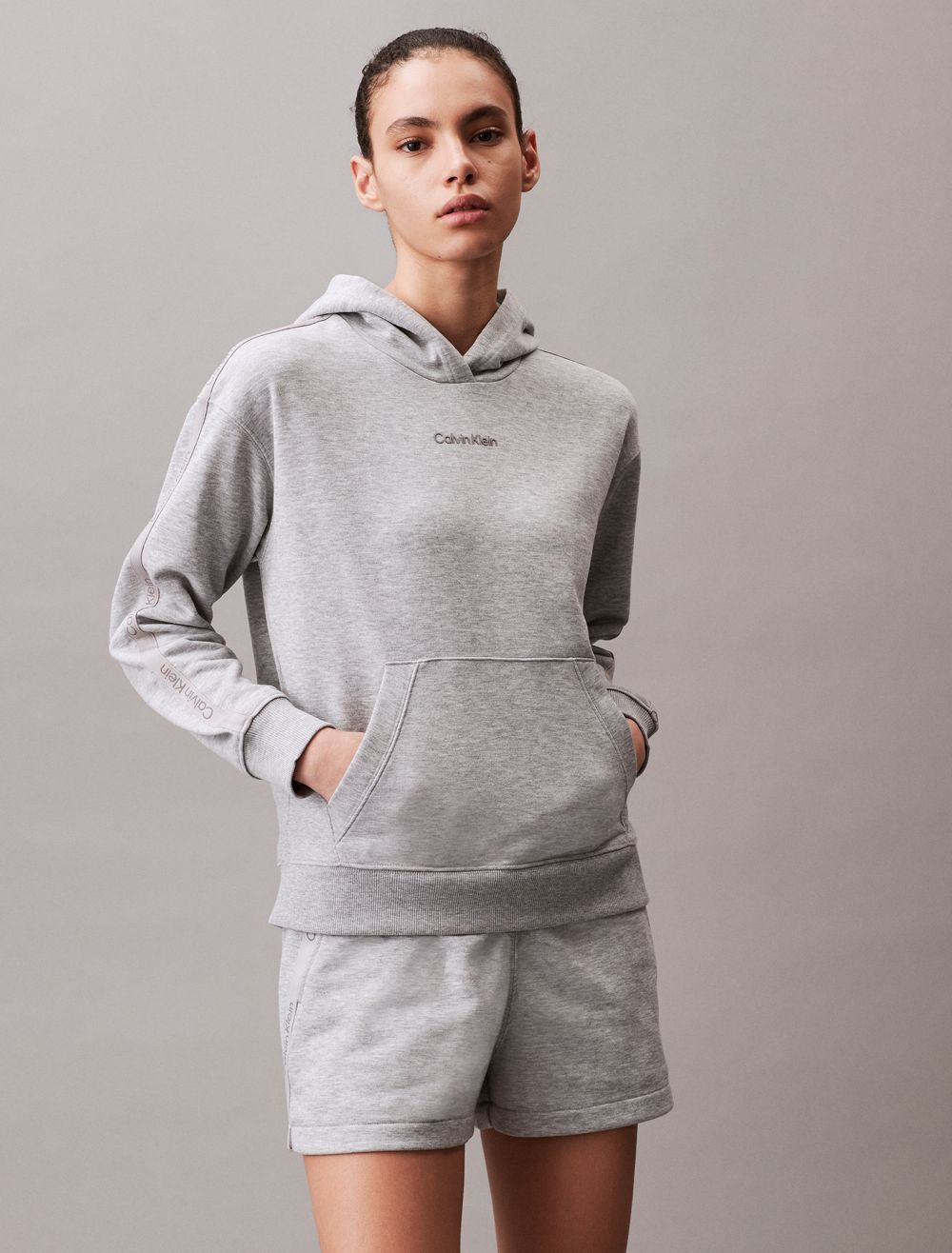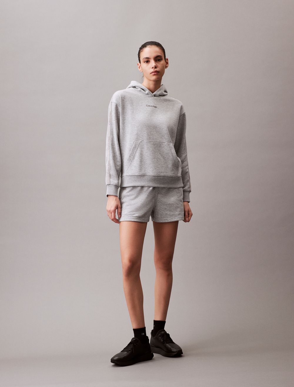 An athletic essential, this hoodie is detailed with signature logo tape along the sleeves and logo styling at the chest. Drop shoulders make for a relaxed fit at the shoulders while banded cuffs deliver a snug fit at the sleeve openings. Crafted completely from recycled polyester, this piece is made with reduced environmental impact.- Long sleeves + crossover hood