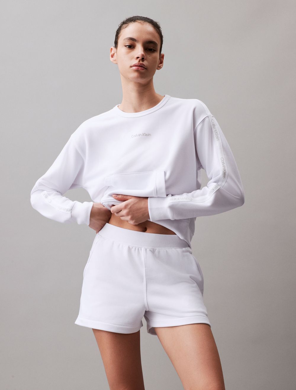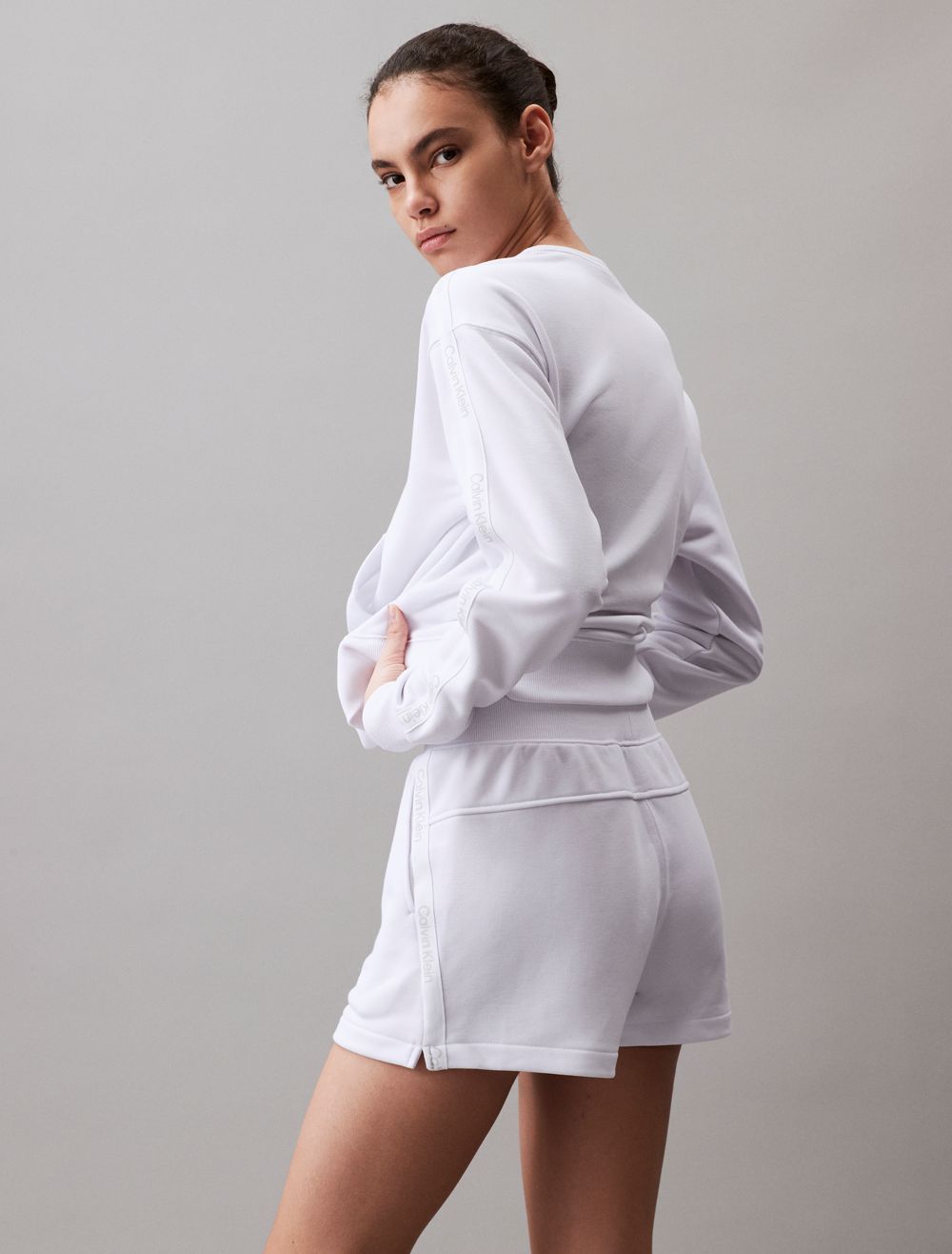 An athletic essential, these shorts are detailed with signature logo tape along the upper leg. Created with slip pockets at both sides and styled with exposed seams at the back. Crafted completely from recycled polyester, this piece is made with reduced environmental impact.- Logo tape along the upper leg