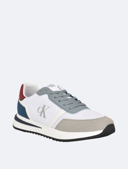 Classic athletic styling with retro-inspired logo accents. This Calvin Klein sneaker is an easy-to-style, versatile choice with a contoured rubber sole and a padded footbed to power you through the day.- Colorblock styling