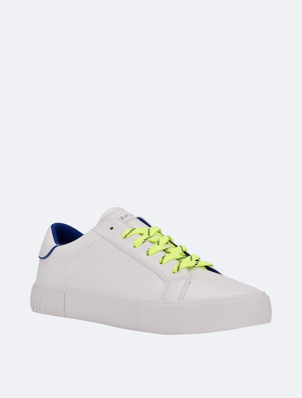 A casual, everyday sneaker designed with a low top silhouette. Detailed with neon laces and features raised Calvin Klein logo styling along the back sole. Created with a padded logo footbed and finished with topstitching accents.- Slips-on
