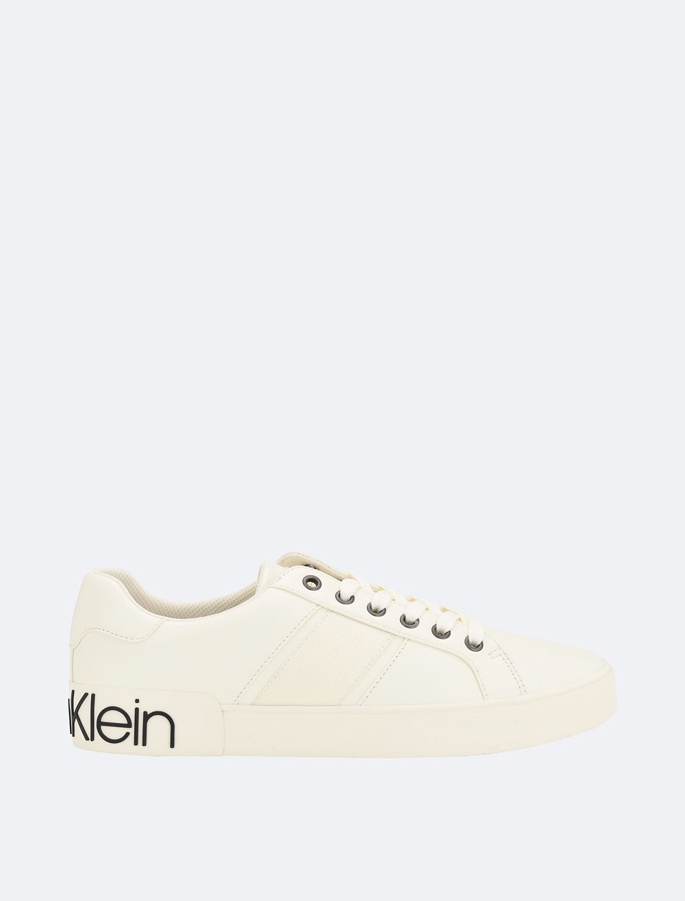 Designed in a low top silhouette, this sneaker pairs effortlessly with casual outfits. Made with lace-up styling and features a Calvin Klein logo design at the heel. Created with a padded logo footbed and finished with topstitching accents.- Slips-on