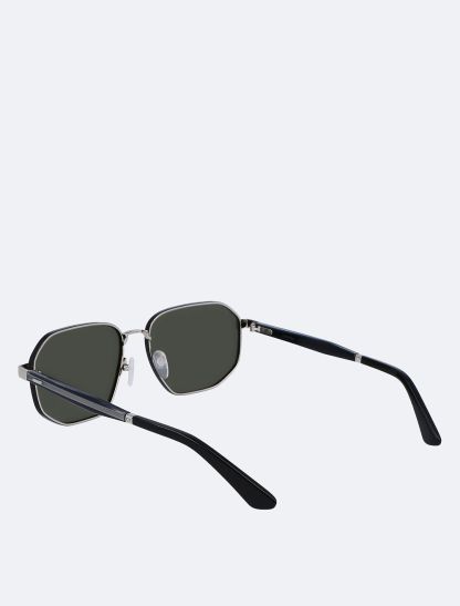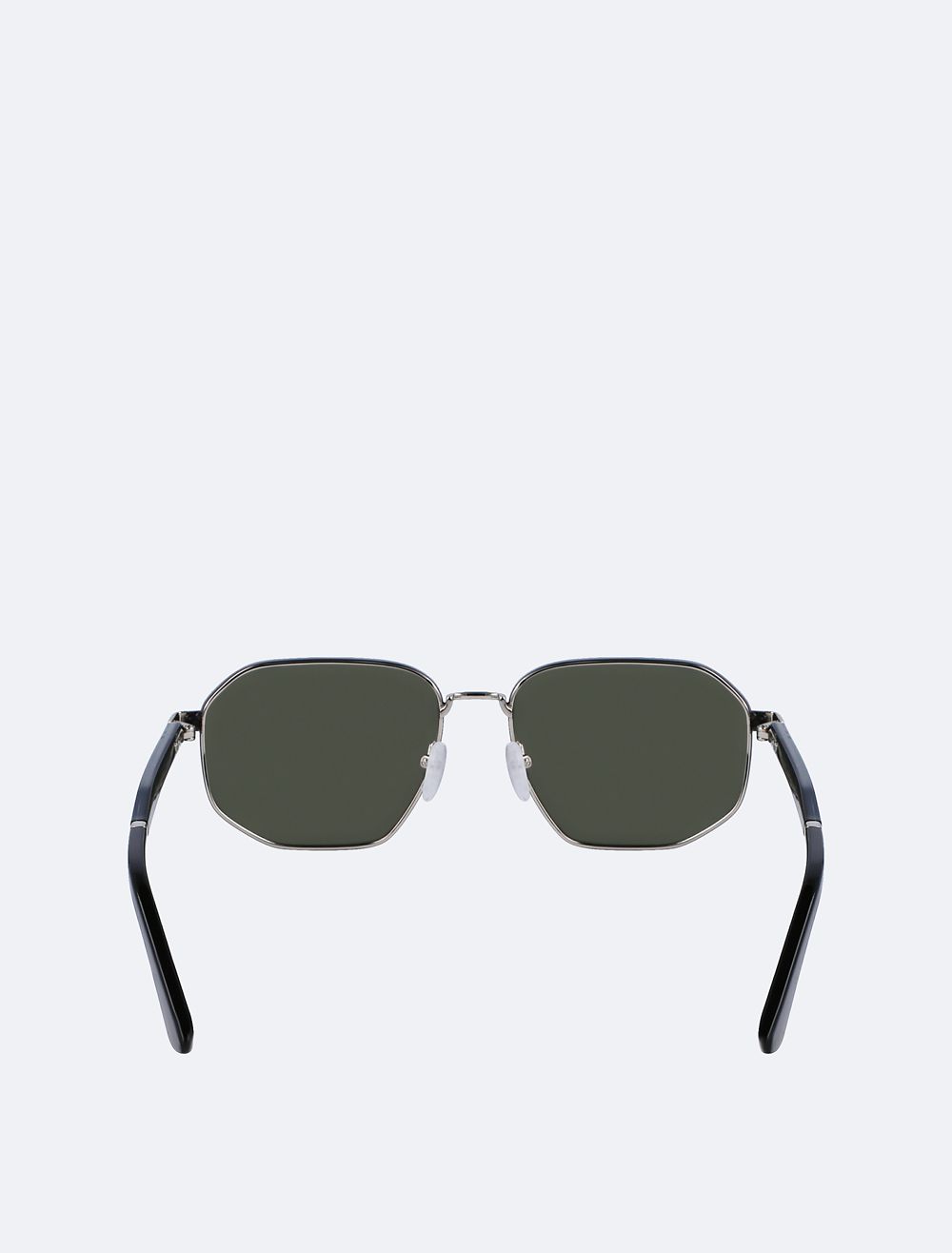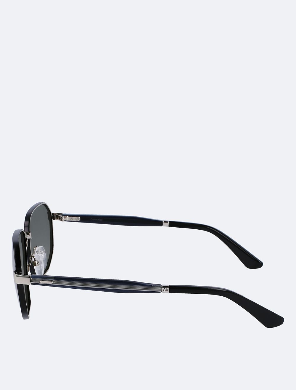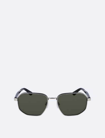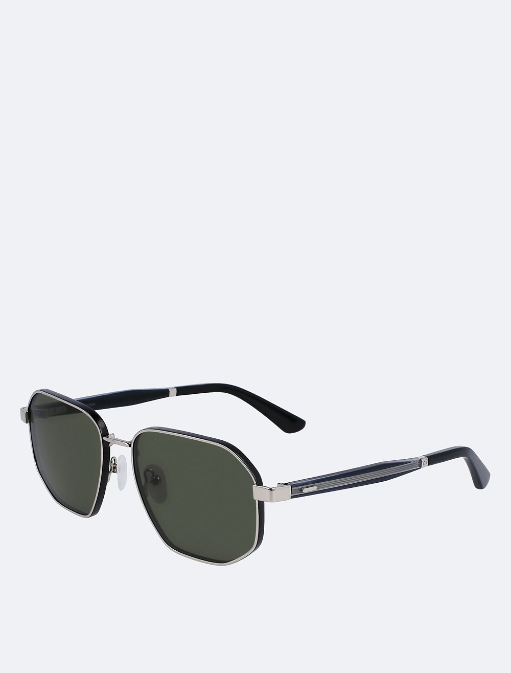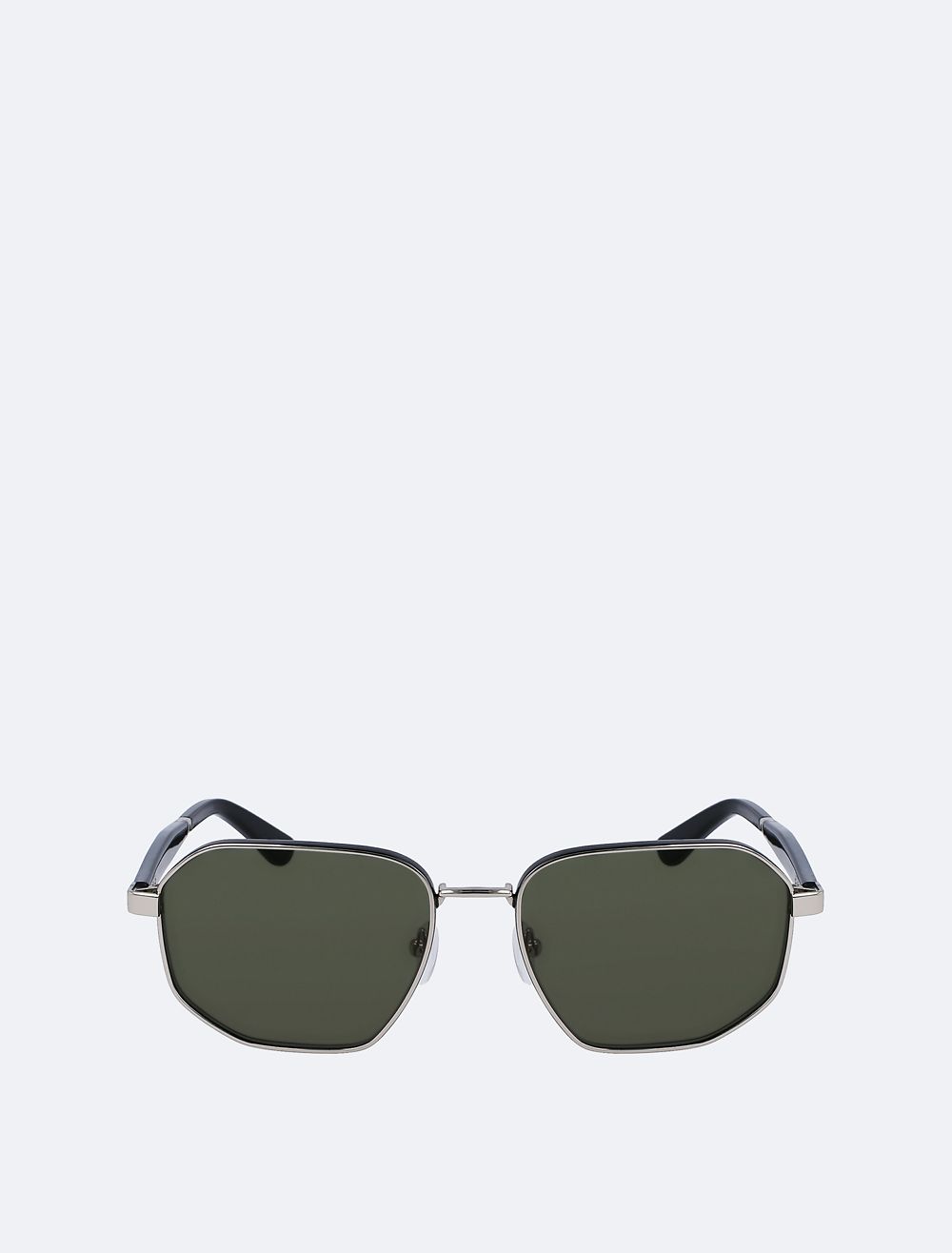 Designed with a modified rectangle shape, these sunglasses feature structured, geometric styling. Made with a metal frame and 100% uva/b sun protection tinted lenses. Detailed with adjustable nose pads for a personalized fit.- Metal frame
