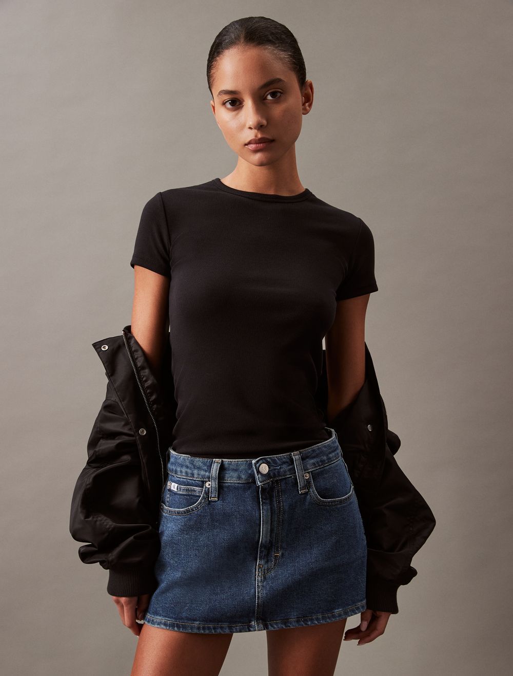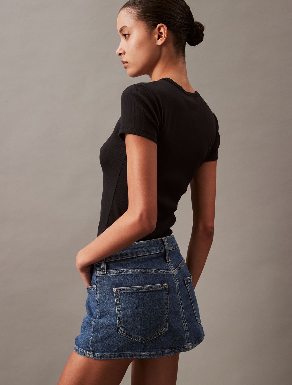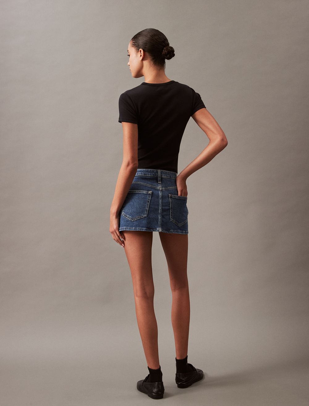 Crafted from a recycled cotton blend, this denim skirt is made with reduced environmental impact. Cut in a mini length and made with classic 5-pocket styling in a medium wash. Finished with CK branded hardware.- Mini length