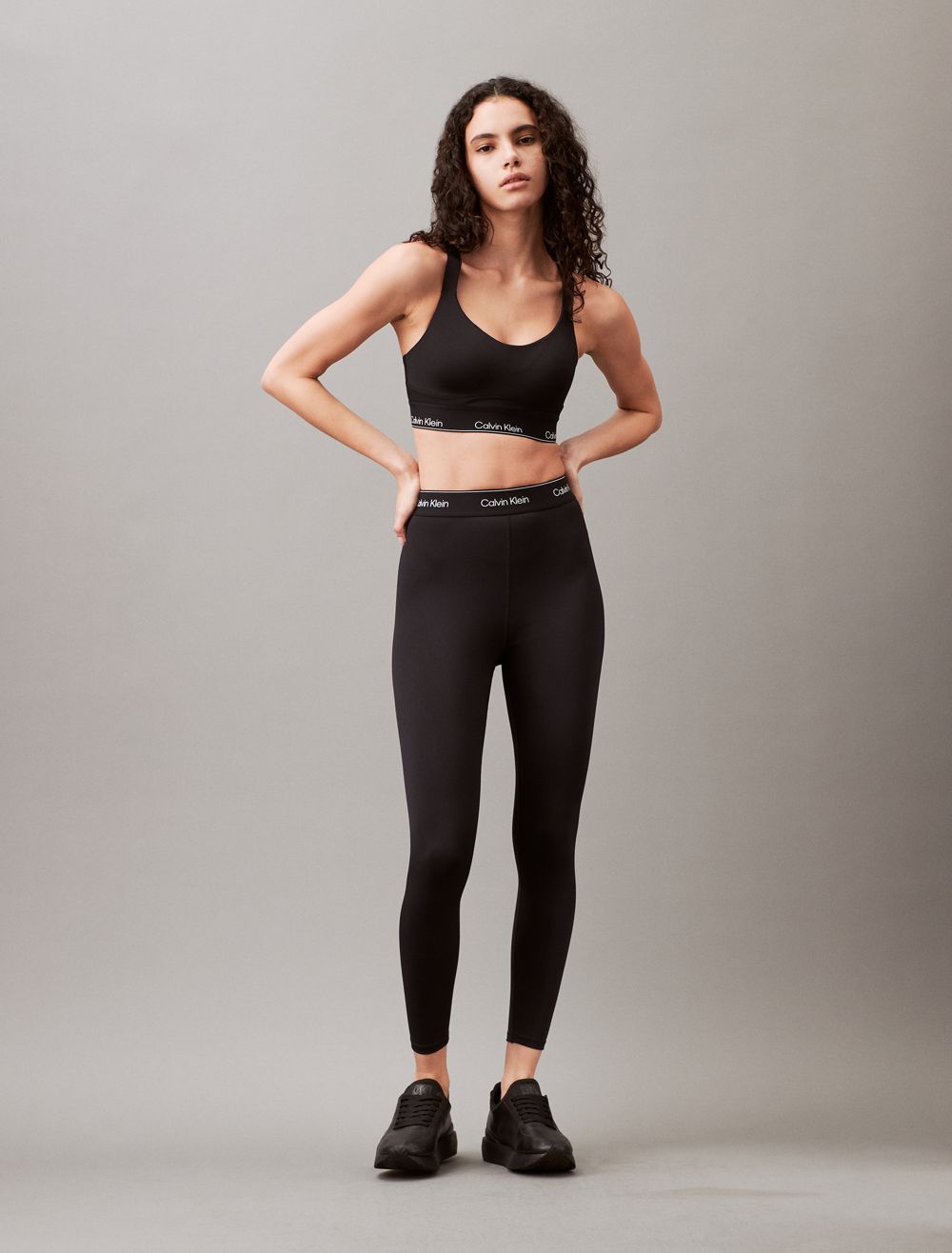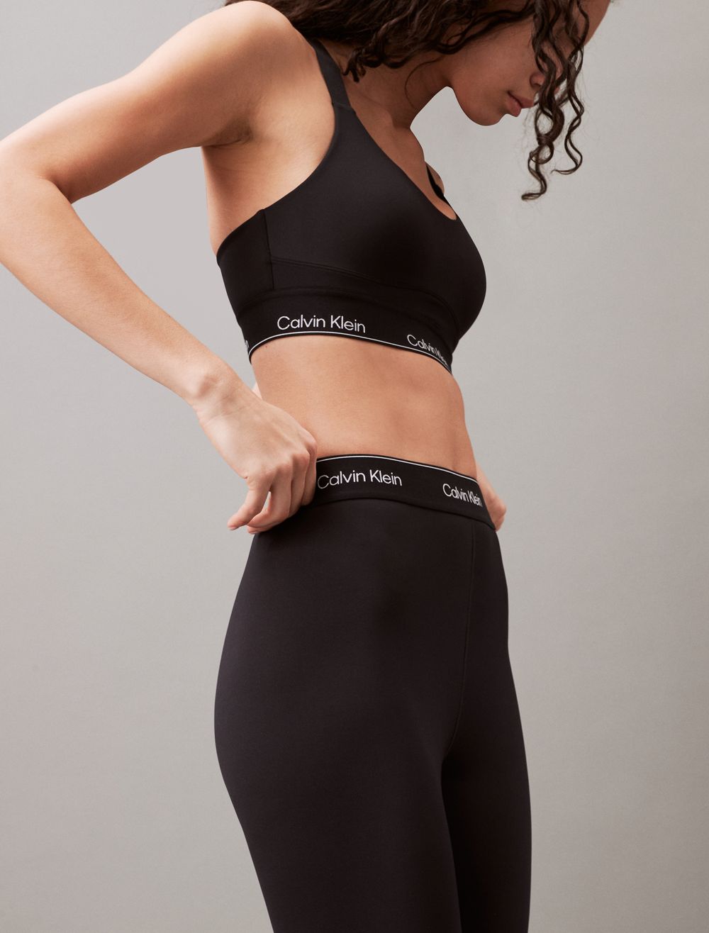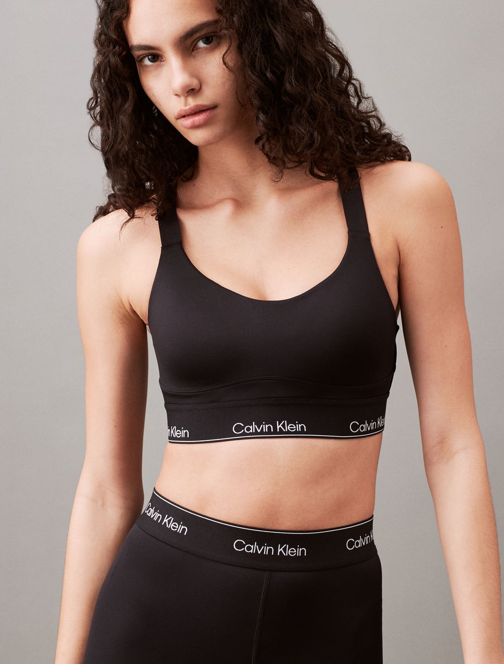 Featuring minimal, solid styling, this padded sports bra is constructed from moisture-wicking fabric for total comfort and breathability during workouts. Created with adjustable straps and a scoop neckline. Designed with an elastic underband detailed with repeating CK logos.- Moisture wicking fabric to keep you cool + dry