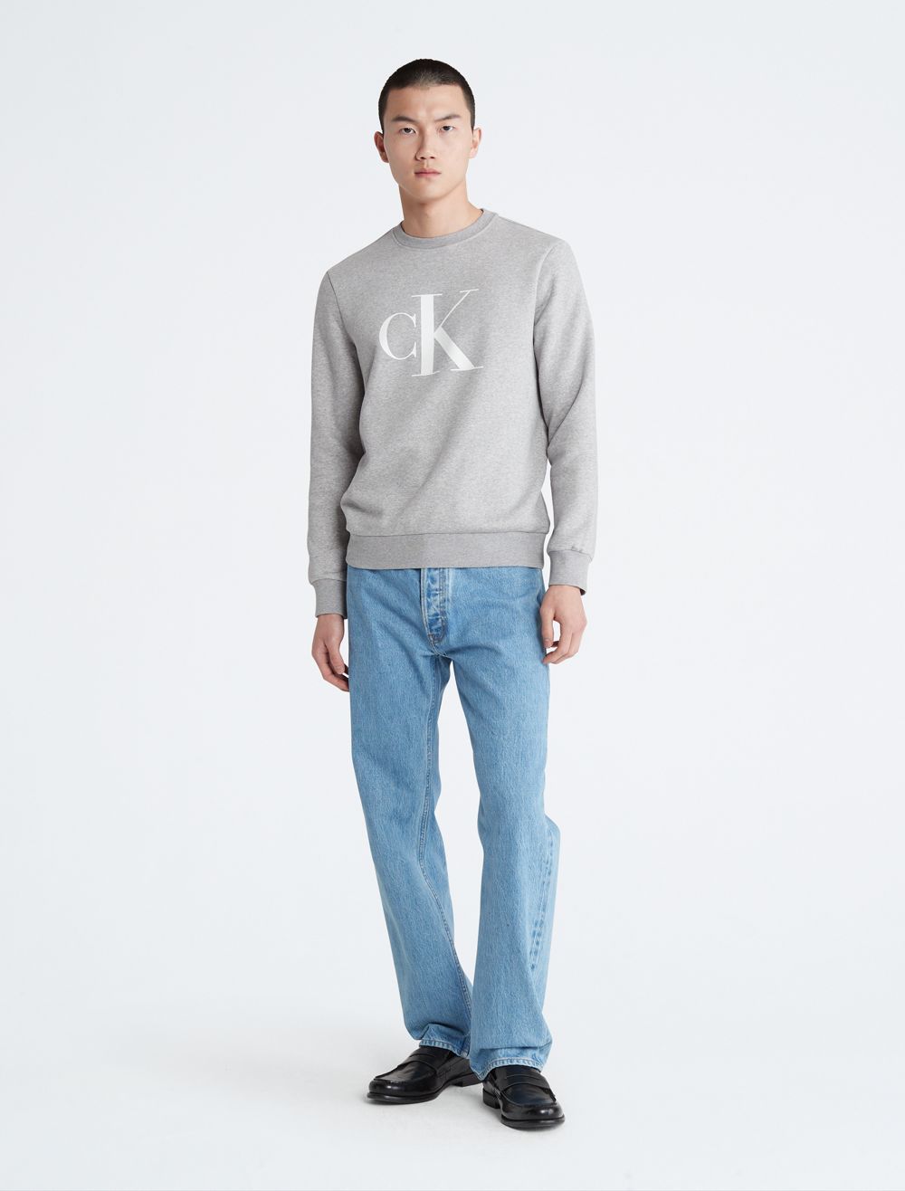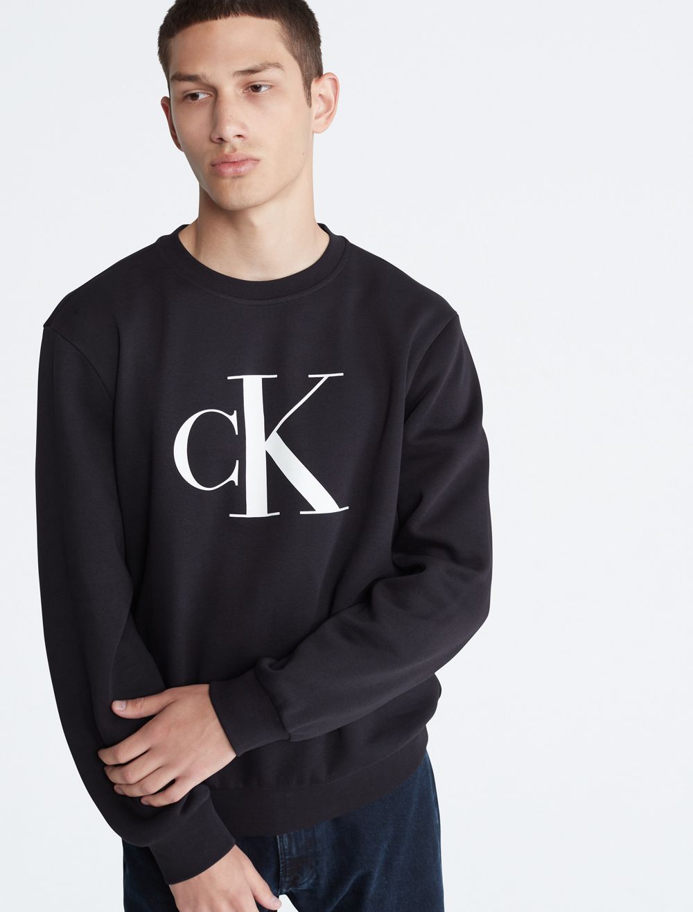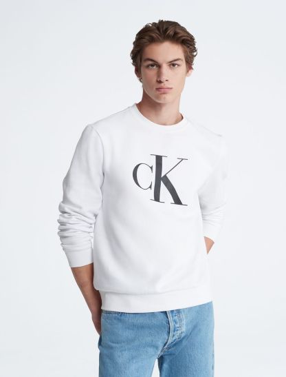 Crafted from a soft cotton fleece blend, this crewneck sweatshirt is made for complete comfort with added warmth. Styled with long sleeves and banded cuffs at the sleeve openings. Features CK monogram logo styling at the front.- Long sleeves + crewneck