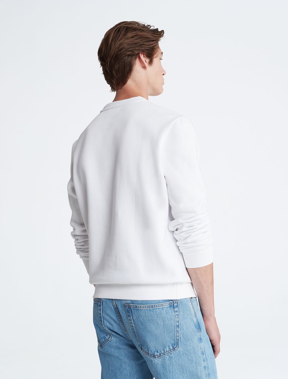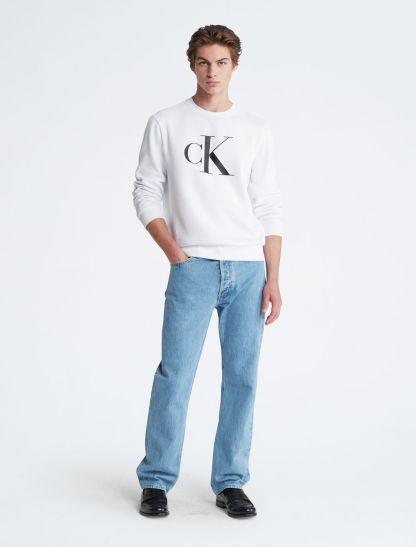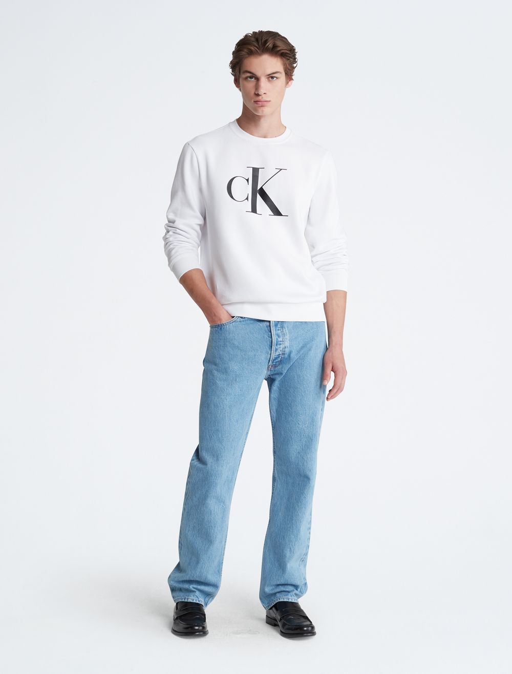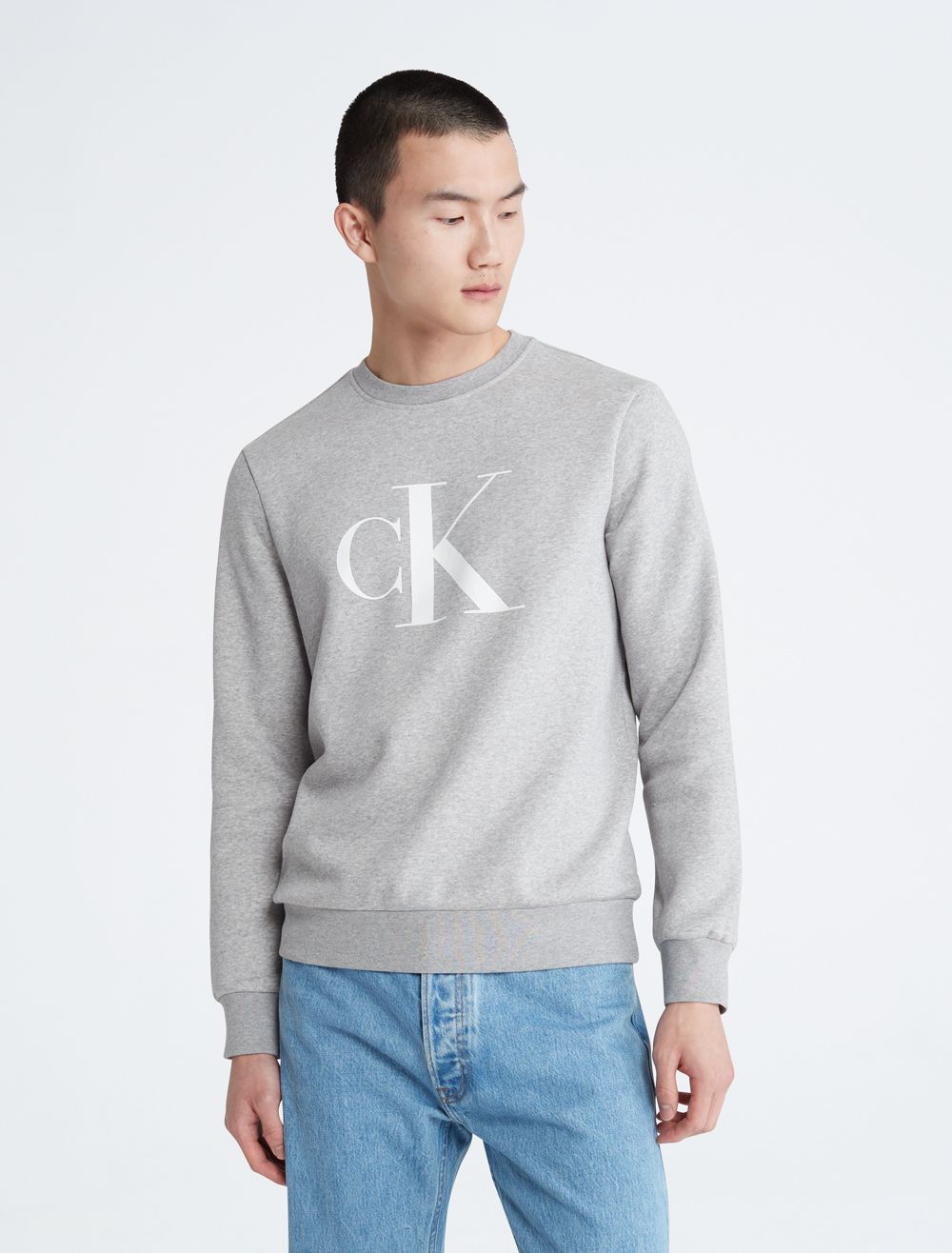 Crafted from a soft cotton fleece blend, this crewneck sweatshirt is made for complete comfort with added warmth. Styled with long sleeves and banded cuffs at the sleeve openings. Features CK monogram logo styling at the front.- Long sleeves + crewneck