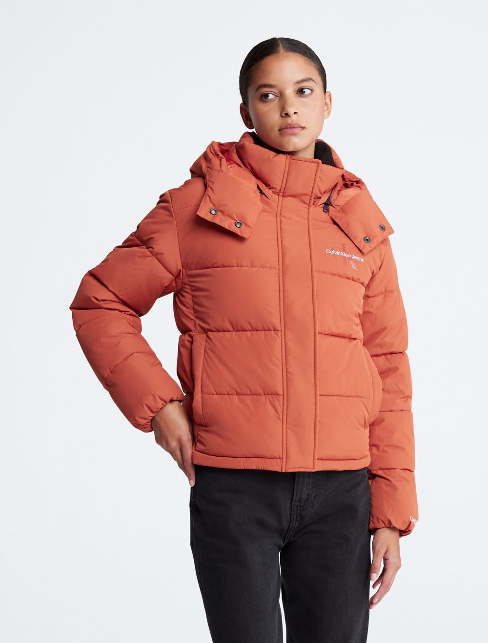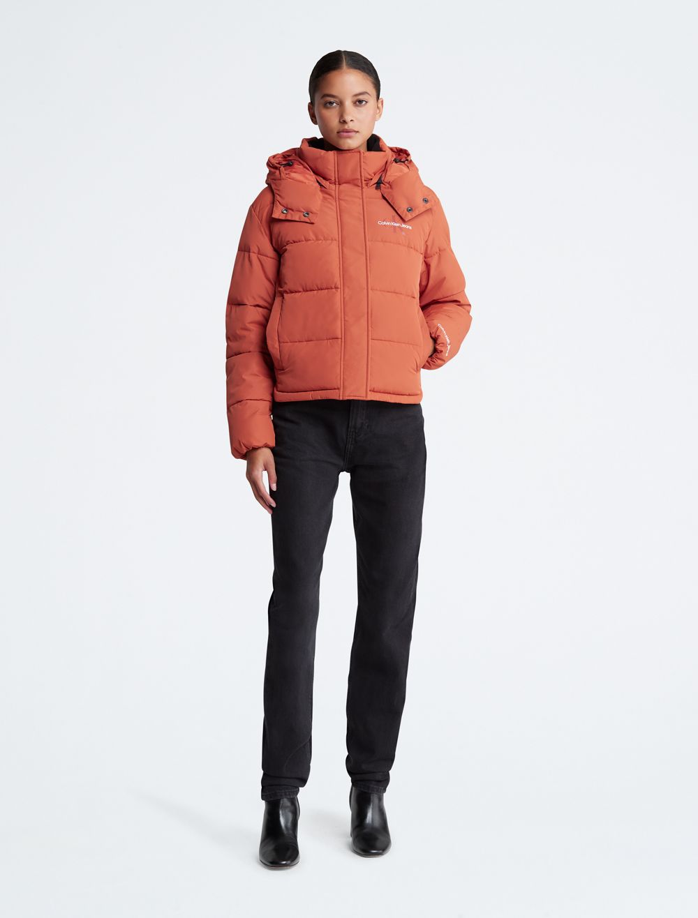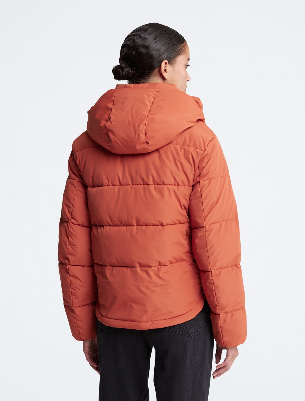 Designed for full coverage on colder days, this fleece-lined puffer jacket features long sleeves, a stand collar, and a hood at the back. Styled with a zip closure along the front and slip pockets at both sides. This mid-weight puffer jacket is filled with REPREVE? recycled polyester, a waste-reducing material generated from plastic bottles.- Soft matte polyester