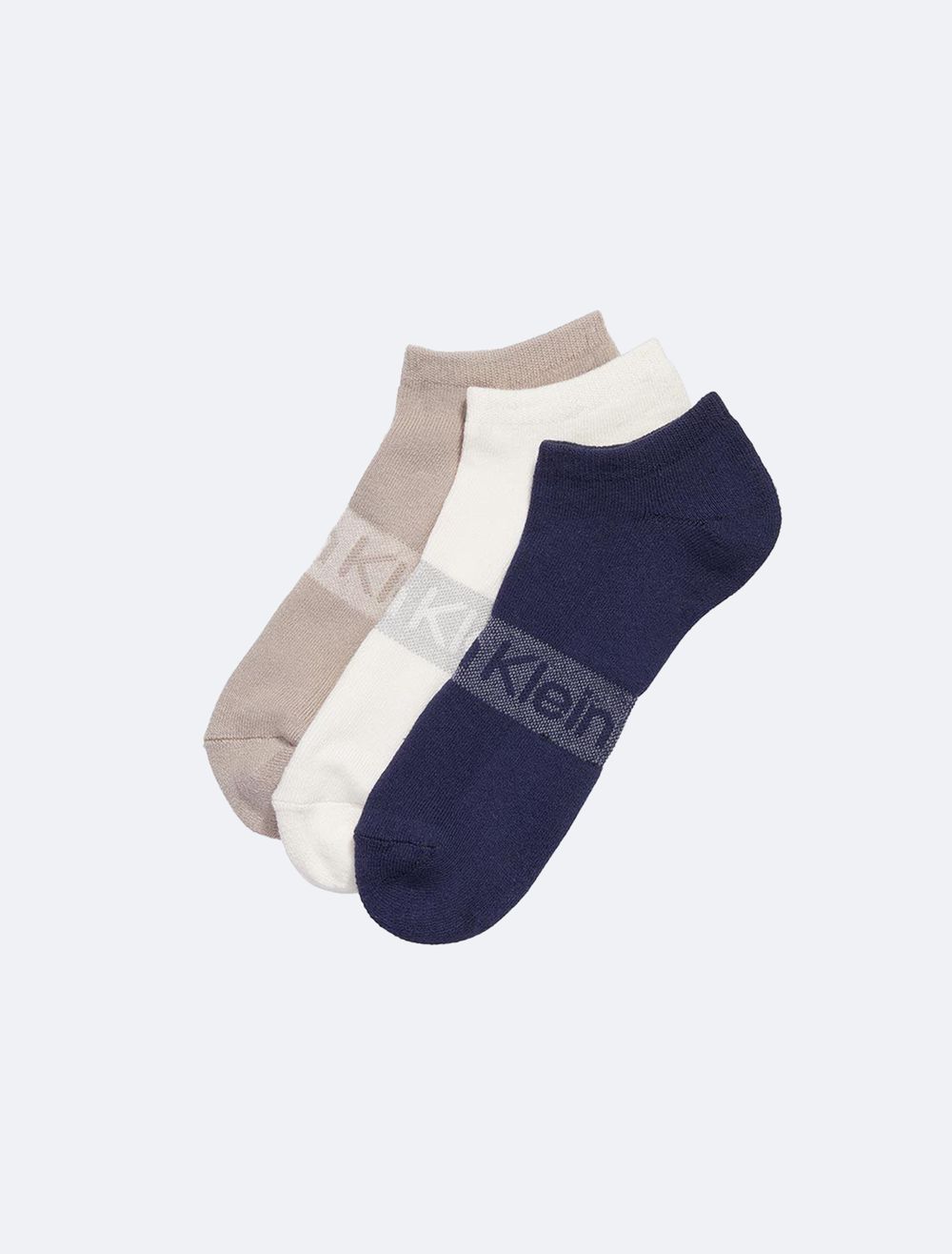 Featuring no-show styling with a cushioned sole, these 3-pack socks are made for everyday comfortable wear. Designed in versatile, neutral tones and finished with a Calvin Klein logo detail at the top.- Elastic opening