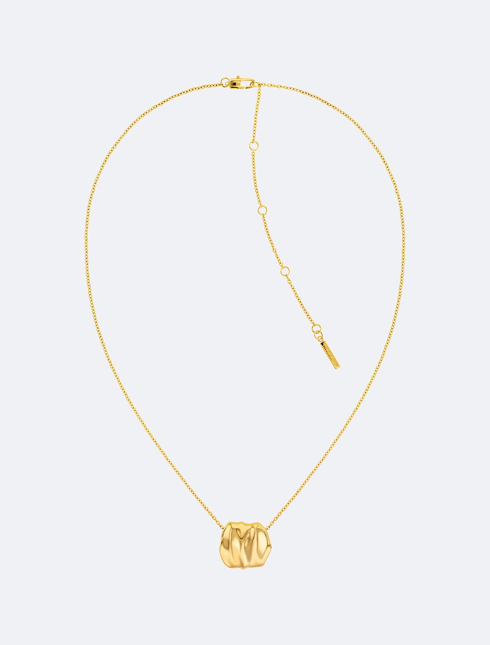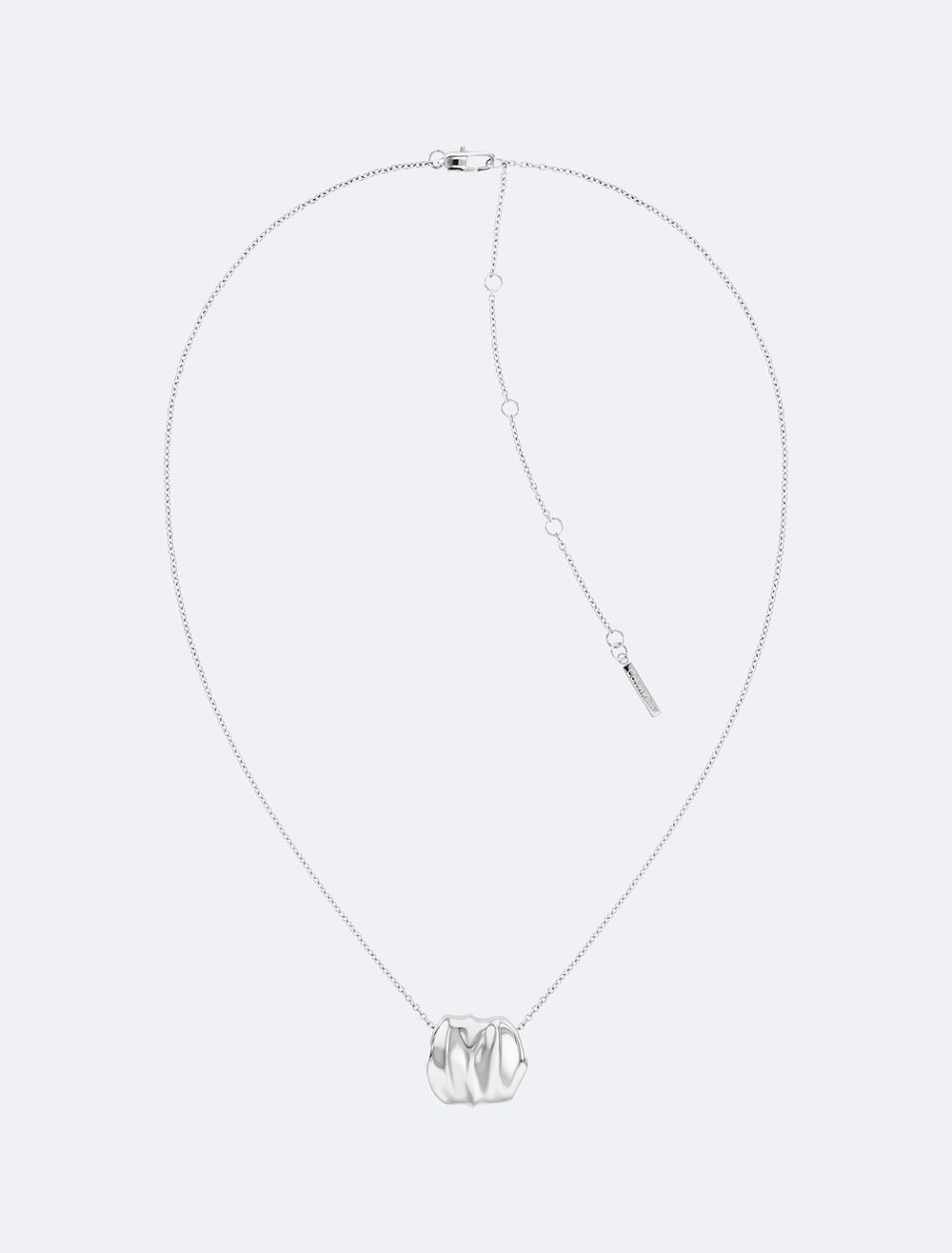 The organic inspired design of this sculpted pendant is evocative of the natural movement of the elements. Available on a classic link chain.- Polished stainless steel or gold plated