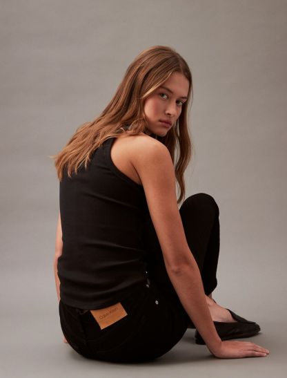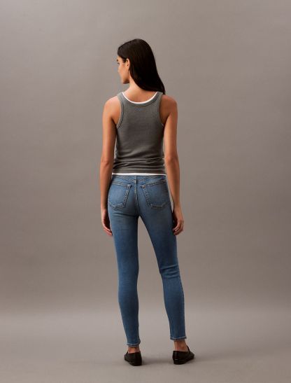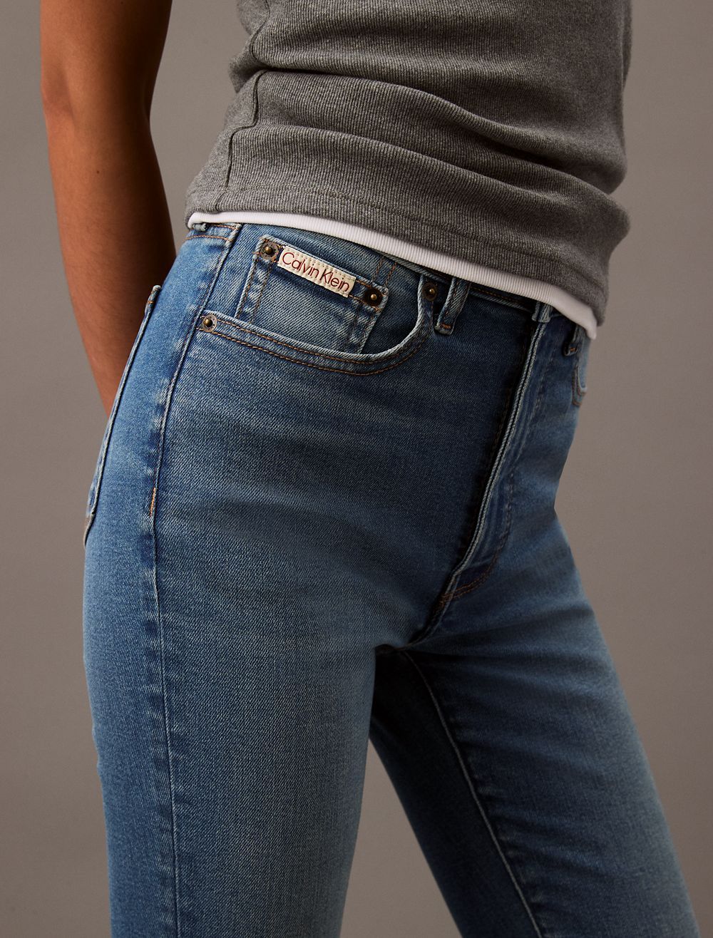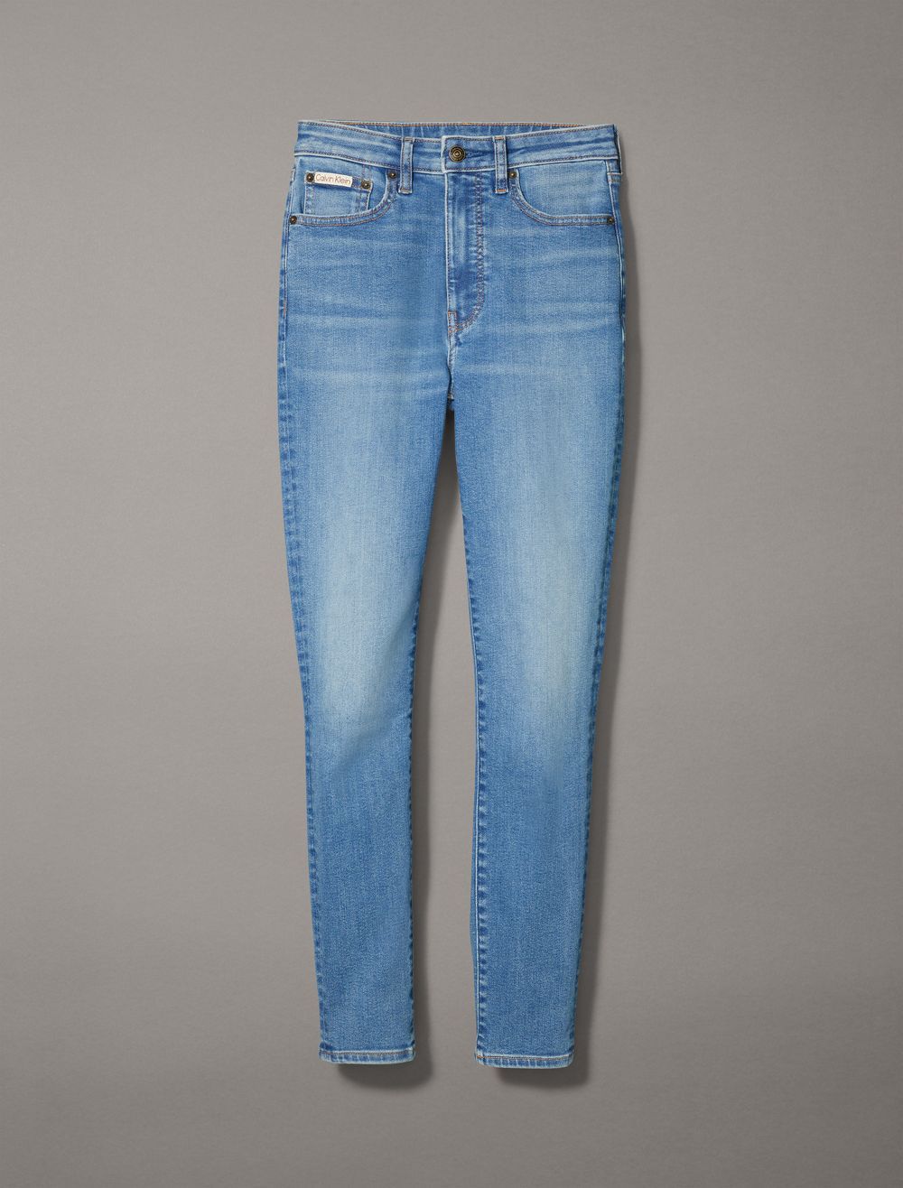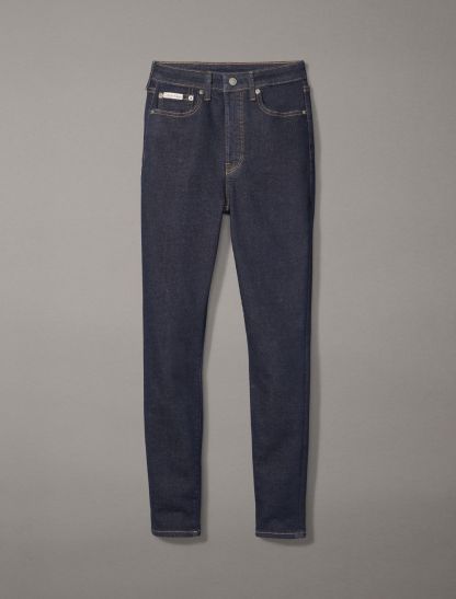 Styled in a skinny fit with a high rise waist, these jeans are made from a cotton stretch blend for easy, comfortable wear. Designed with a zip fly and a top button closure. Features classic 5-pocket styling and finished with a CK logo patch at the back waist.- High rise waist
