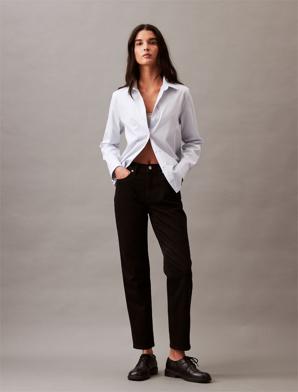 - CK heritage inspired metal shank and zip fly