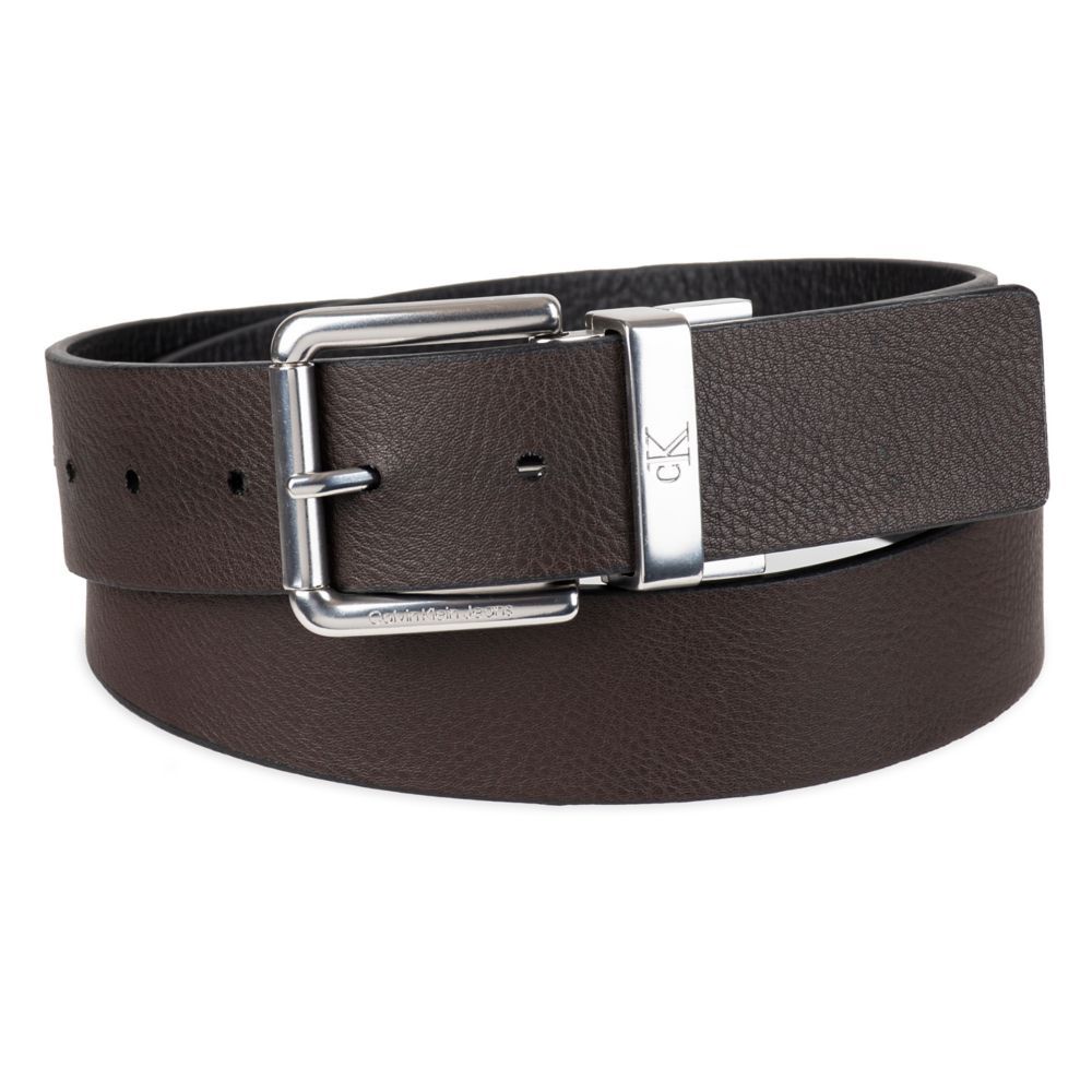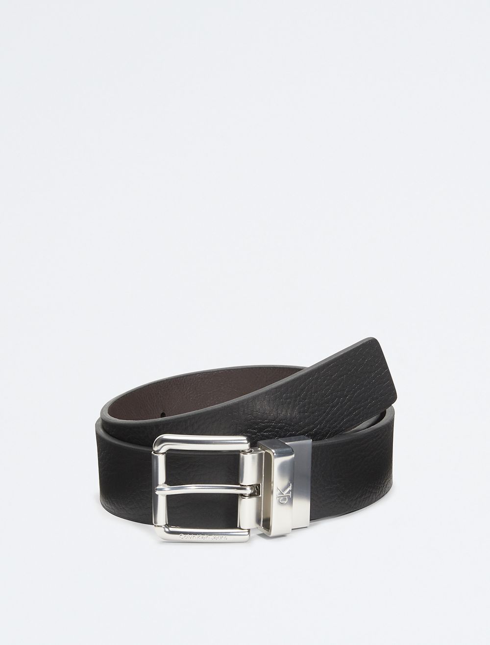 A great addition to your accessory collection - this sleek, casual belt is designed with a reversible strap for versatile wear. Featuring a black matte finish roller buckle, engraved monogram logo on the strap keeper and a pebble-grain strap for added dimension.- Classic single prong buckle