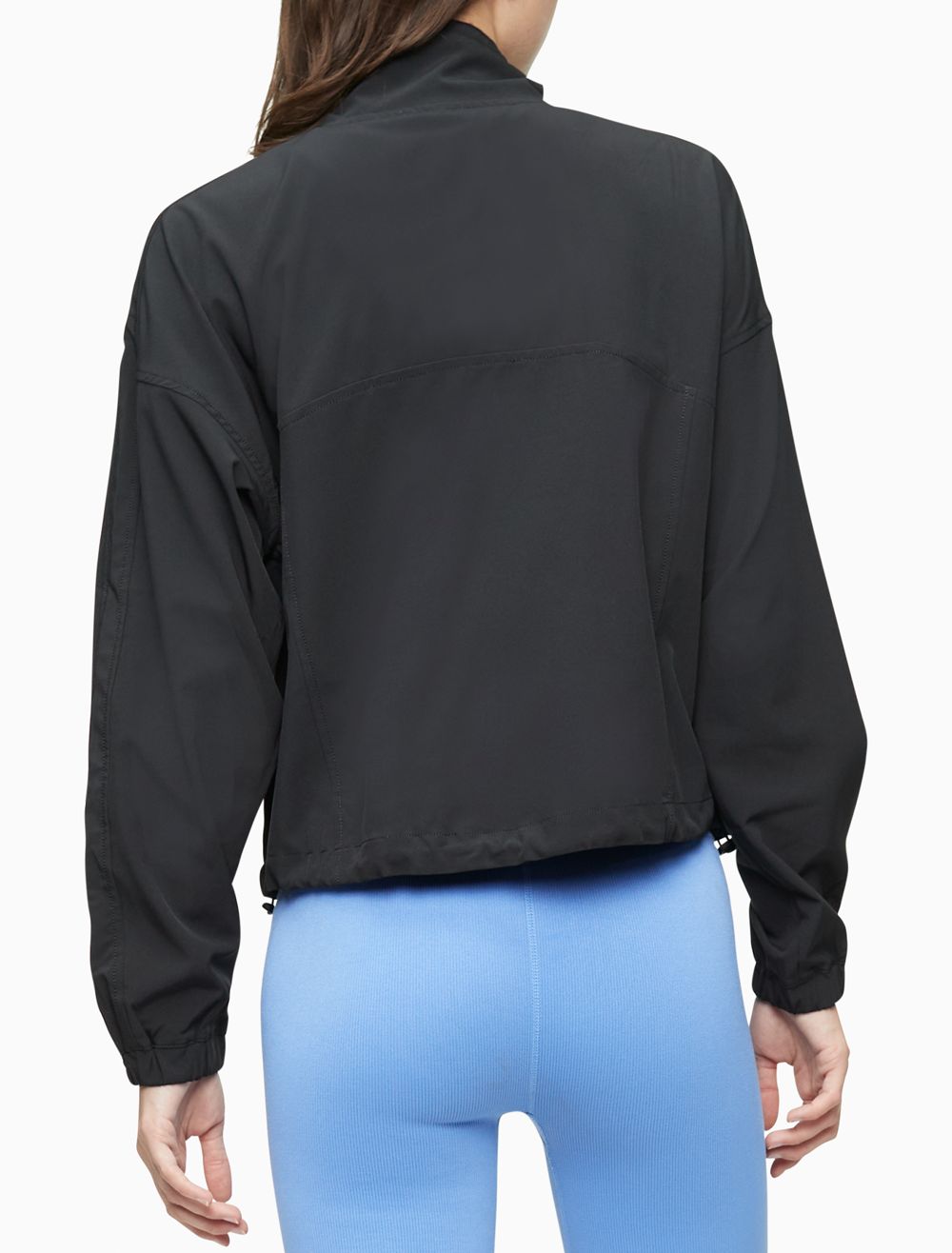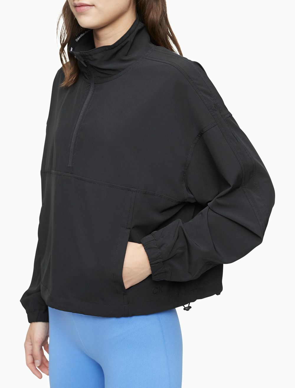 Designed with 4-way stretch for total flexibility, this 1/2 zip pullover is cut in a cropped length and features a funnel collar. With a moisture wicking finish, this jacket features an adjustable drawcord hem.- 4-way stretch woven