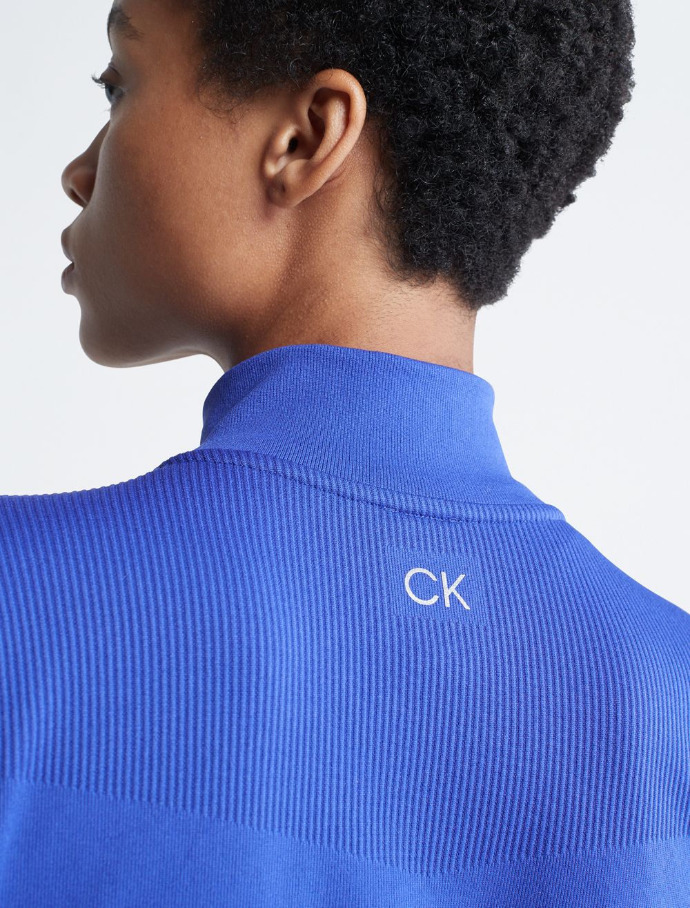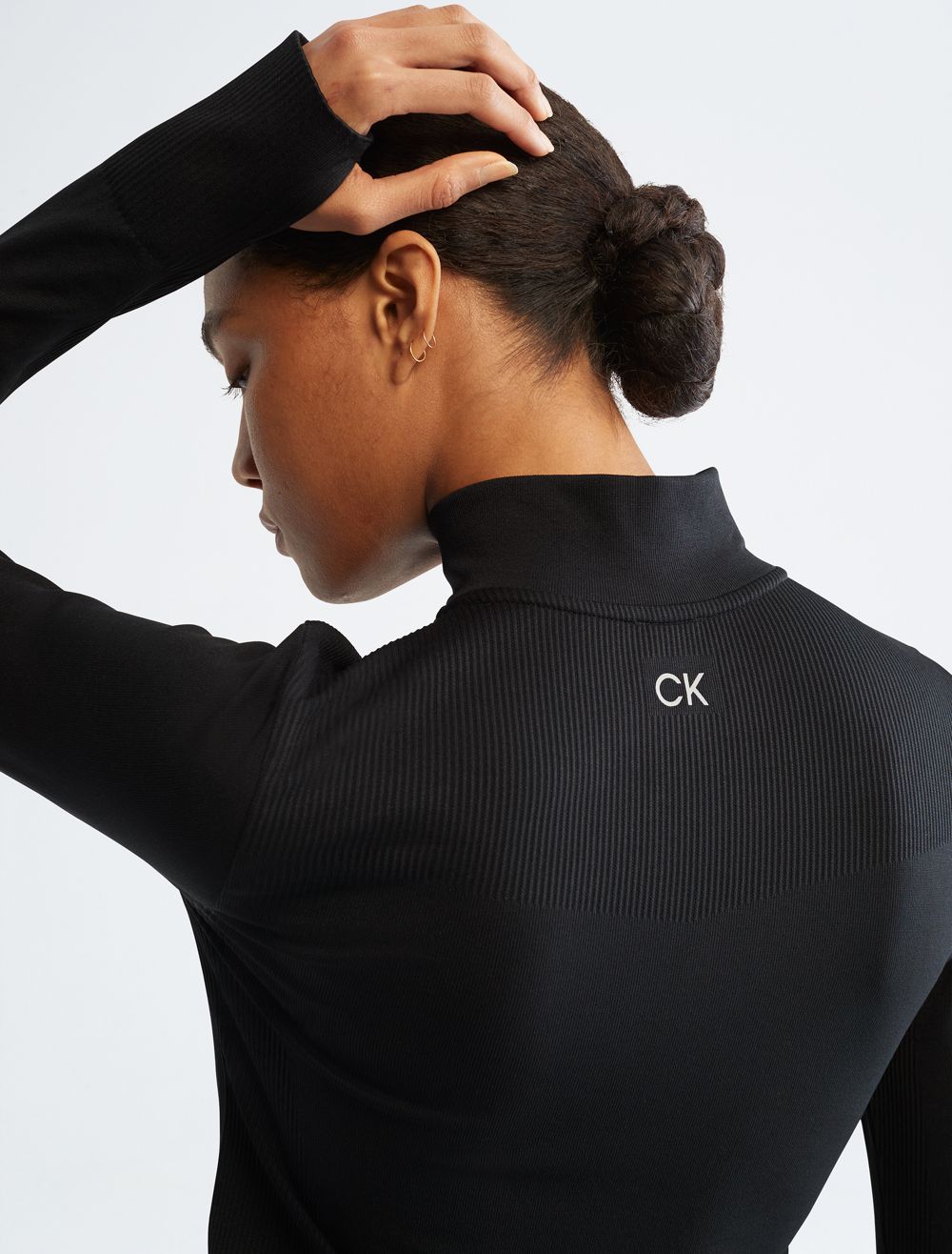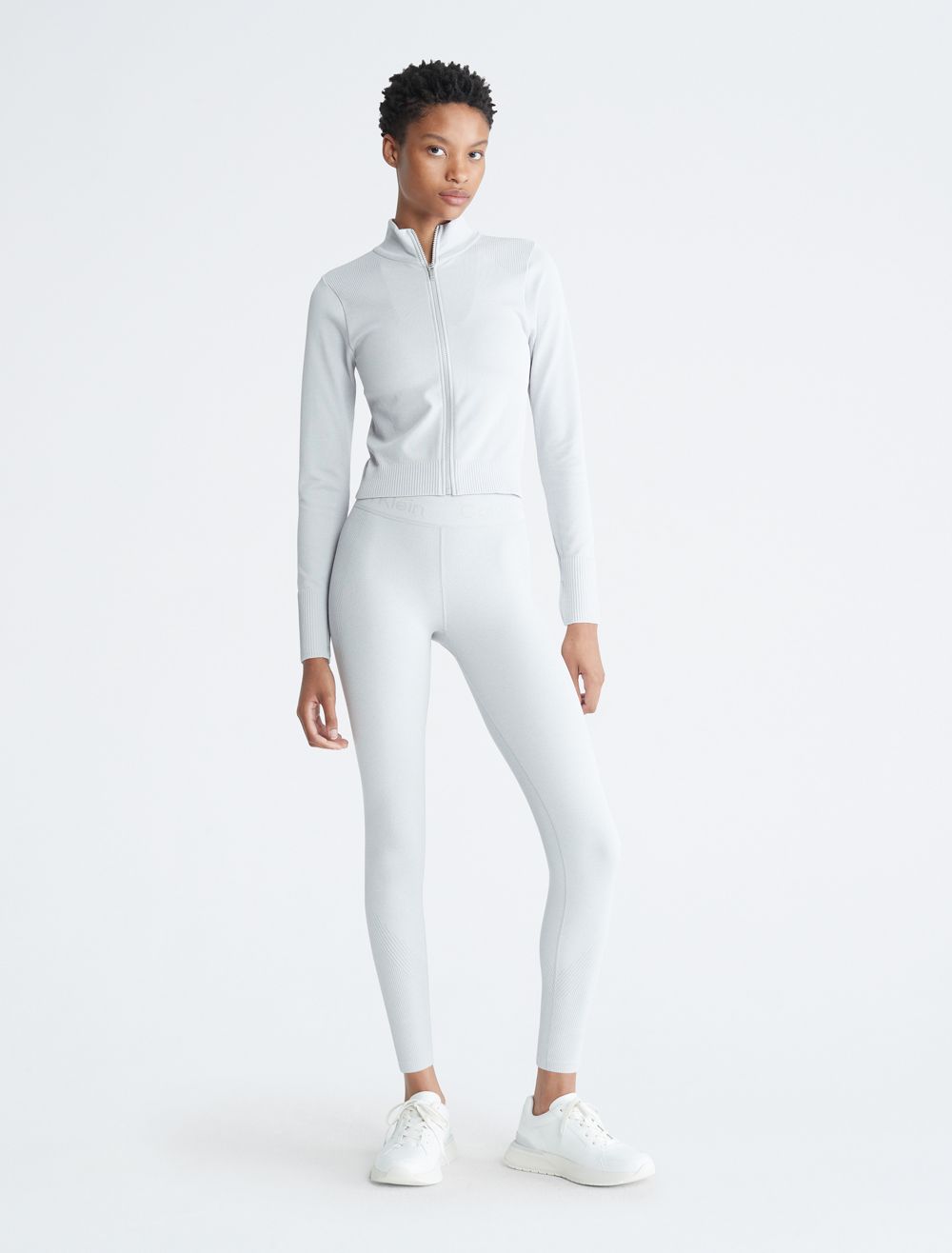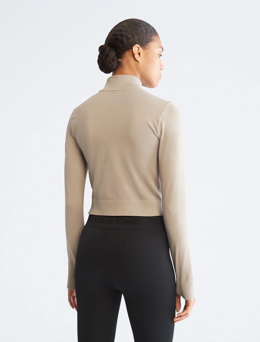 A performance-ready piece, this jacket features a form-fitting silhouette designed with subtle ribbed detailing. Made with long sleeves and a mock neck. Cut in a cropped length and fitted with a zip closure at the front.- Long sleeves