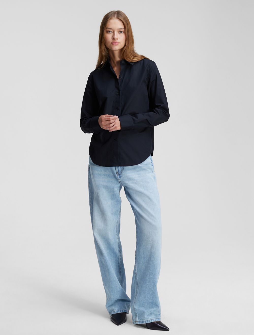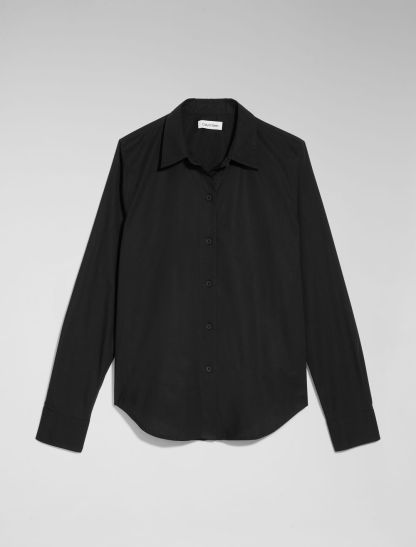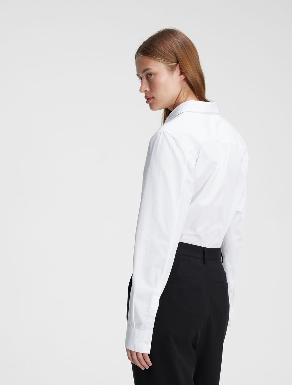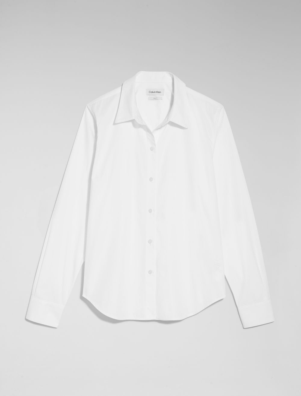 Crafted completely from cotton, this button-down shirt captures a crisp, elevated look. Made with long sleeves and a point collar. Finished with CK monogram logo embroidery at one sleeve cuff.- Long sleeves + point collar