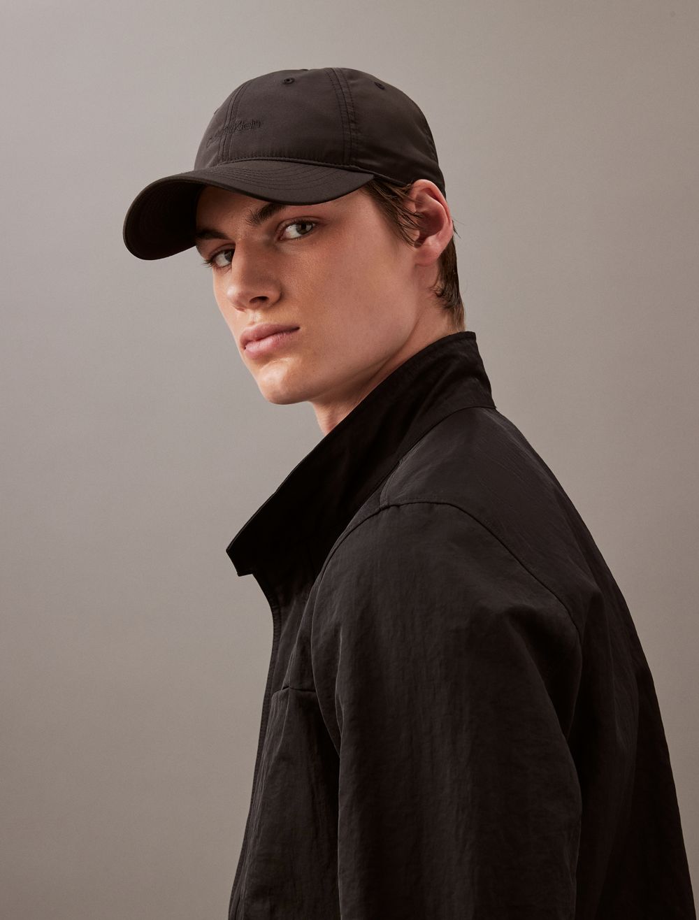 Crafted from smooth satin, this baseball cap has sleek, refined styling. Made with an adjustable back for a personalized fit. Created with a curved brim and finished with topstitching accents.- Smooth satin for a refined look