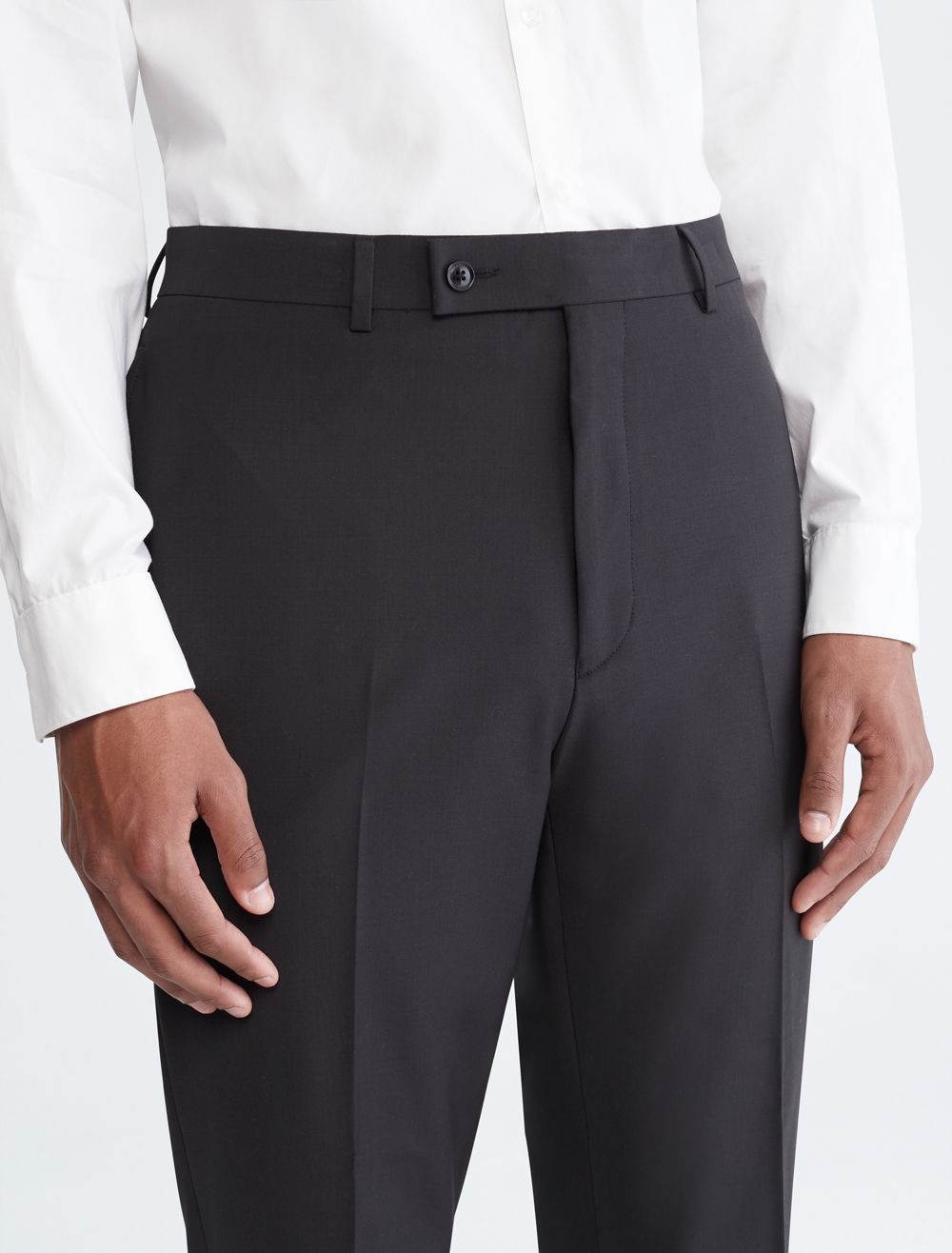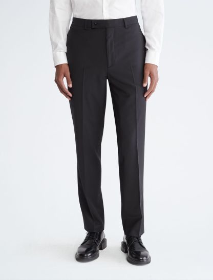 Cut in a fitted silhouette, these pants have sharp, polished look that is suited for both professional and formal wear. Made completely from a wool stretch blend for added warmth and a refined touch. Detailed with pressed pleats along the legs and front angled pockets on both sides.- Four-season wool blended with stretch for added flexibility and comfort