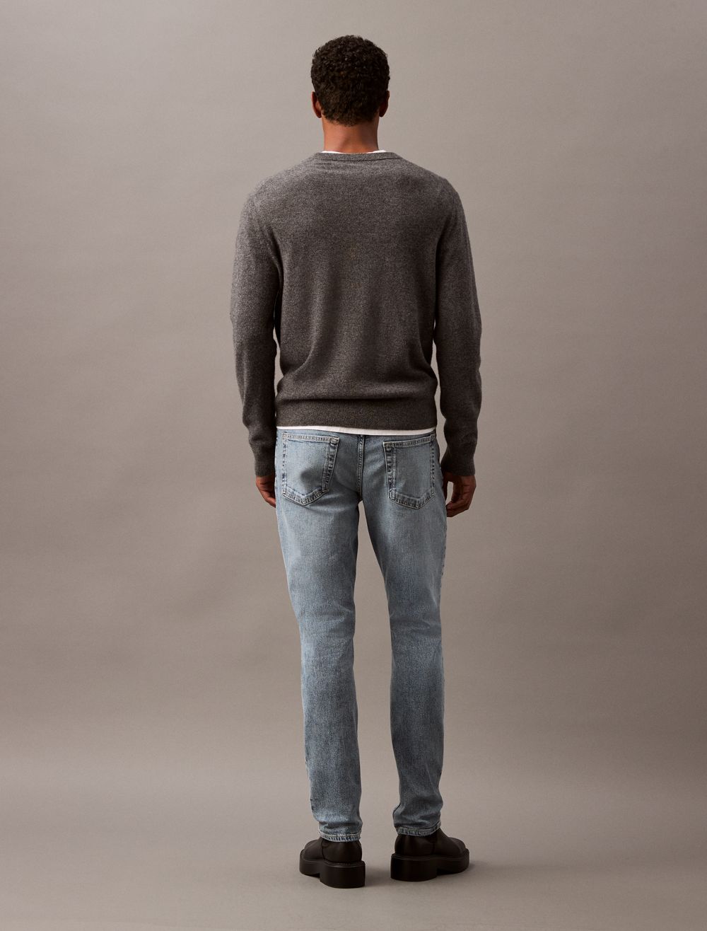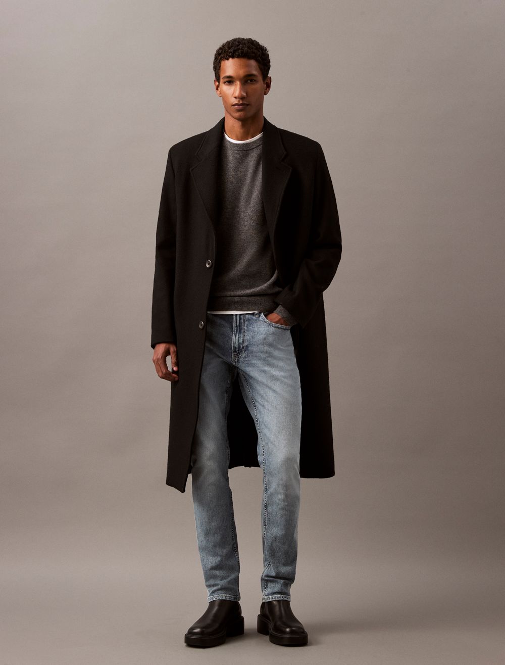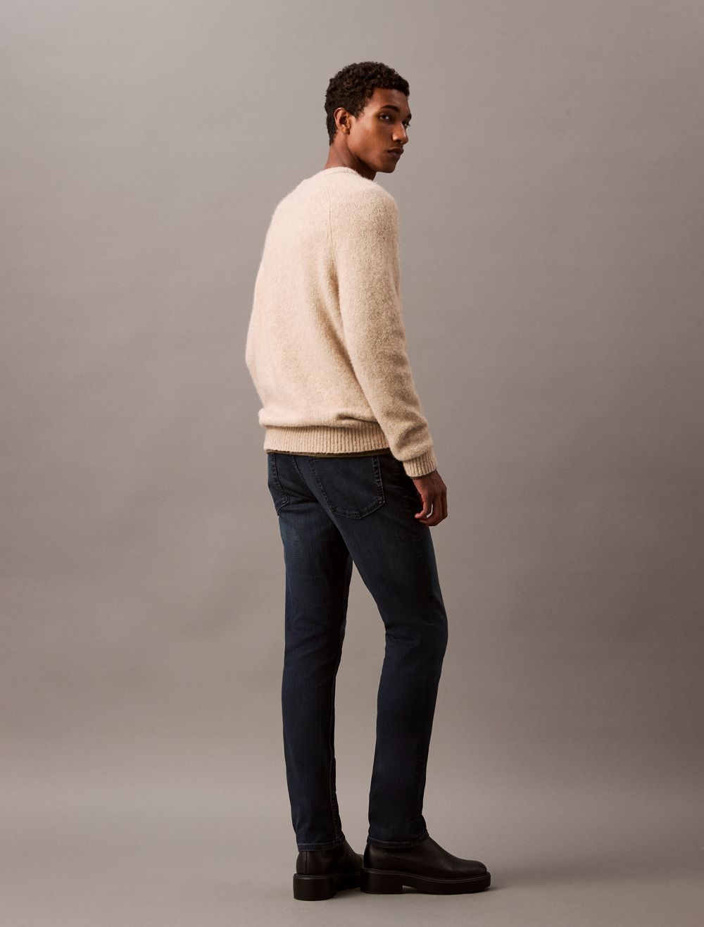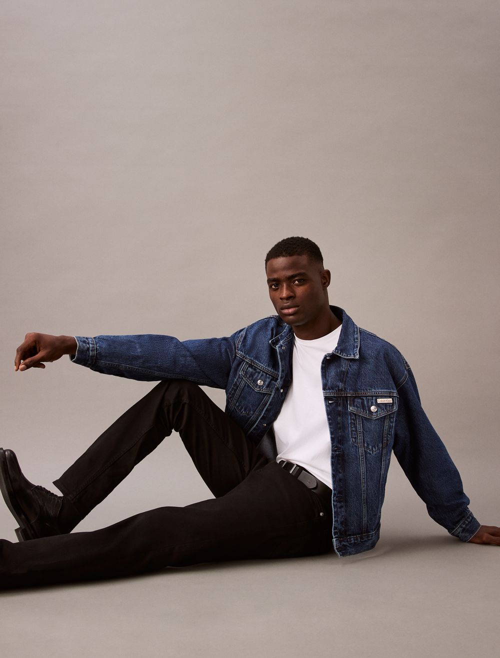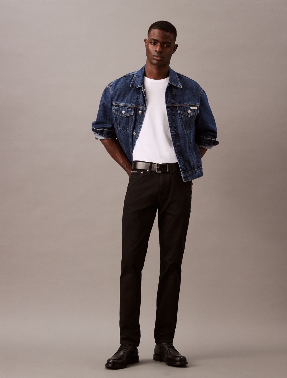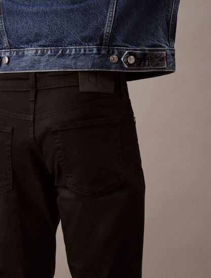 An iconic essential, our reimagined jeans are made with flexible stretch denim for enhanced movement and all-day comfort. Updated with signature metal logo hardware, a Calvin Klein hallmark. Cut in a slim fit with considered detailing and reinforced seams.- Slim fit: sits below waist, slim leg