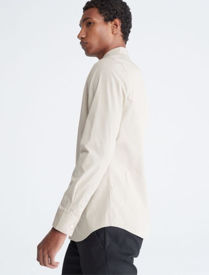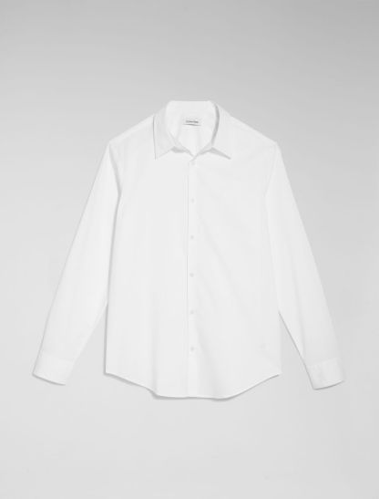 Tailored and refined, this long sleeve woven shirt is made with a solid design in an extra soft cotton stretch blend. Designed with an embroidered monogram logo at the chest for an iconic look, button-front closures and barrel cuffs for an elevated and versatile Calvin Klein button-down essential.- Provides ultimate comfort by stretching as you move