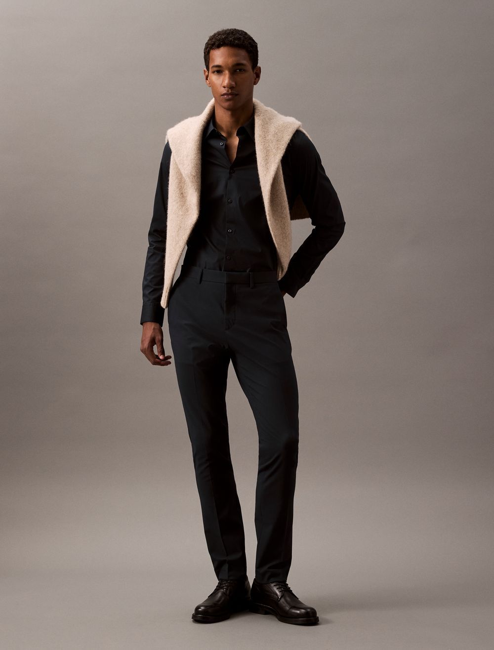 - Slim fit: narrow through arms, fitted around body