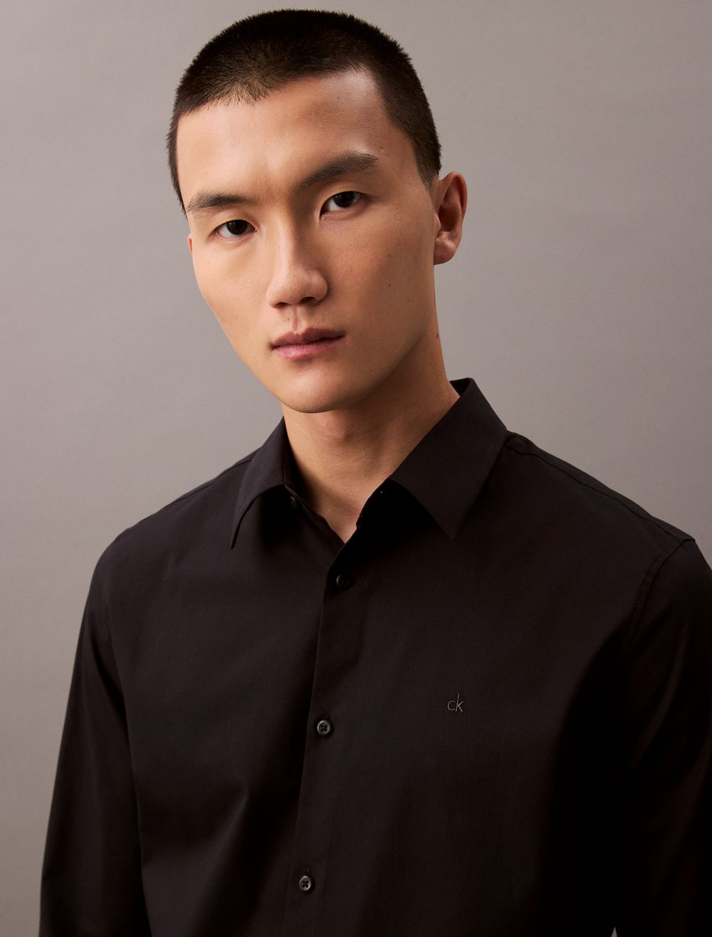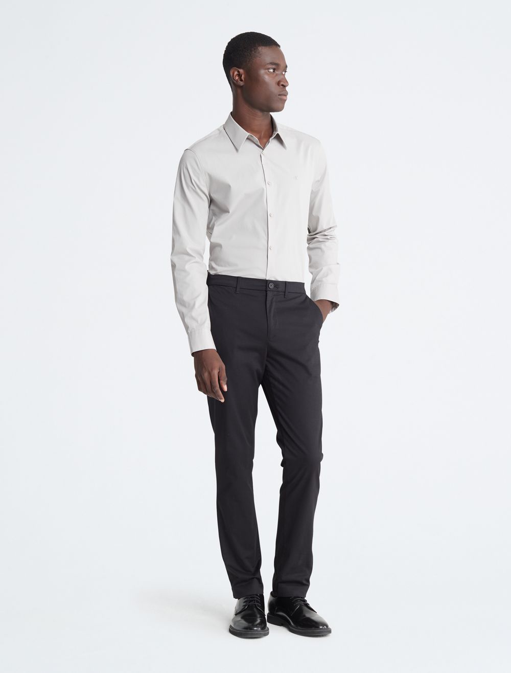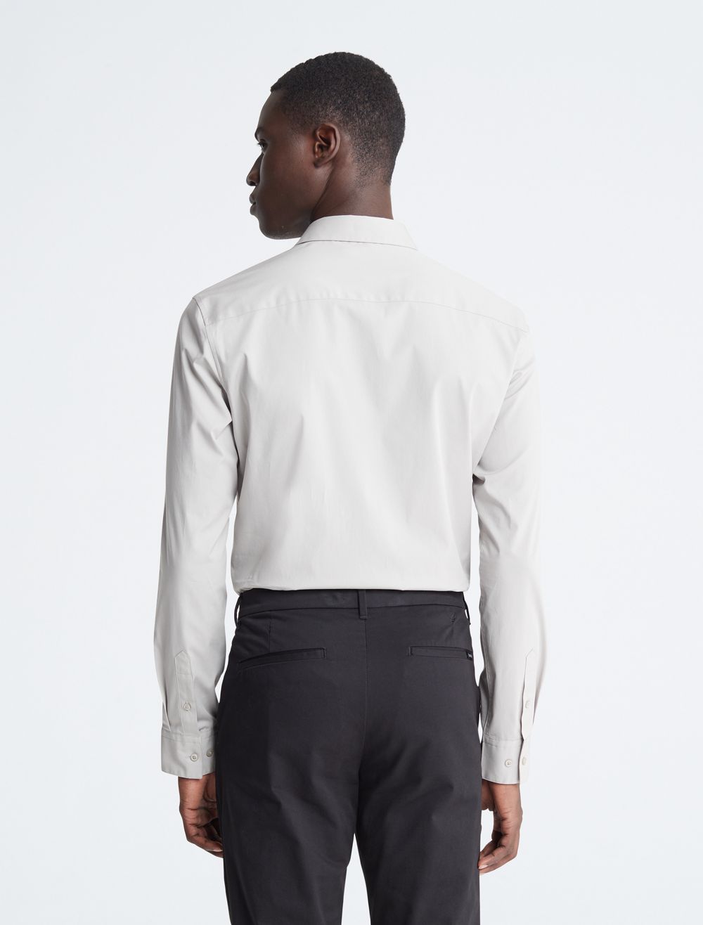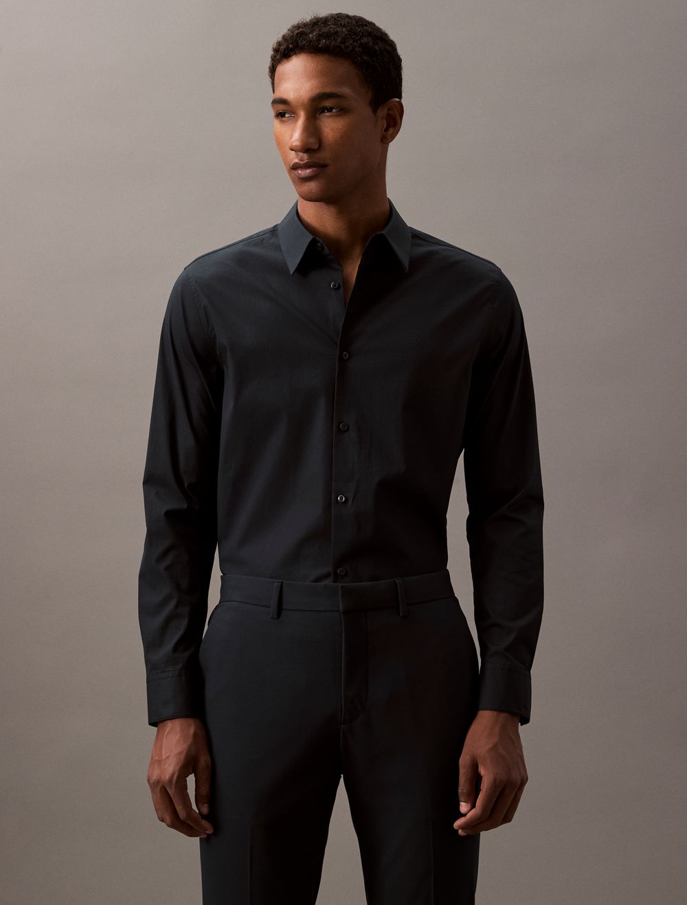 Tailored and refined, this long sleeve woven shirt is made with a solid design in an extra soft cotton stretch blend. Designed with an embroidered monogram logo at the chest for an iconic look, button-front closures and barrel cuffs for an elevated and versatile Calvin Klein button-down essential.- Provides ultimate comfort by stretching as you move