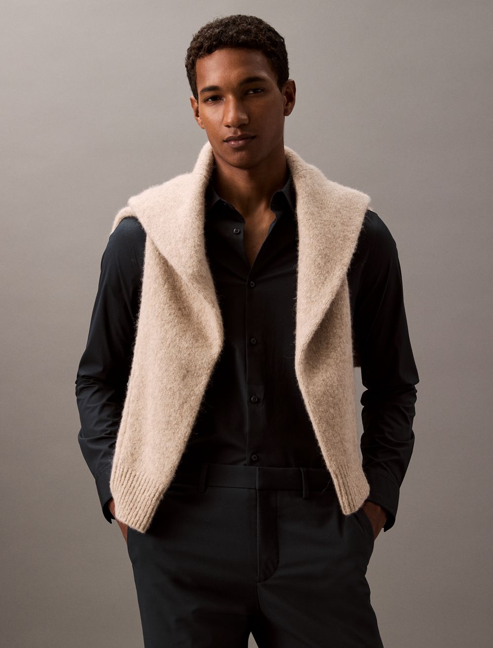 - Slim fit: narrow through arms, fitted around body