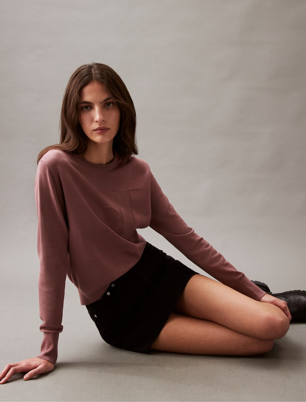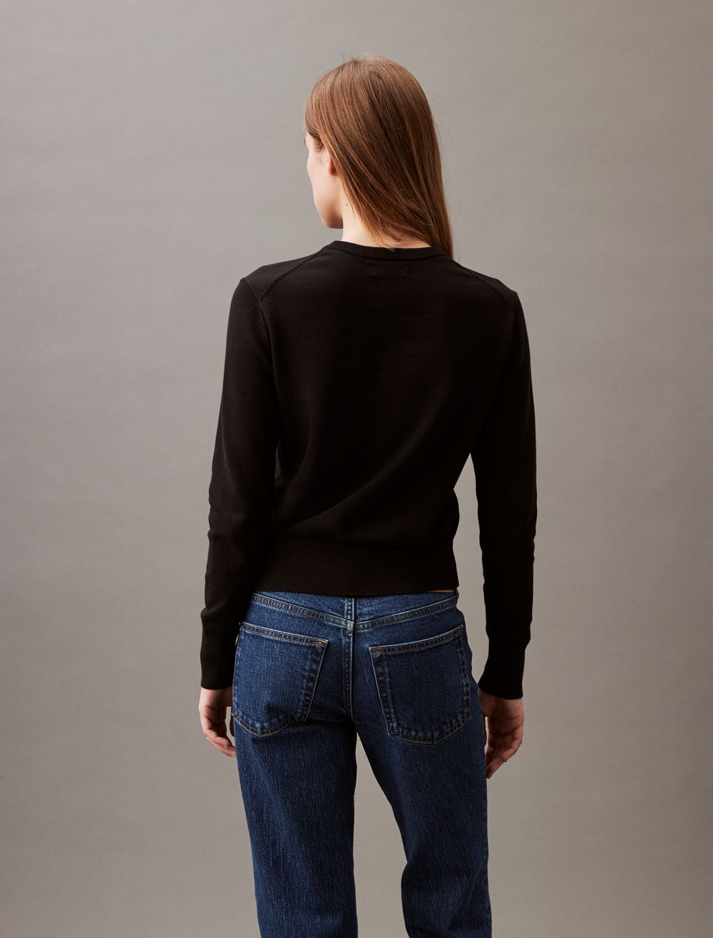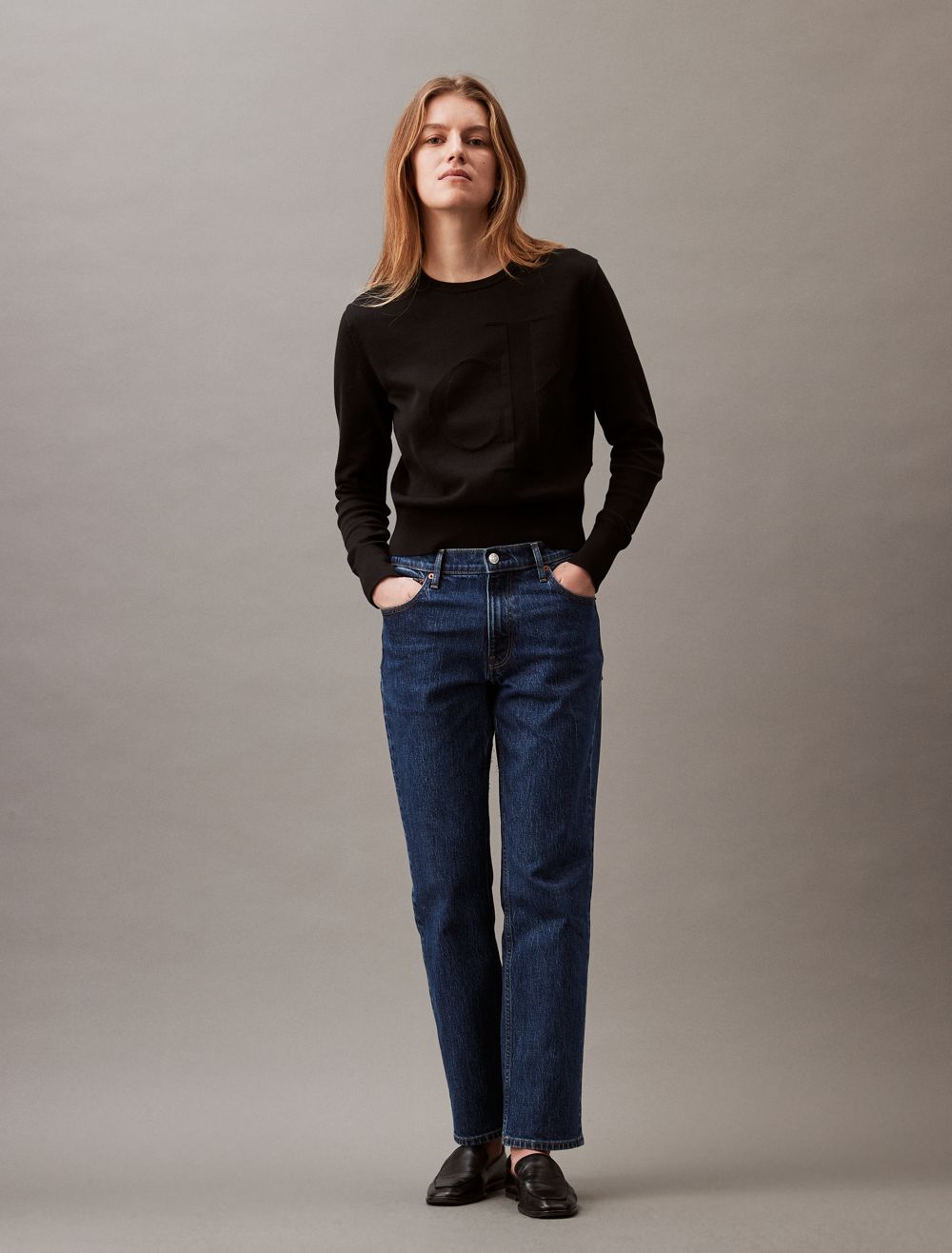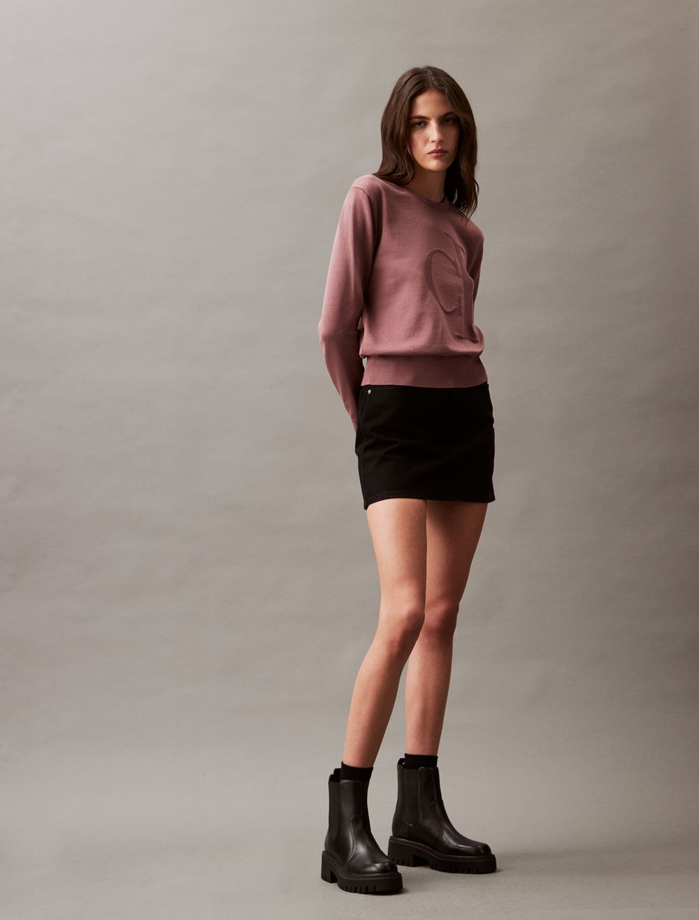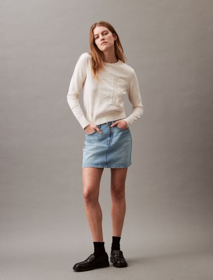 Crafted from compact cotton for a smooth hand with an extra sleek feel, this sweater features a textured CK monogram logo design at the front. Made with long sleeves and a crewneck. Finished with ribbed styling at the cuffs and hem.- Smooth compact cotton for effortless, extra sleek comfort