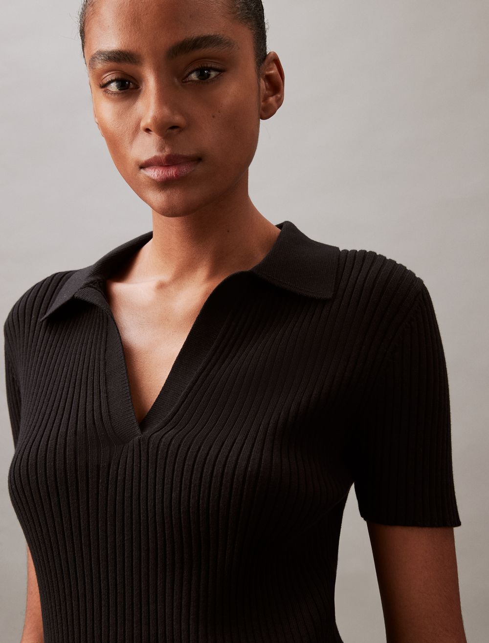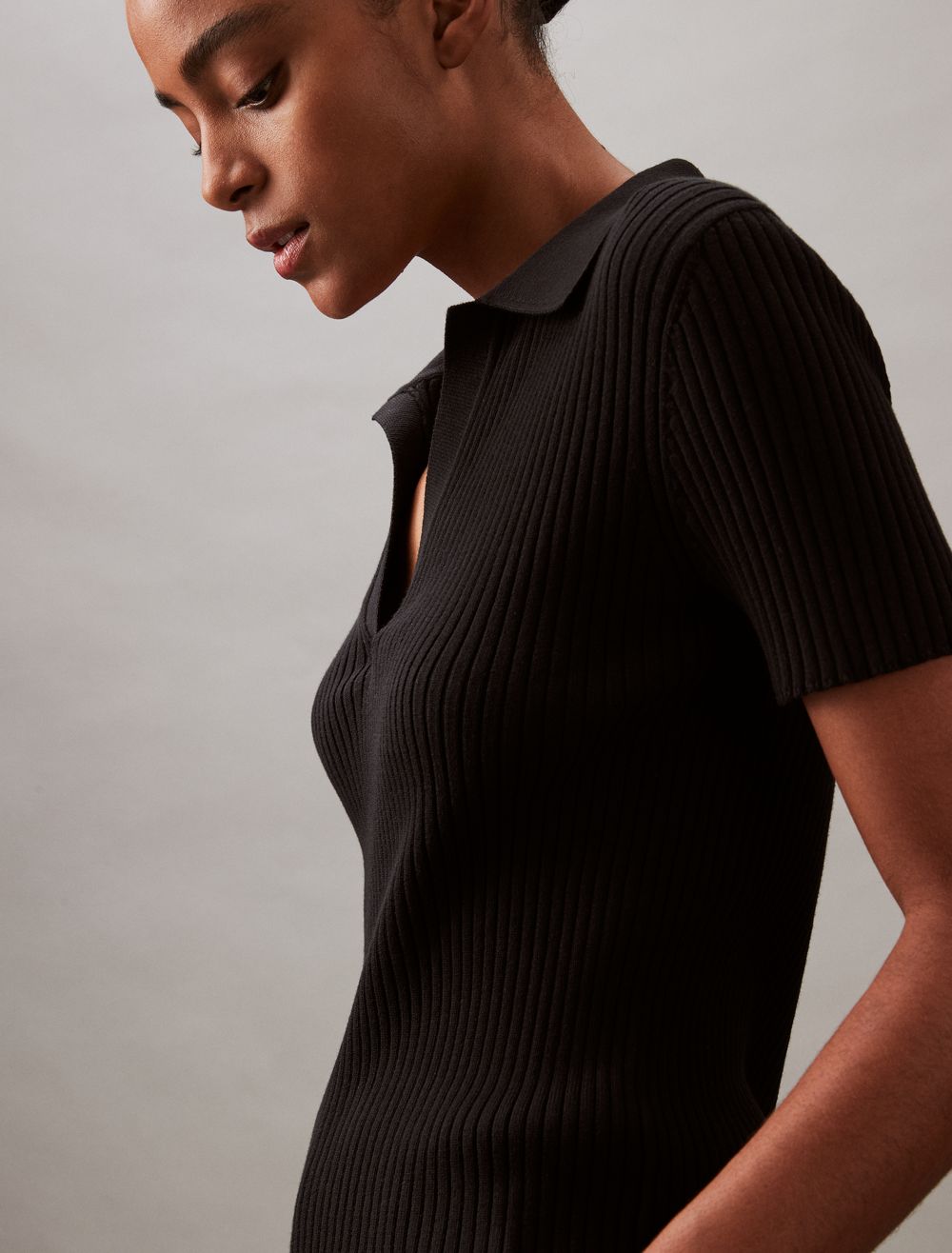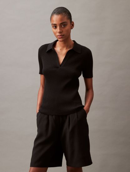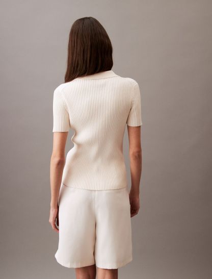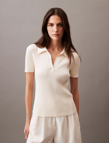 Smooth Cotton Rib Sweater Polo Shirt