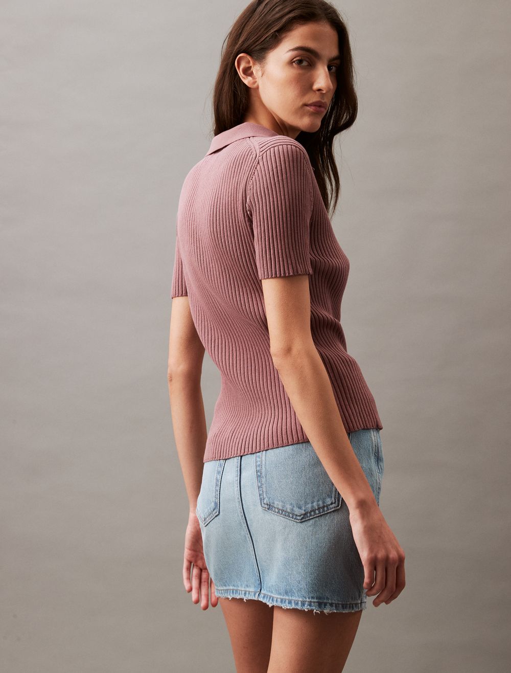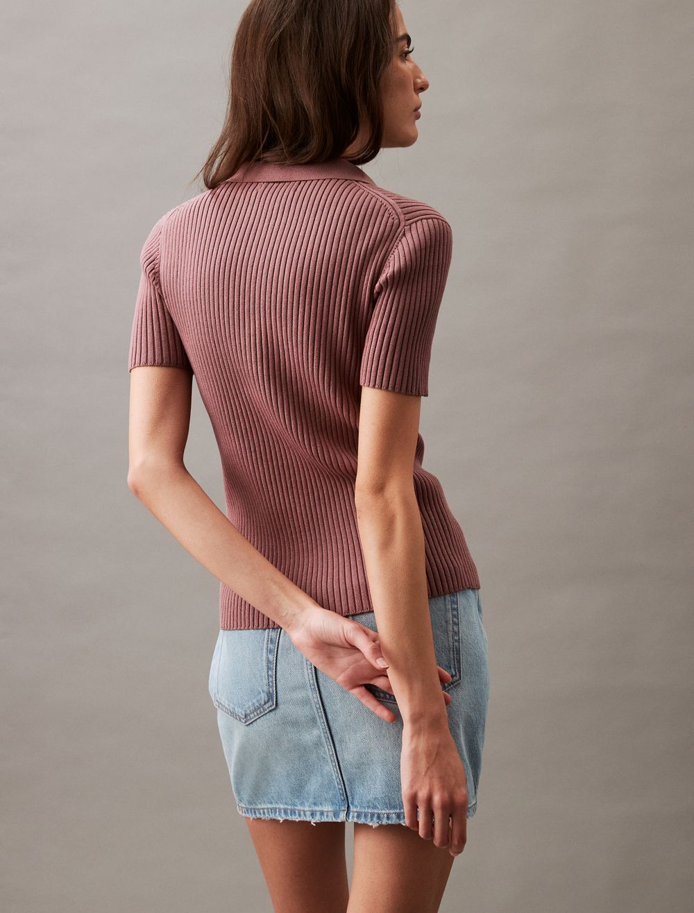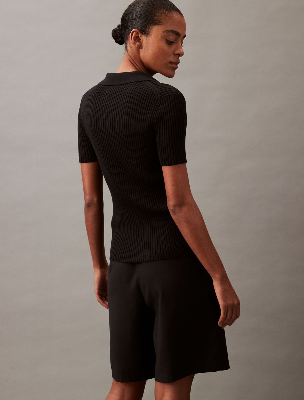 Smooth Cotton Rib Sweater Polo Shirt