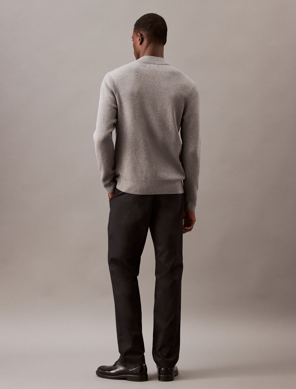 - Round collar, long sleeves and side pockets
